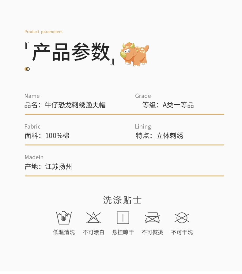 • 데님 공룡 어부 모자