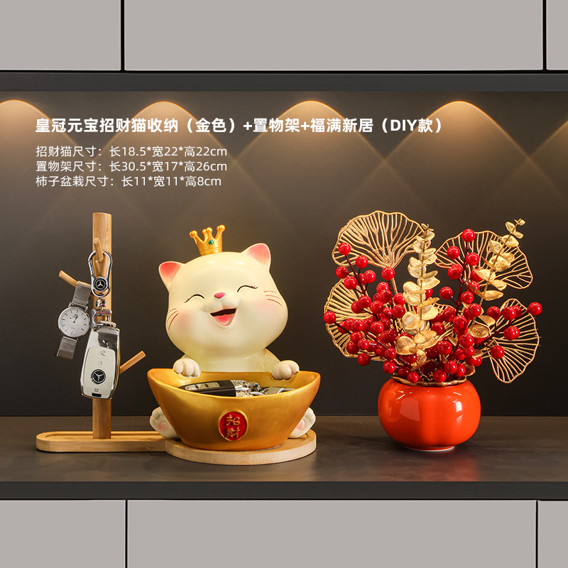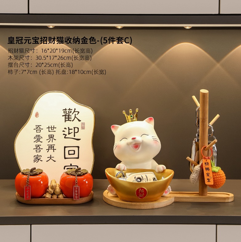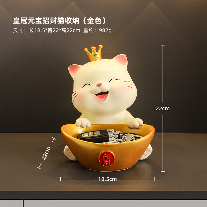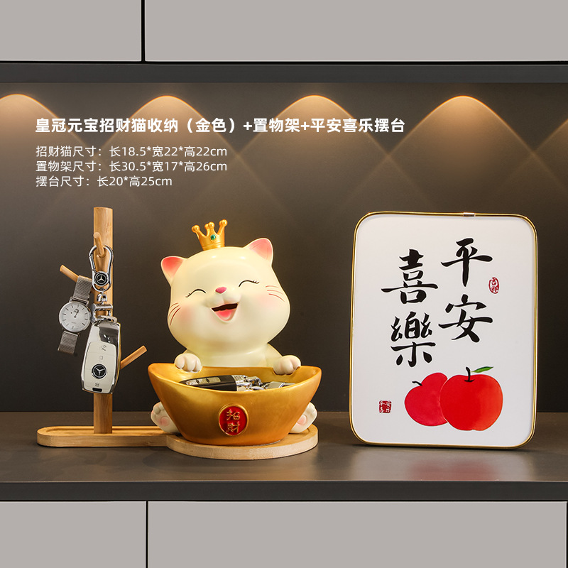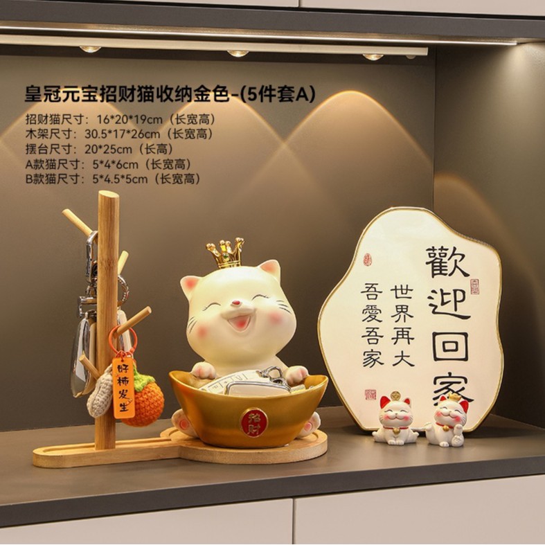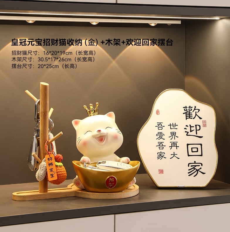• Crown Yuanbao 행운의 고양이 보관 골드 + 나무 프레임 + 환영 테이블