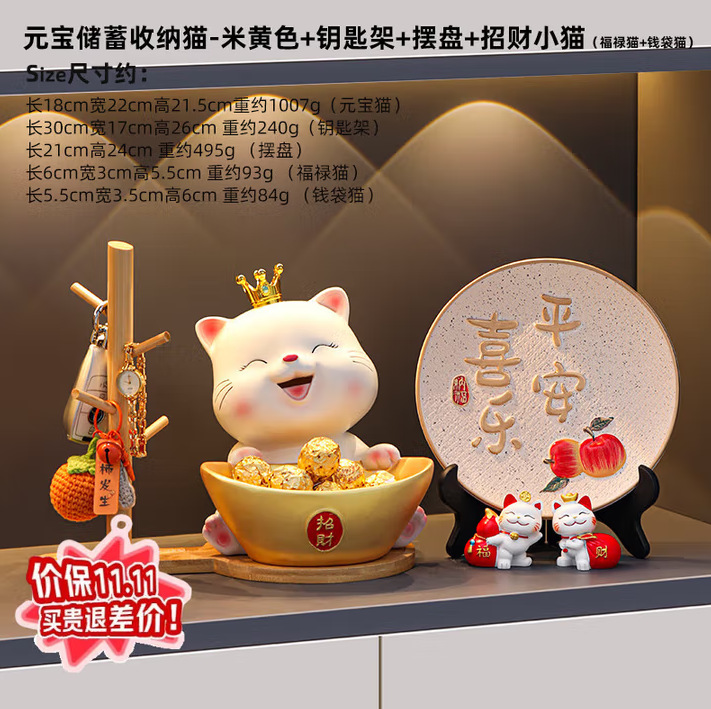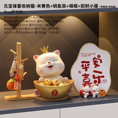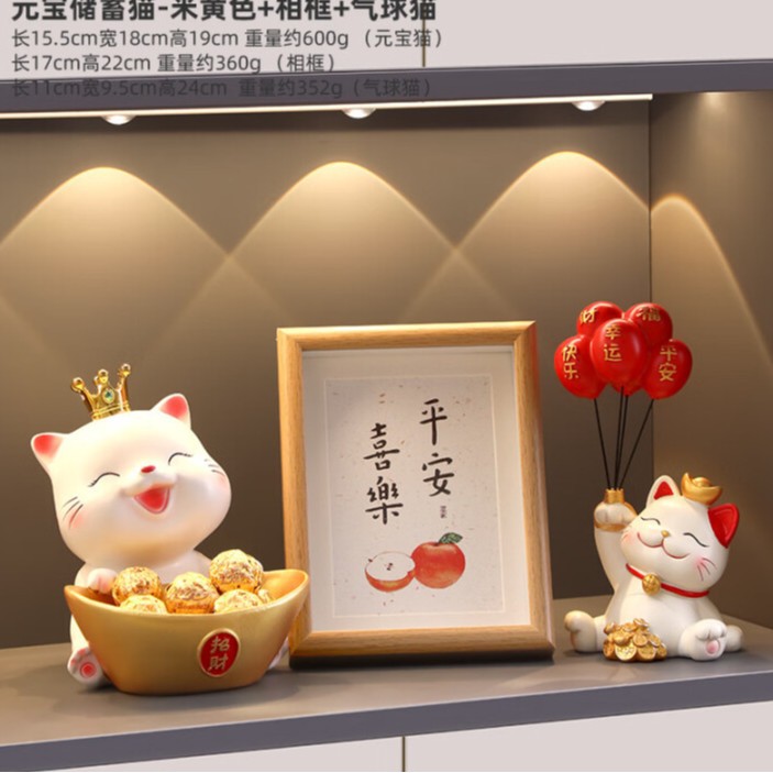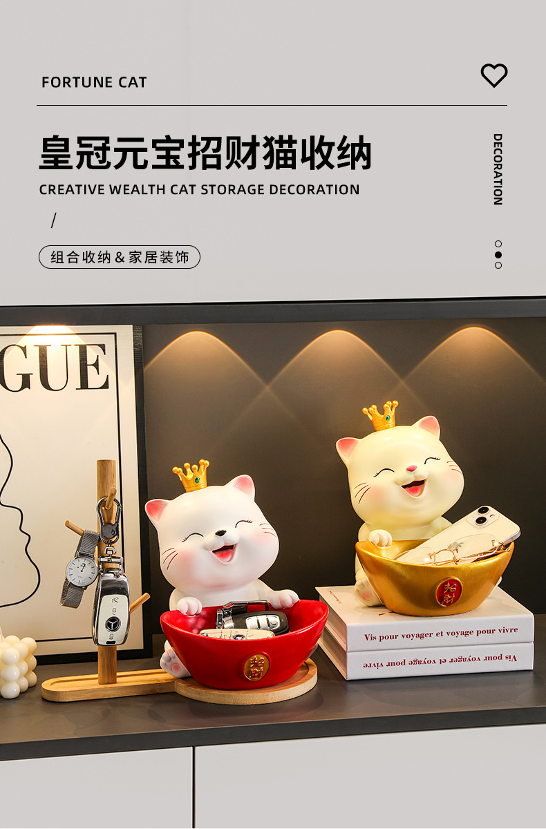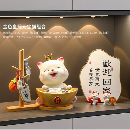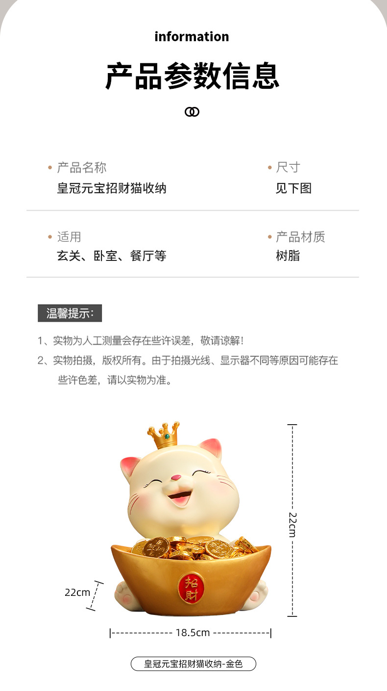 • Crown Yuanbao 행운의 고양이 보관 골드 + 나무 프레임 + 환영 테이블
