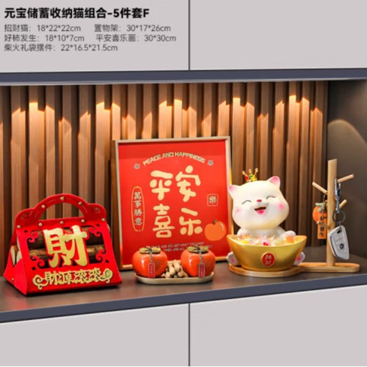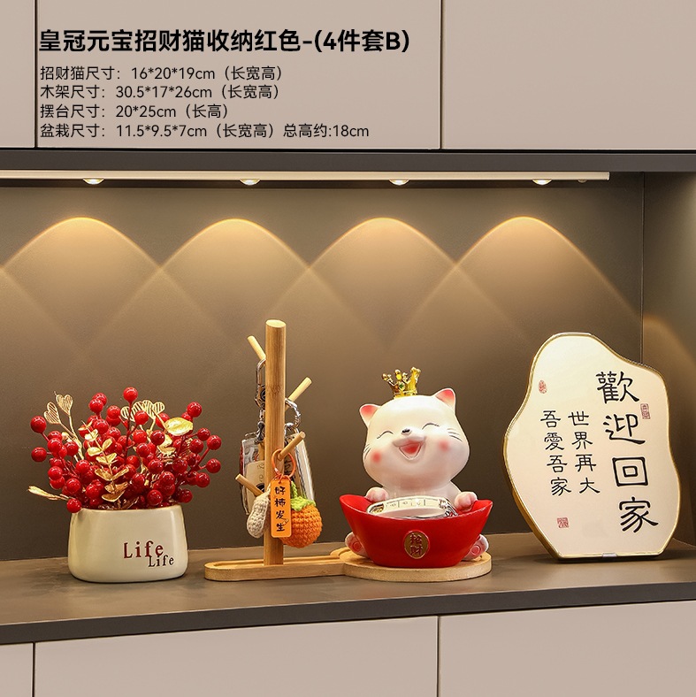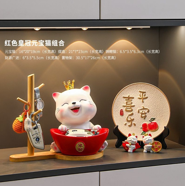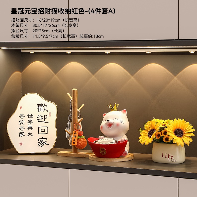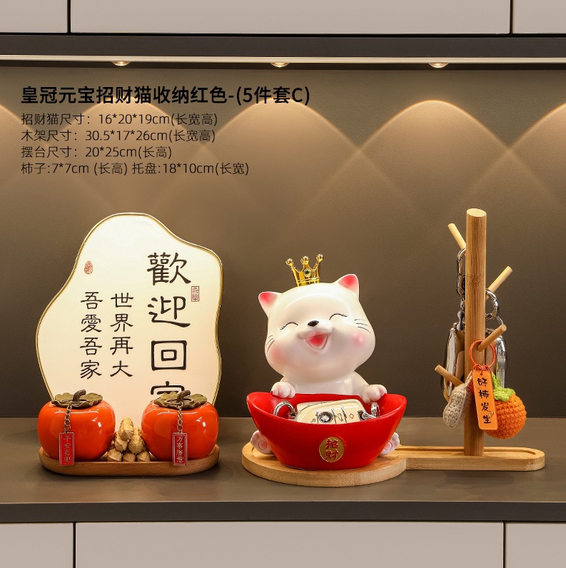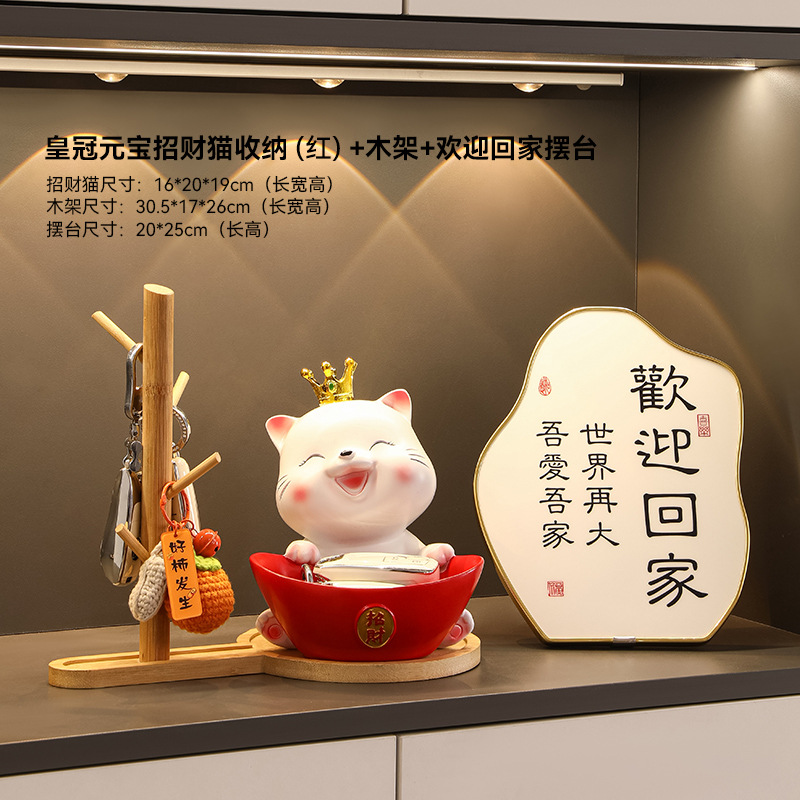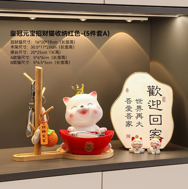 • Crown Yuanbao 행운의 고양이 보관 빨간색 + 나무 프레임 + 환영 테이블 1