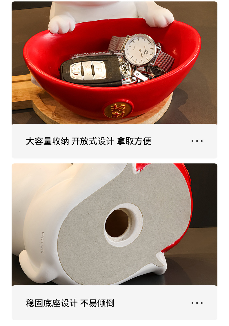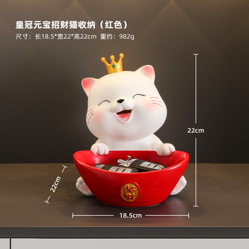 • Crown Yuanbao 행운의 고양이 보관 빨간색 + 나무 프레임 + 환영 테이블