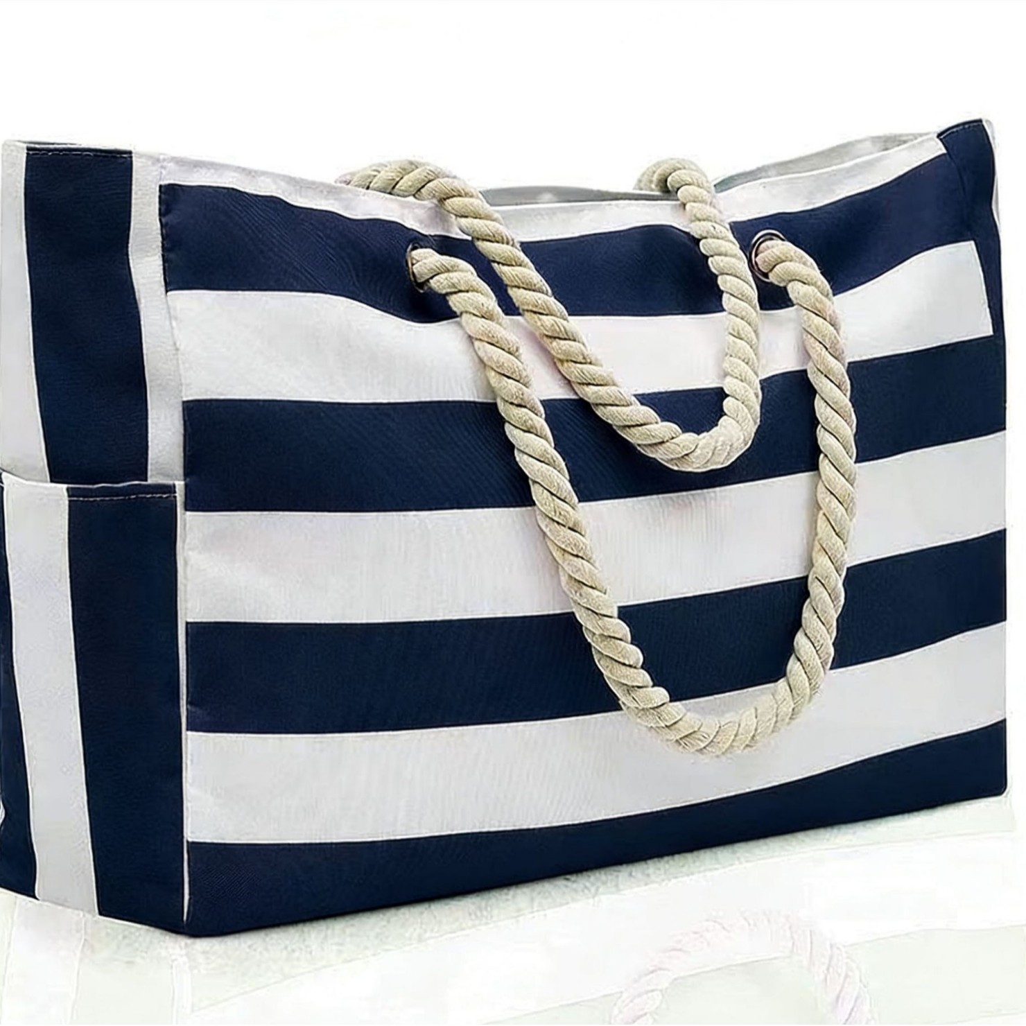 스트라이프 비치 백 보헤미안 대형 저장 가방 캔버스 여행 가방 대용량 쇼핑백 친환경 핸드백