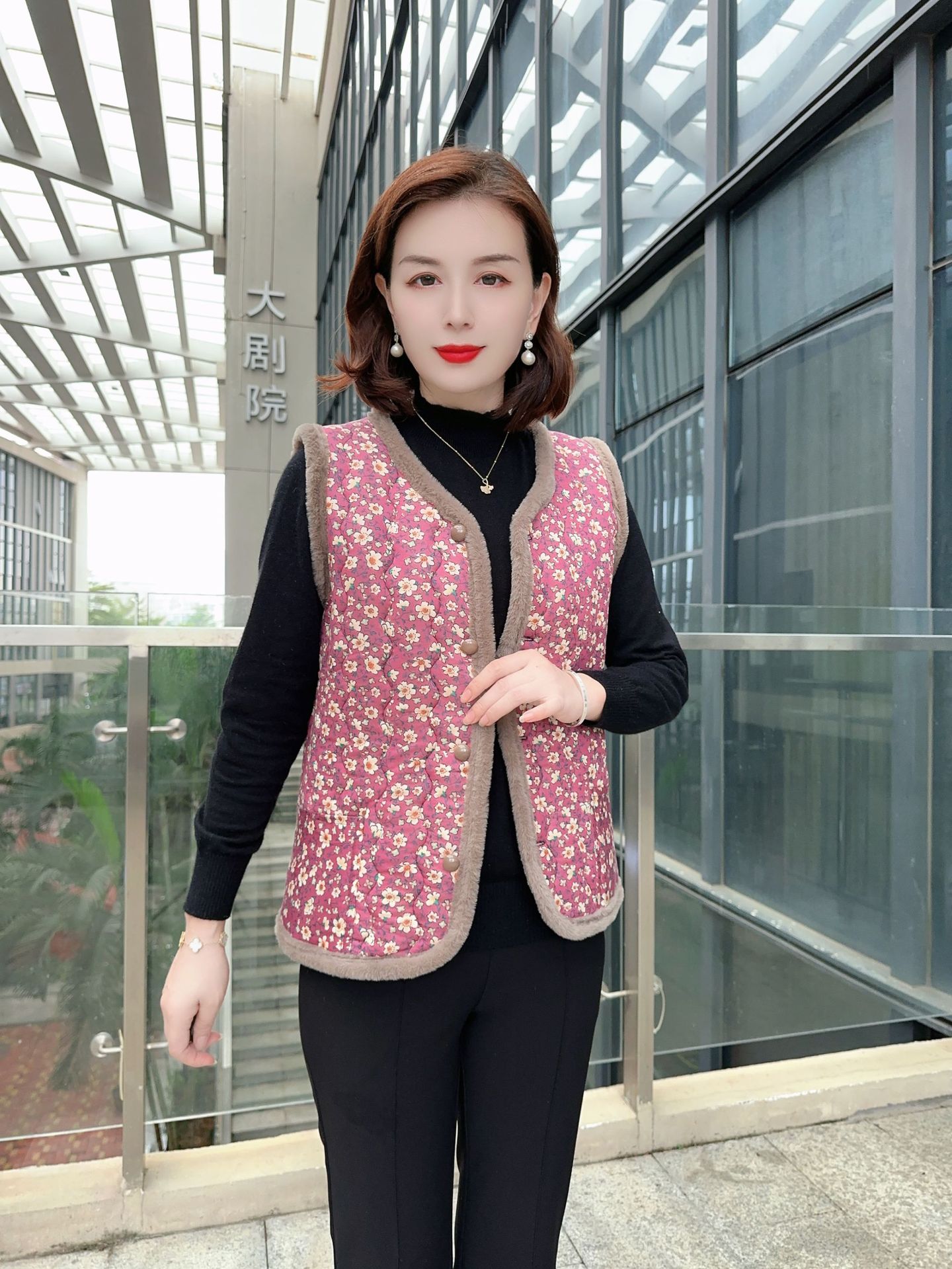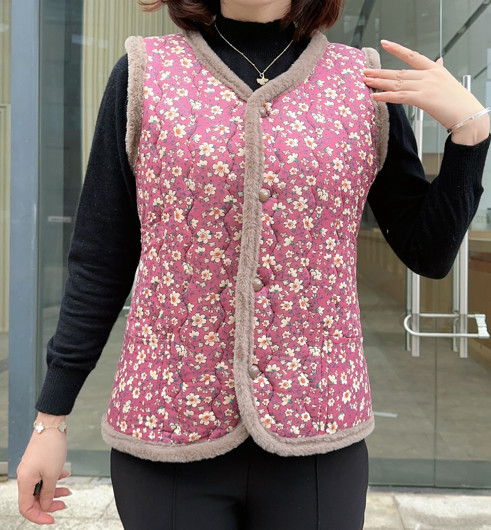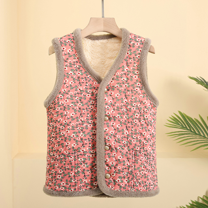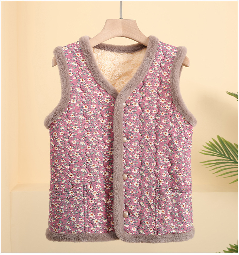 엄마를위한 꽃면 패딩 코트 가을과 겨울 짧은 조끼 플러스 사이즈 할머니 기모 따뜻한 꽃면 패딩 코트 조끼 큰 꽃 여성스토어 가기