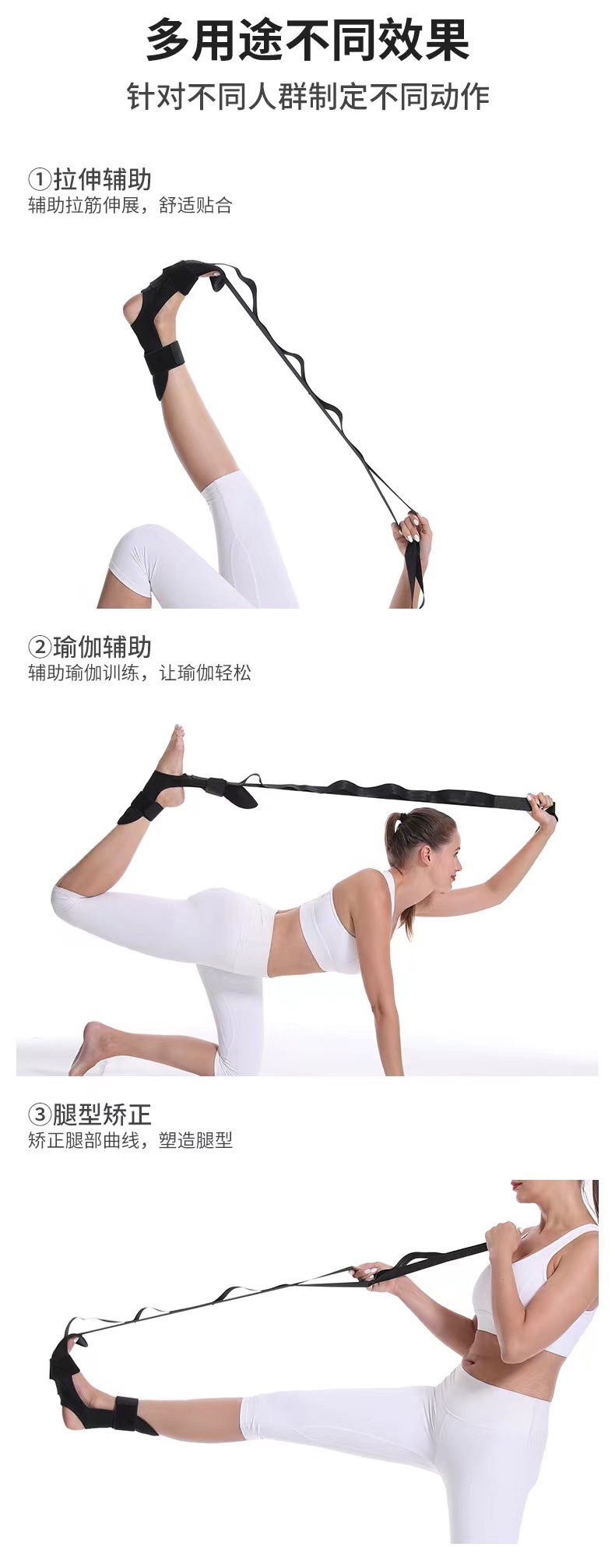 跨境直供分段调节辅助拉脚筋带康复训练腿部足部拉伸带瑜伽拉筋带
