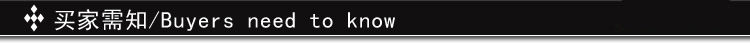 | 色差问题 | 我店商品照片均为自己拍摄,尽量与实物保持一致,但由于拍摄技术/环境光线/显示器色差等原因, 可能导致图片与实物有略有色差,请最终请以实物的颜色为准 |