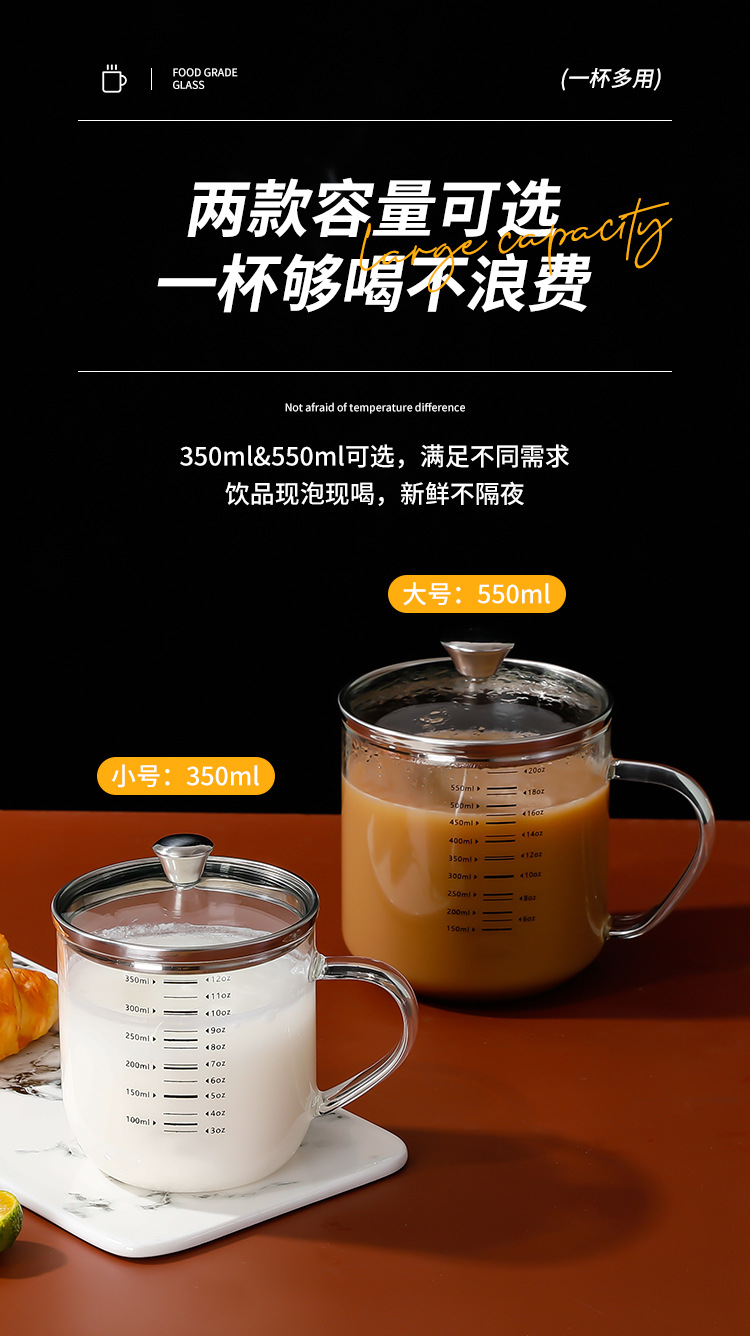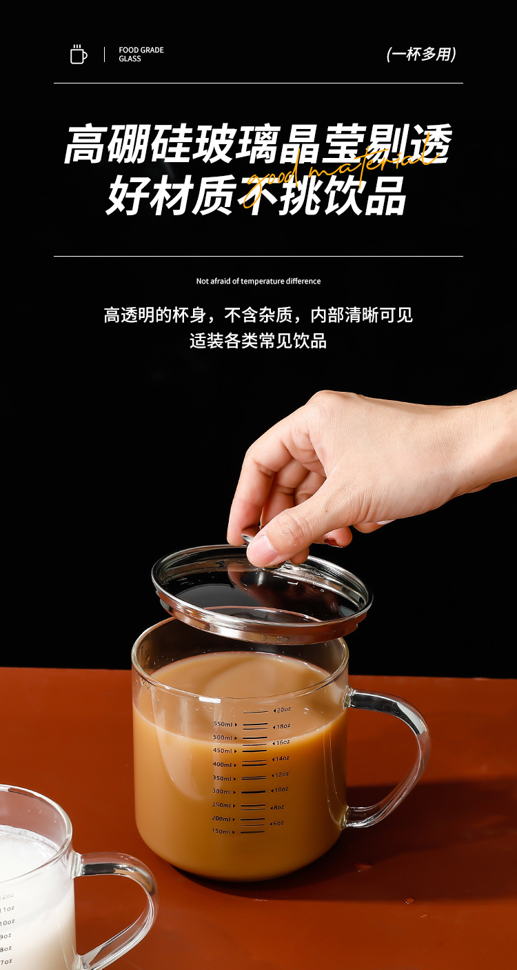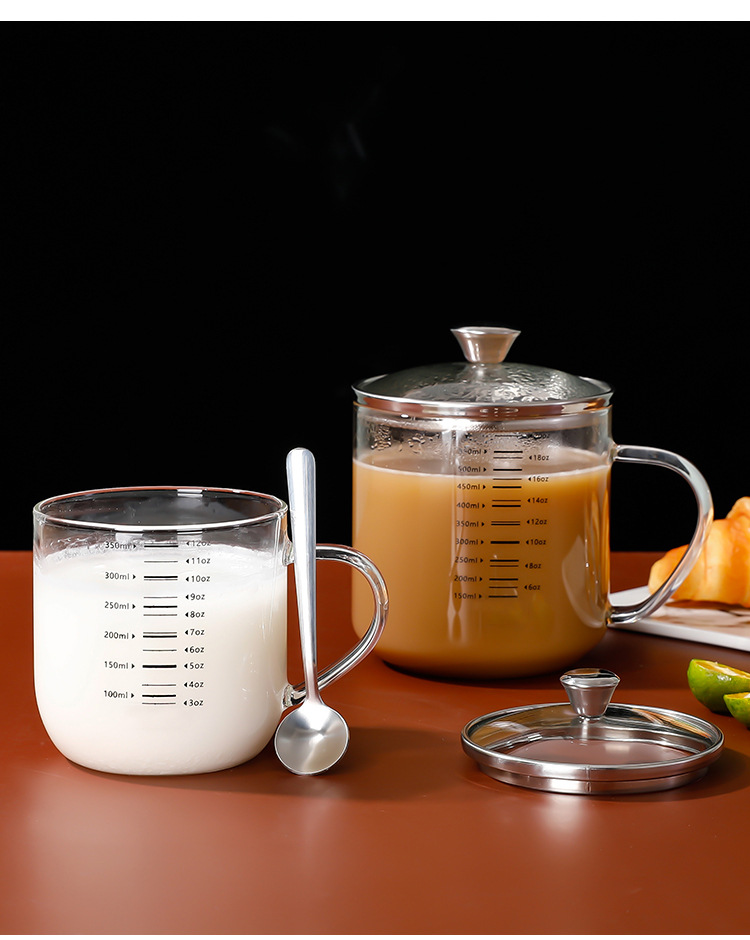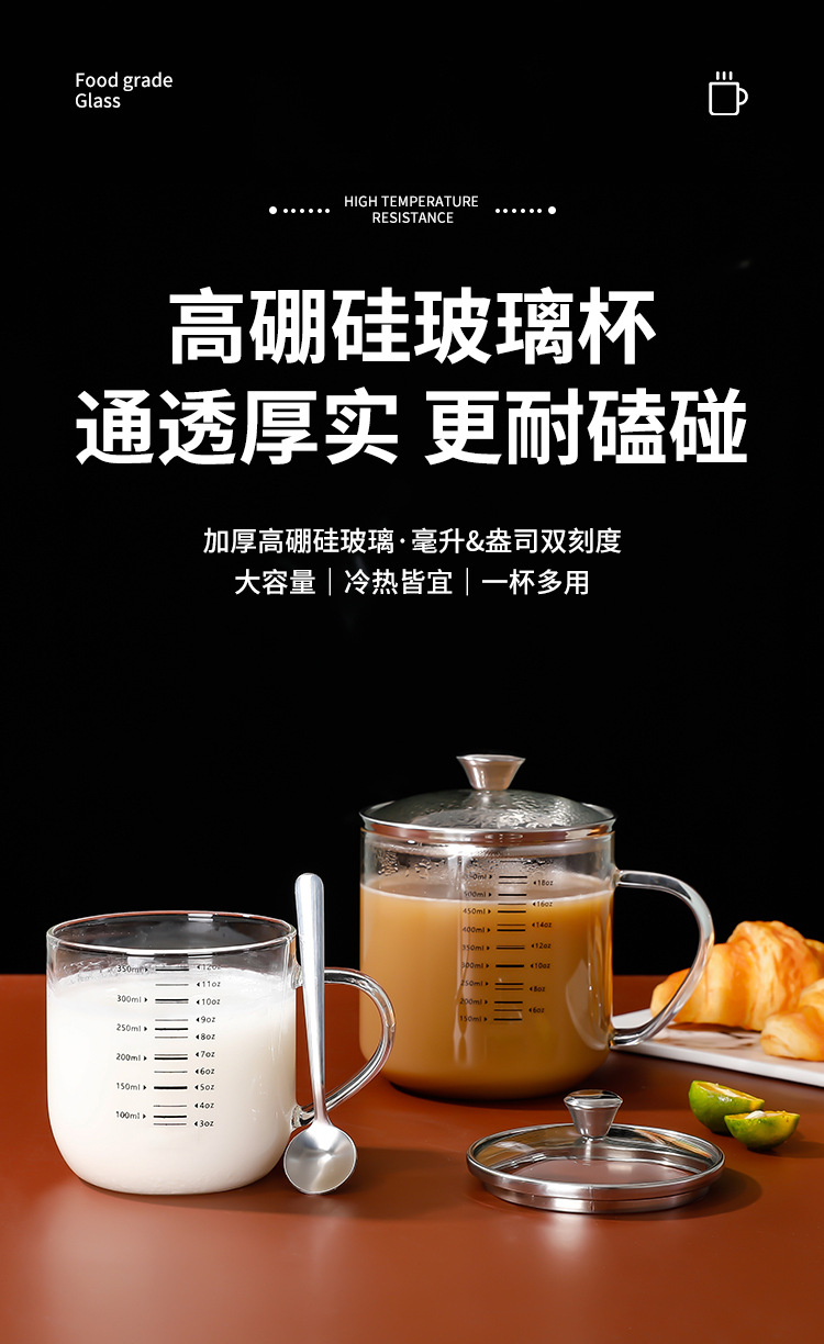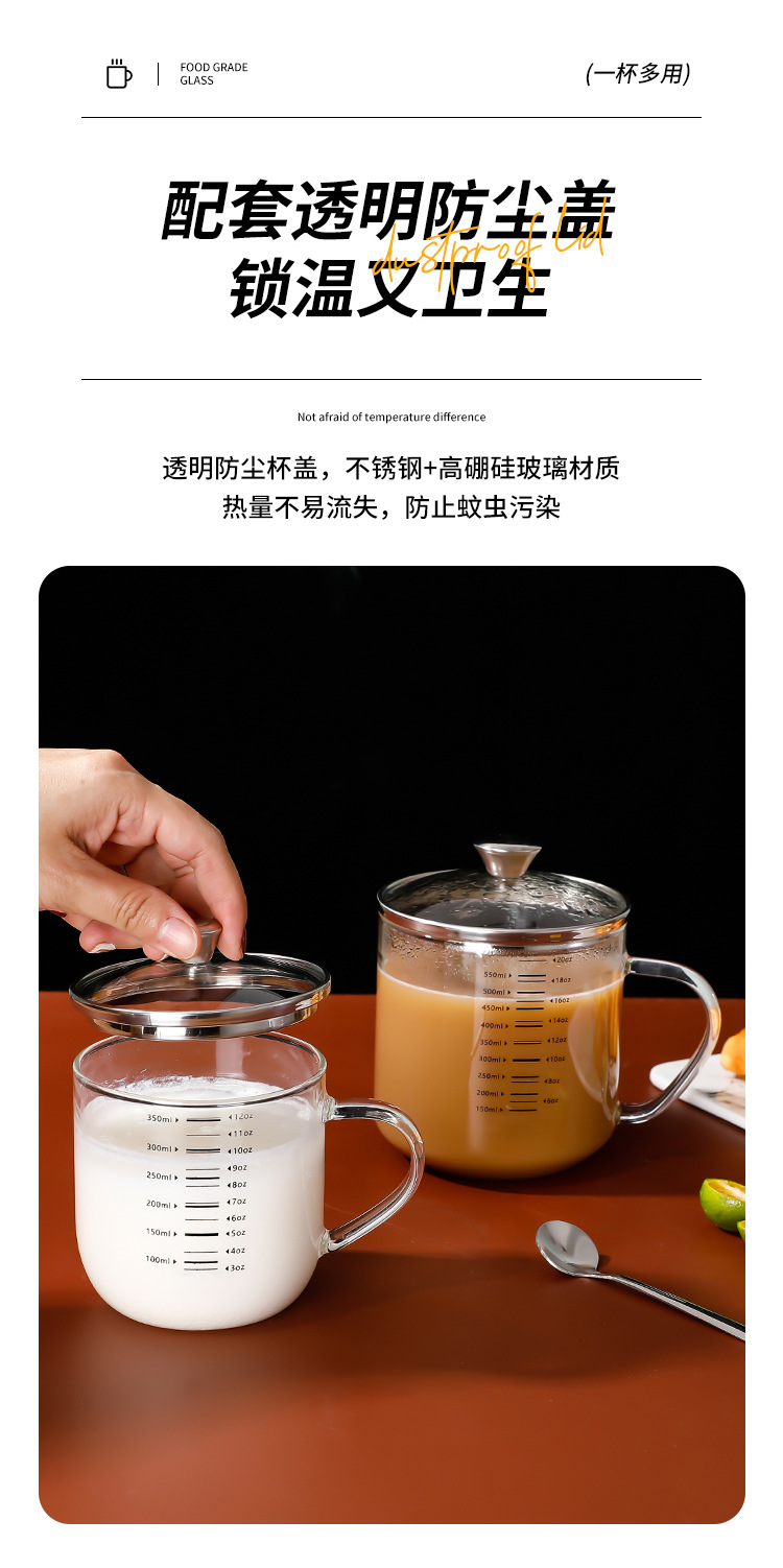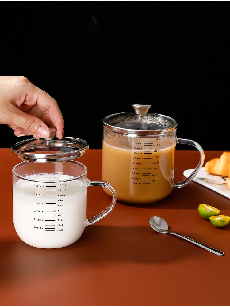 붕규산 유리 물 컵 가정용 304 스테인레스 스틸 컵 뚜껑이 달린 커피 콩 우유 아침 식사 컵