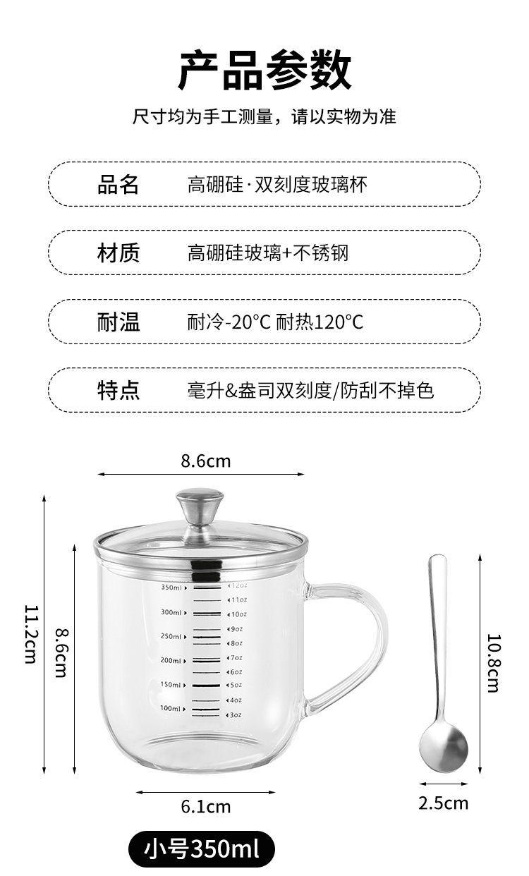 • 뚜껑이 있는 고붕규산 이중 저울 [350ml] 무료 304스푼
