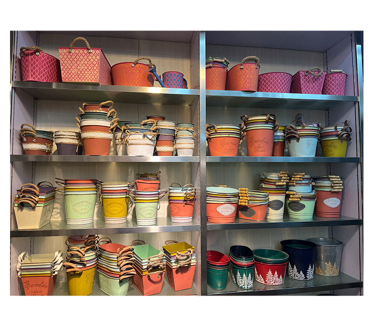 철 꽃 냄비 다채로운 목가적 인 말린 꽃 양동이 즙이 많은 꽃 냄비 철 철 꽃 냄비 꽃 가게 꽃꽂이 양동이 집 장식스토어 가기