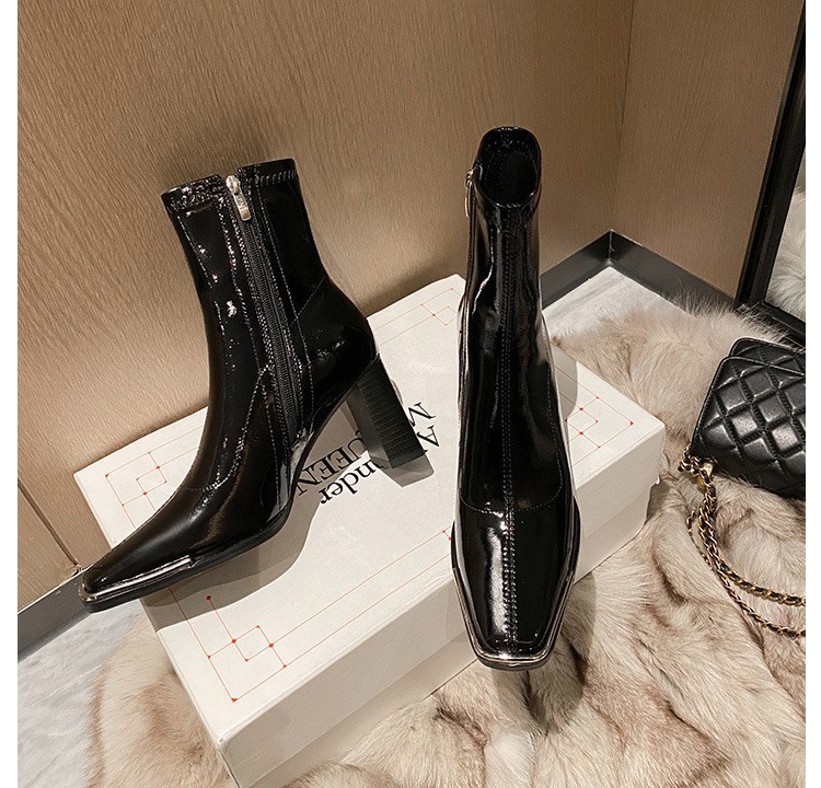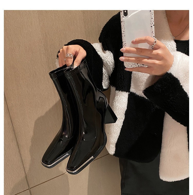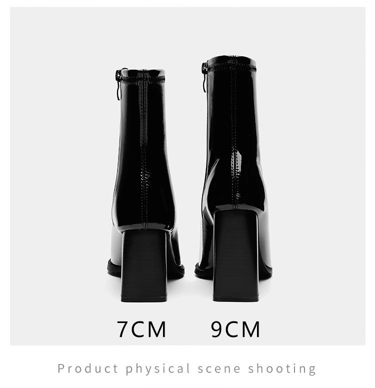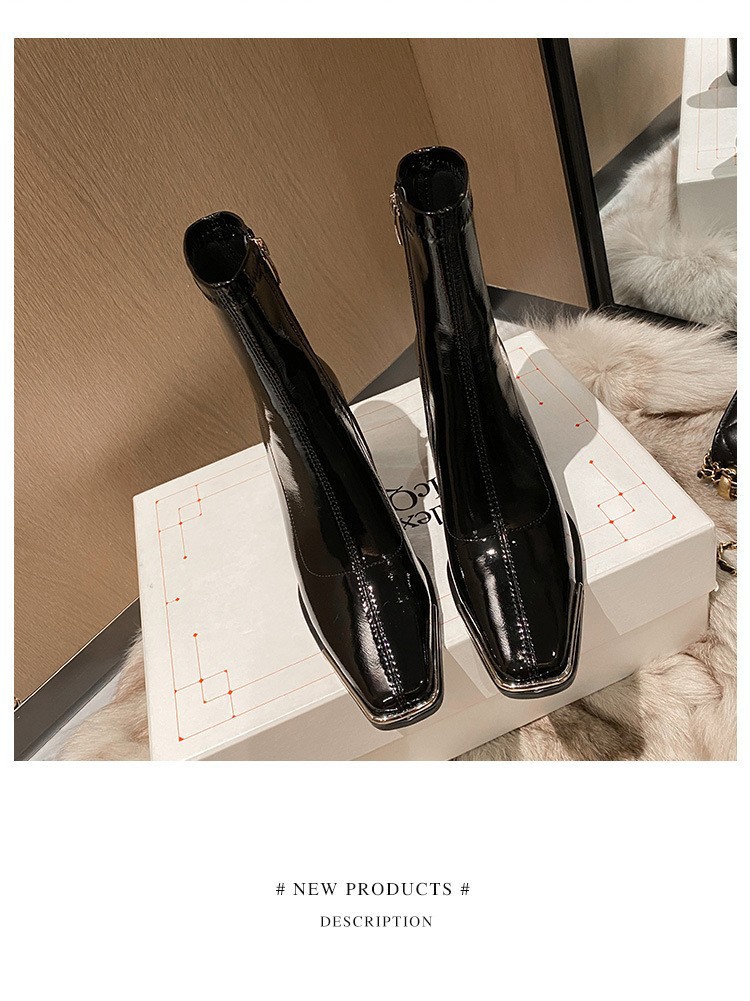 정품 가죽 블랙 얇은 부츠 kendou 같은 하이힐 짧은 부츠 2023 가을과 겨울 새로운 스퀘어 토 청키 힐 마틴 부츠스토어 가기