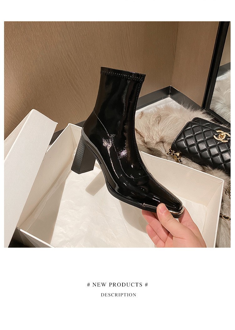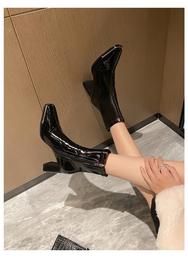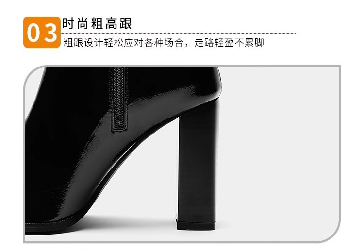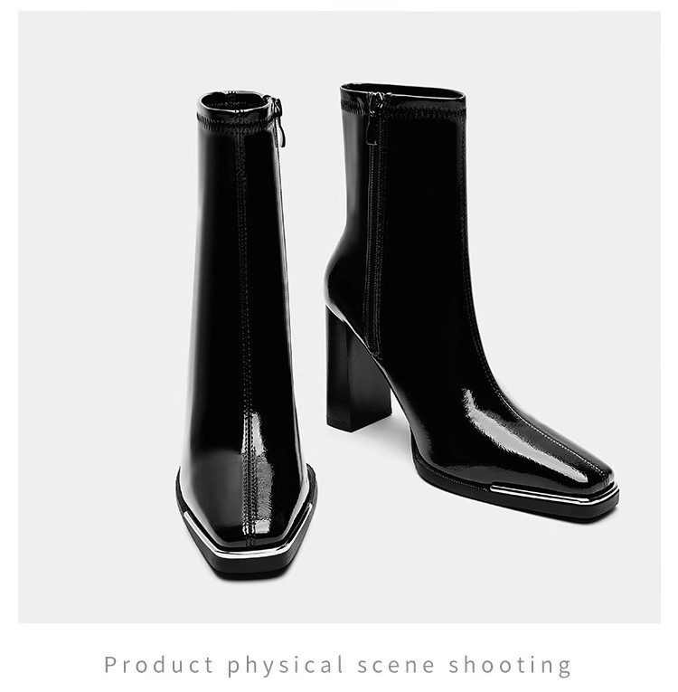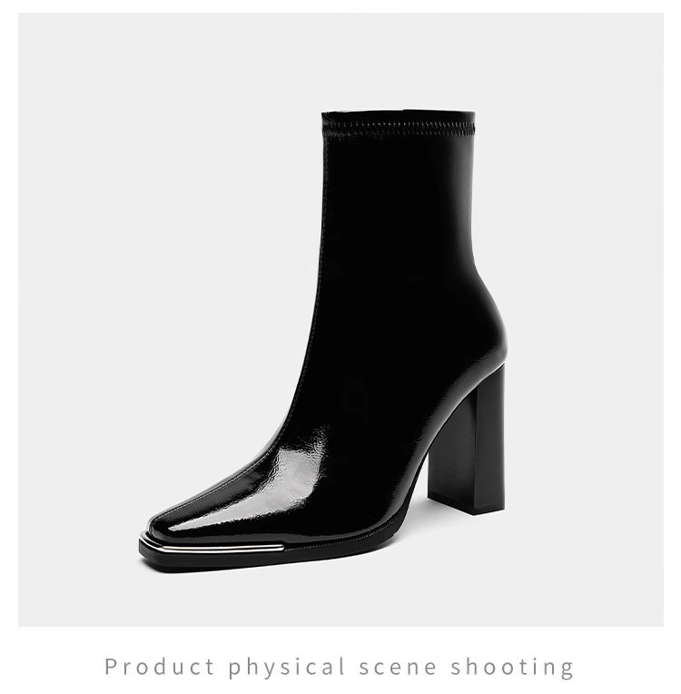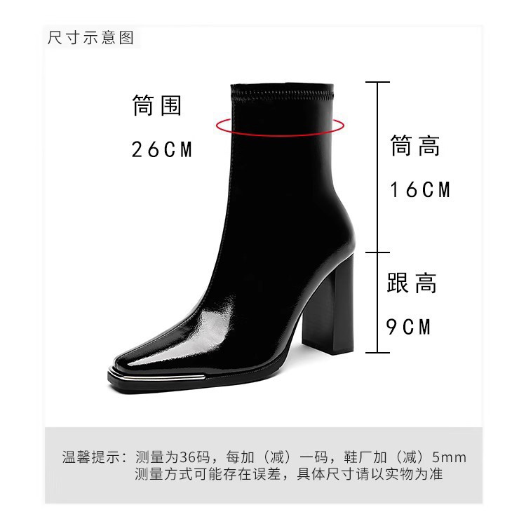 정품 가죽 블랙 얇은 부츠 kendou 같은 하이힐 짧은 부츠 2023 가을과 겨울 새로운 스퀘어 토 청키 힐 마틴 부츠