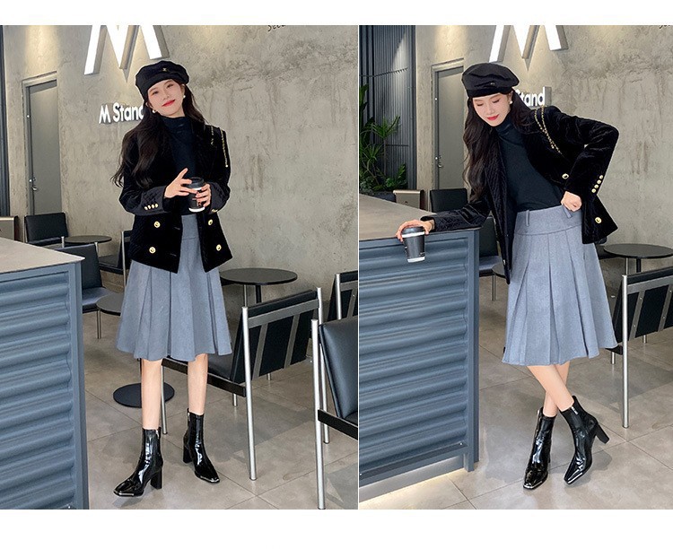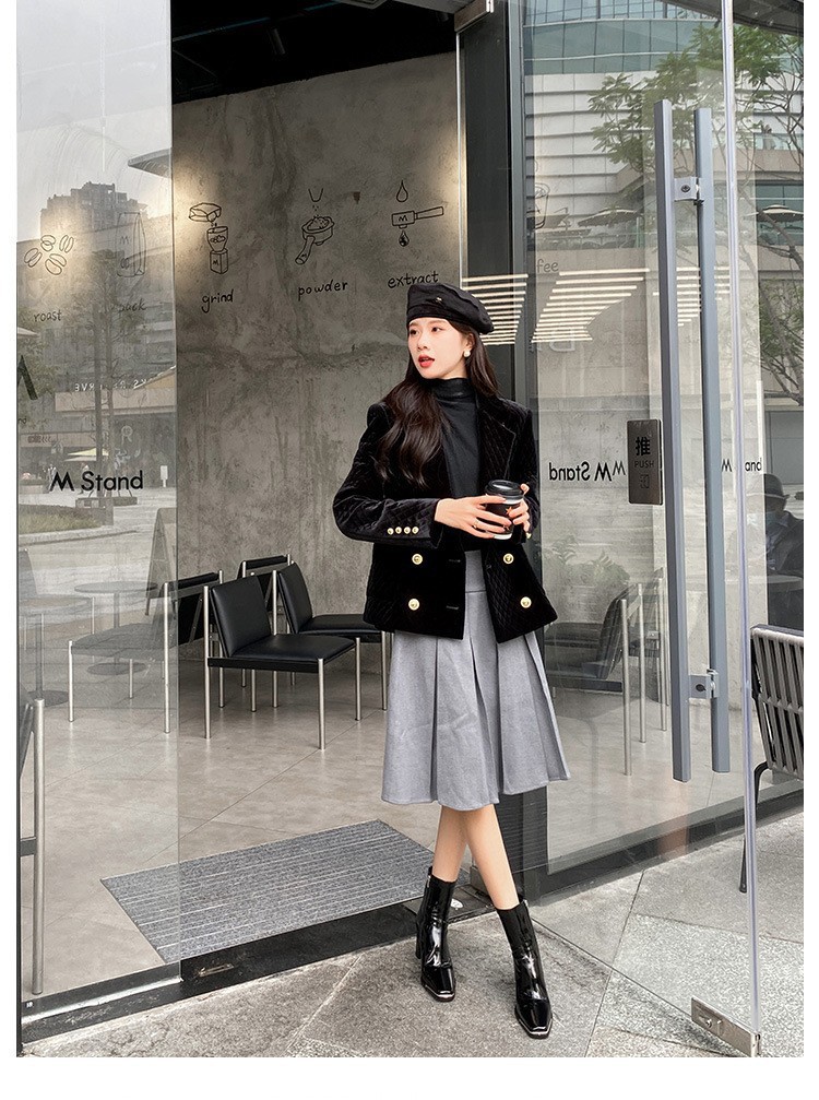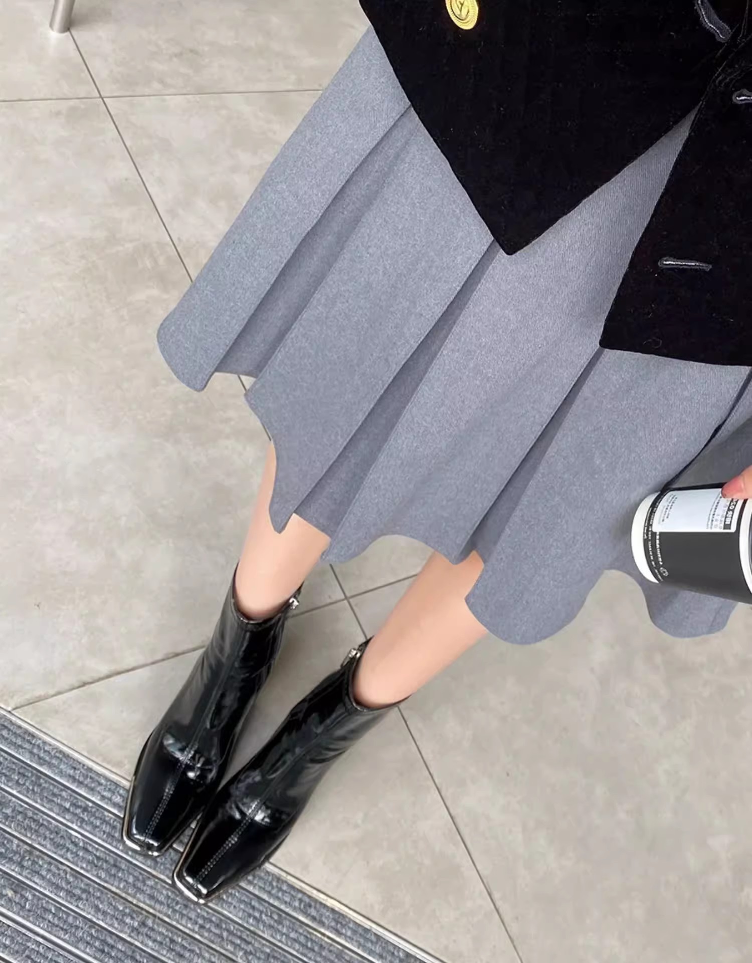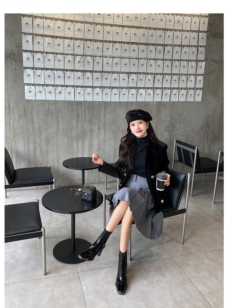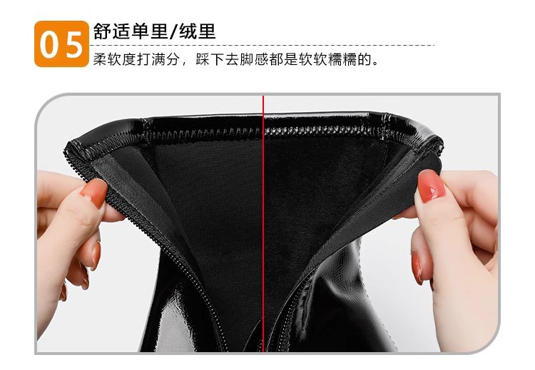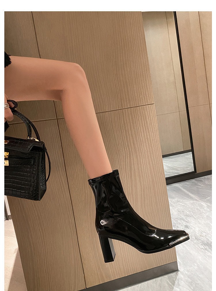 정품 가죽 블랙 얇은 부츠 kendou 같은 하이힐 짧은 부츠 2023 가을과 겨울 새로운 스퀘어 토 청키 힐 마틴 부츠