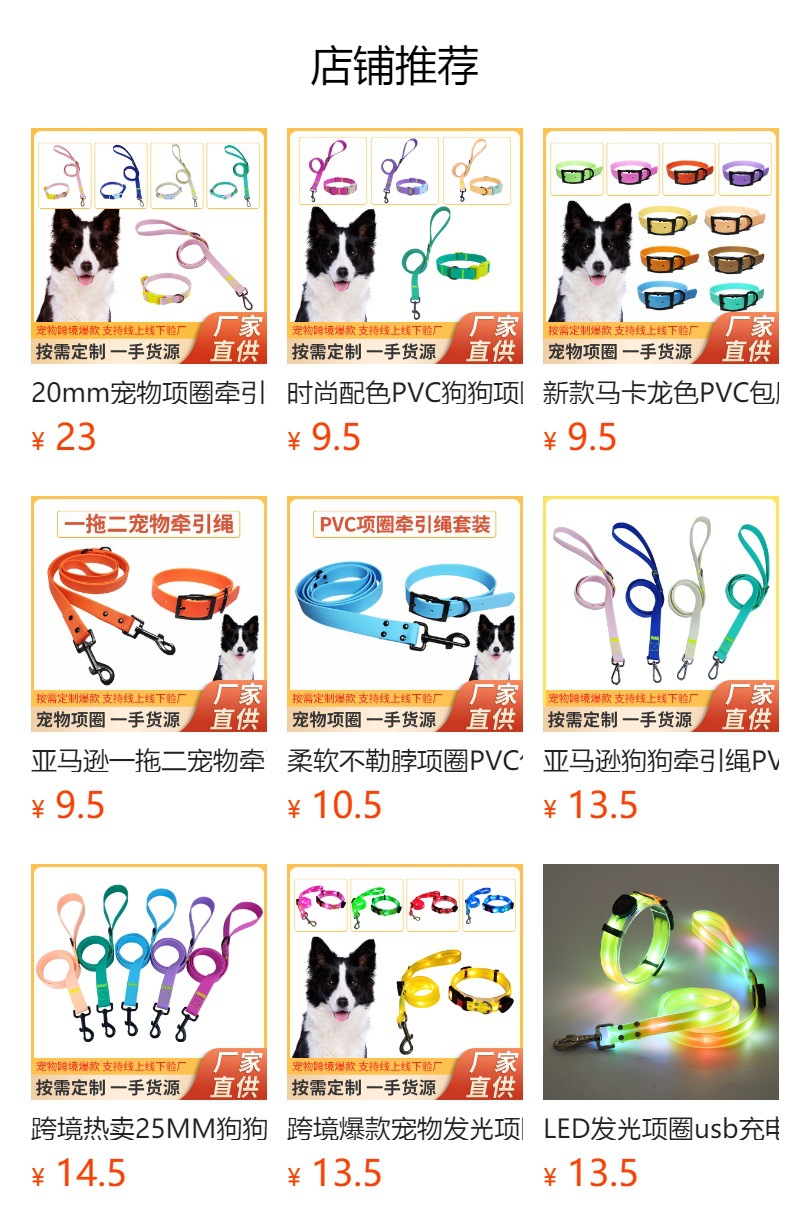 국경을 넘는 애완동물 훈련용 방수 및 오염 방지 PVC 코팅 폴리에스터 웨빙 단색 강아지 목줄 산책줄스토어 가기
