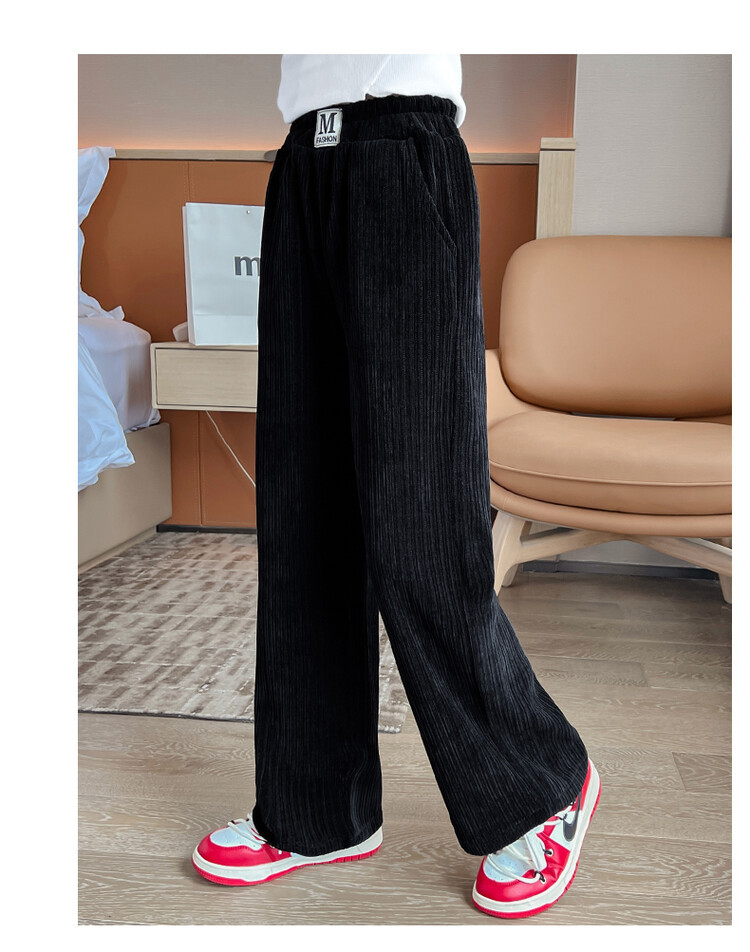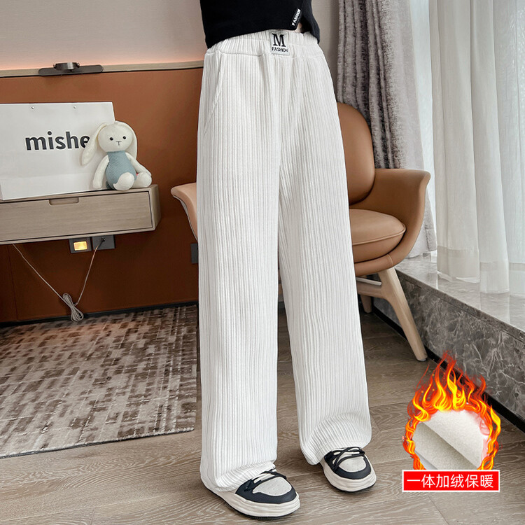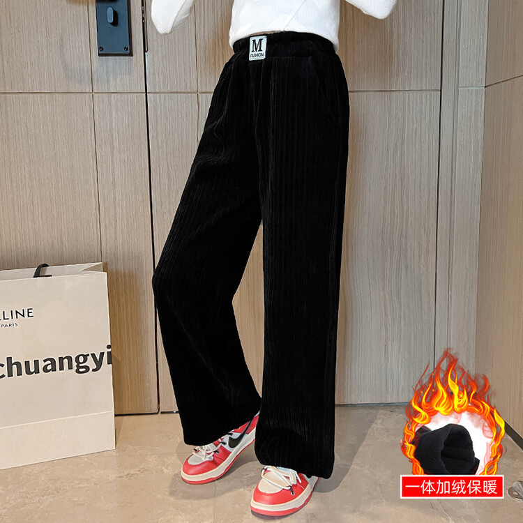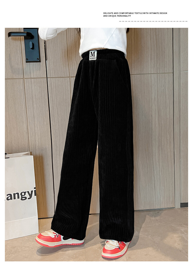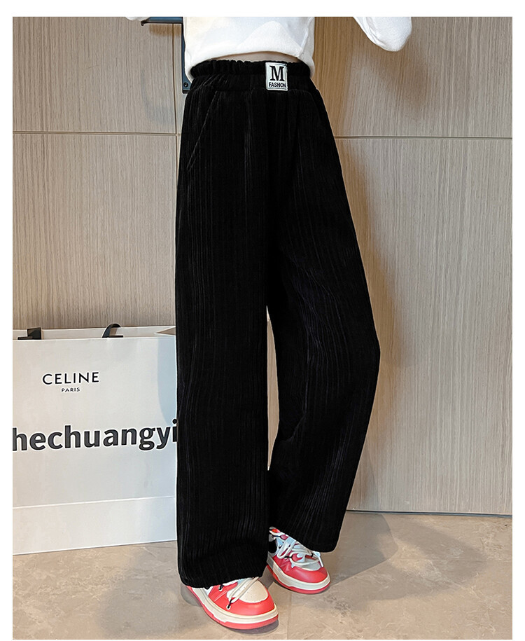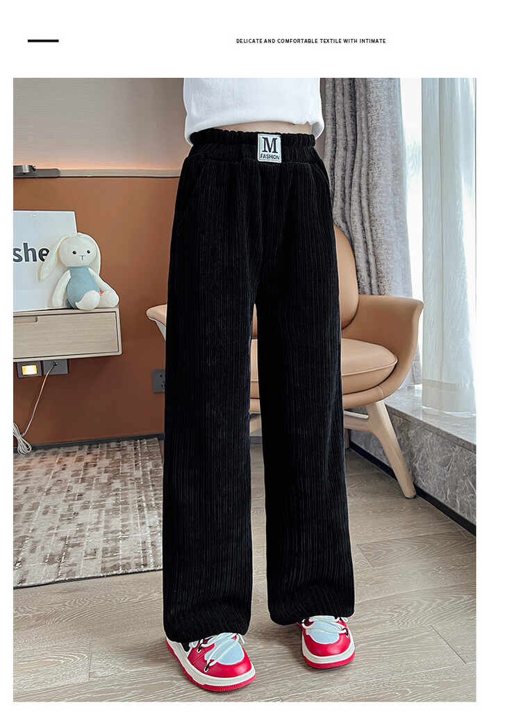 겨울 신상품 여아용 두꺼운 벨벳 바지, 중대형 어린이용 일체형 벨벳 키즈 여아용 루즈핏 셔닐 와이드 팬츠