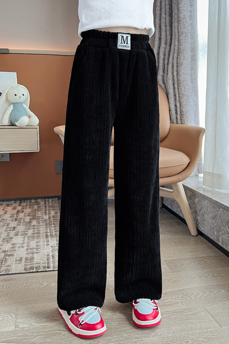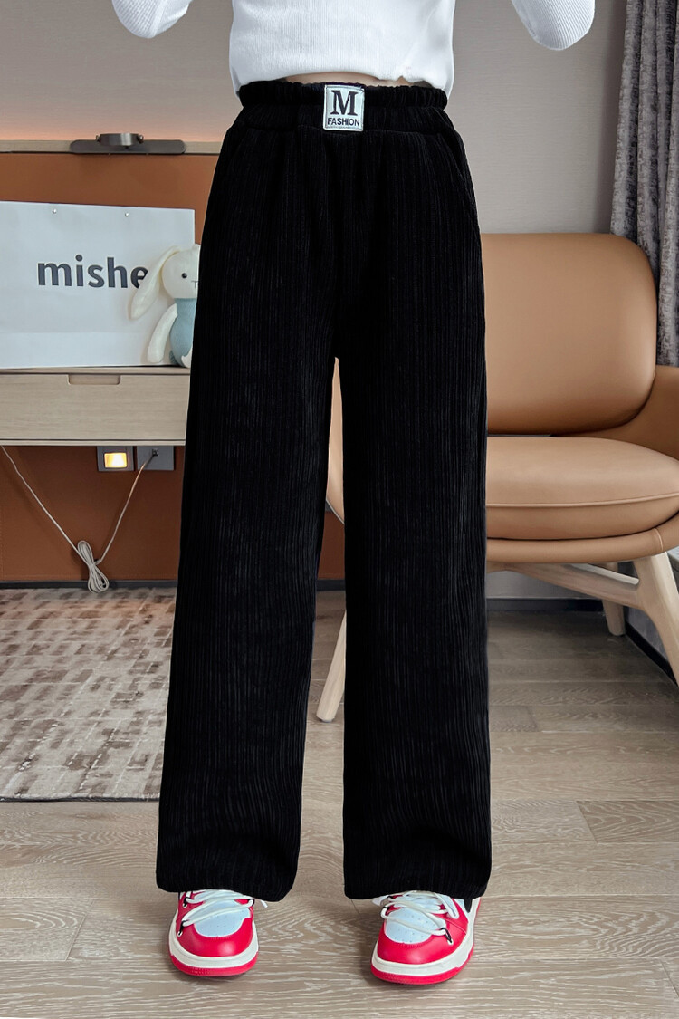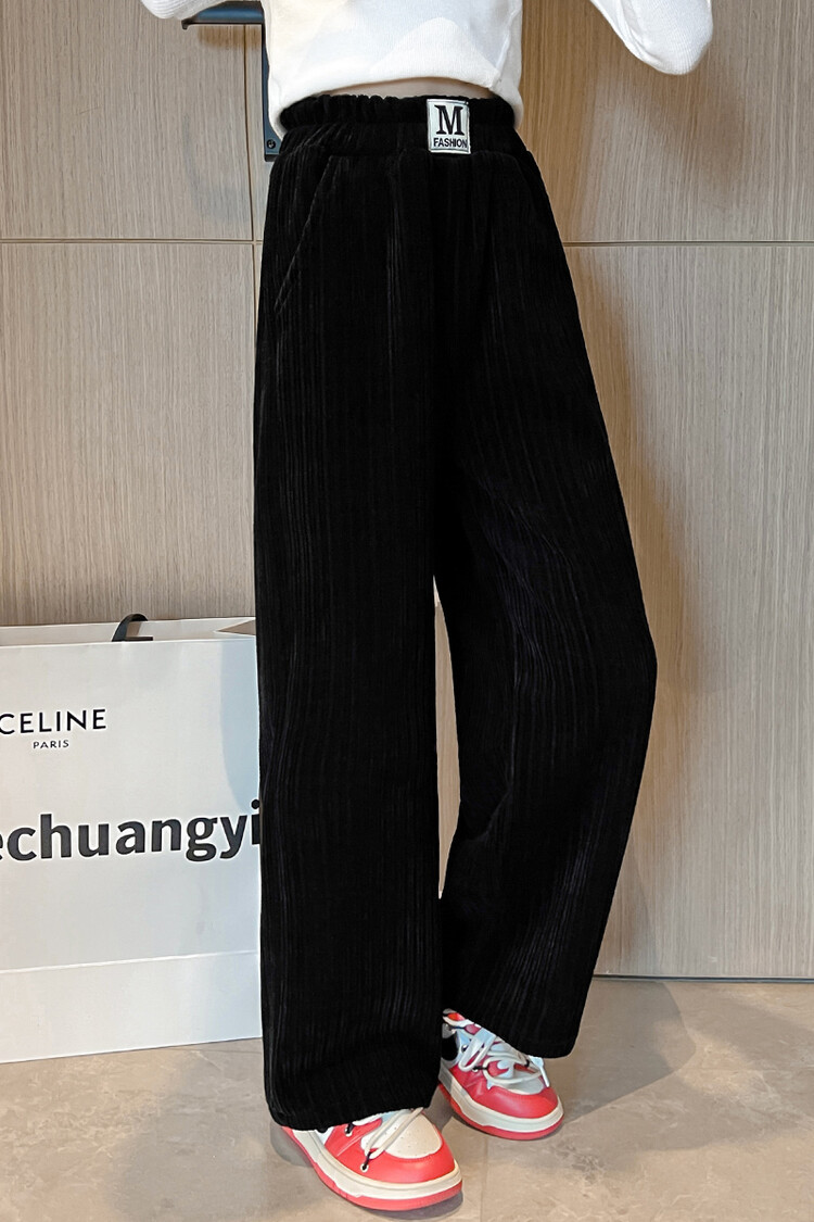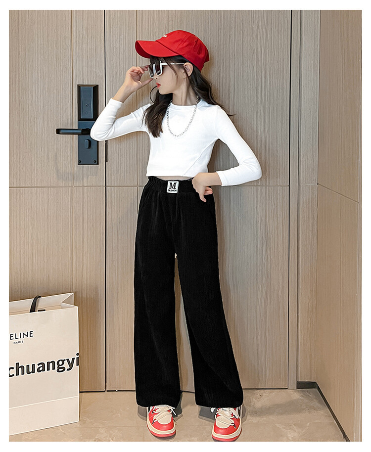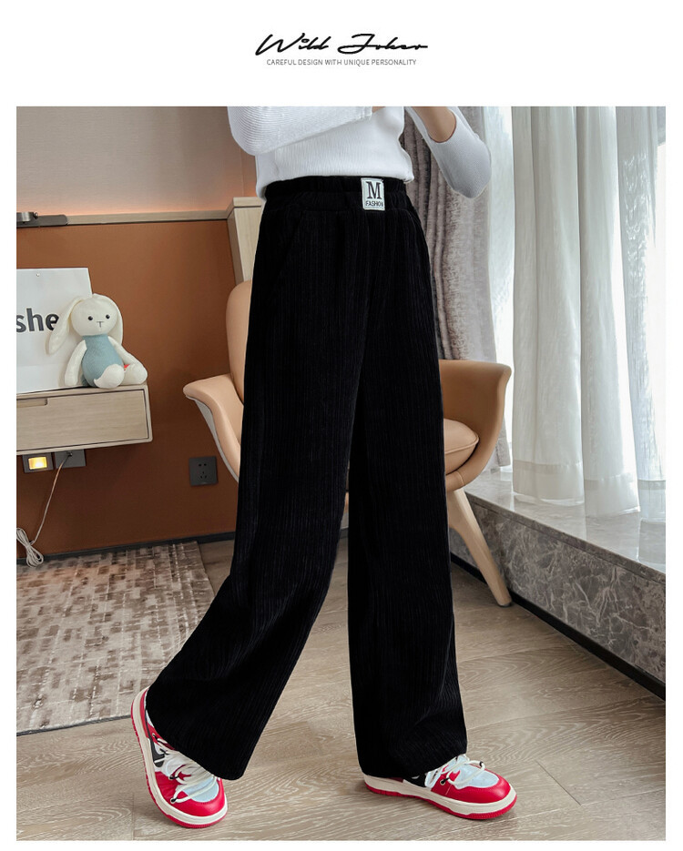 겨울 신상품 여아용 두꺼운 벨벳 바지, 중대형 어린이용 일체형 벨벳 키즈 여아용 루즈핏 셔닐 와이드 팬츠