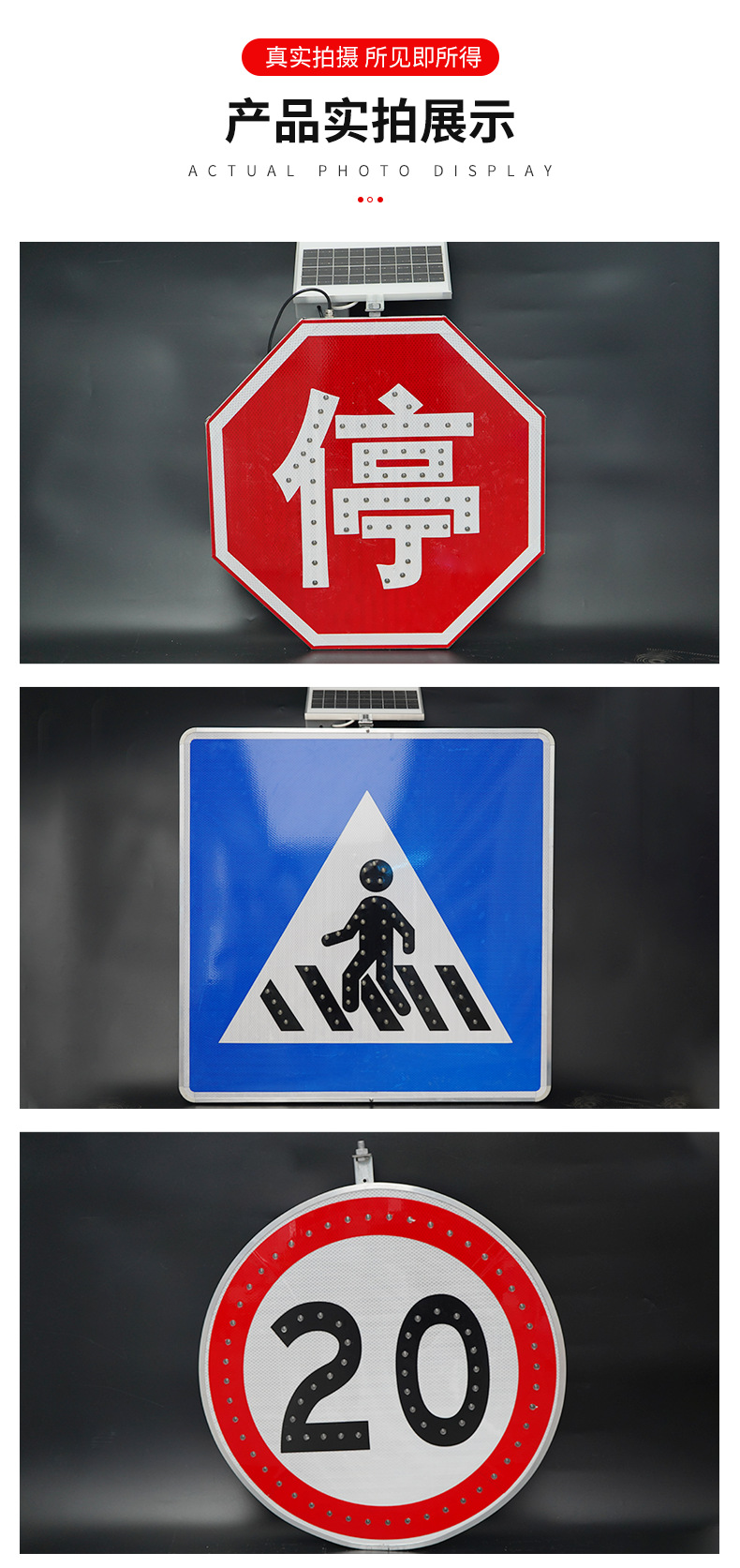 LED 번쩍이는 도로 교통 표지판 태양 자체 발광 가이드 표지판 경고 표지판 라운드 속도 제한 높이 제한 폭 제한 표지판스토어 가기