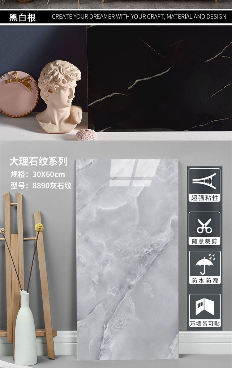 모조 알루미늄 플라스틱 보드 벽 스티커 자체 접착 타일 대리석 욕실 주방 벽 장식 방수 방습 PVC 스티커