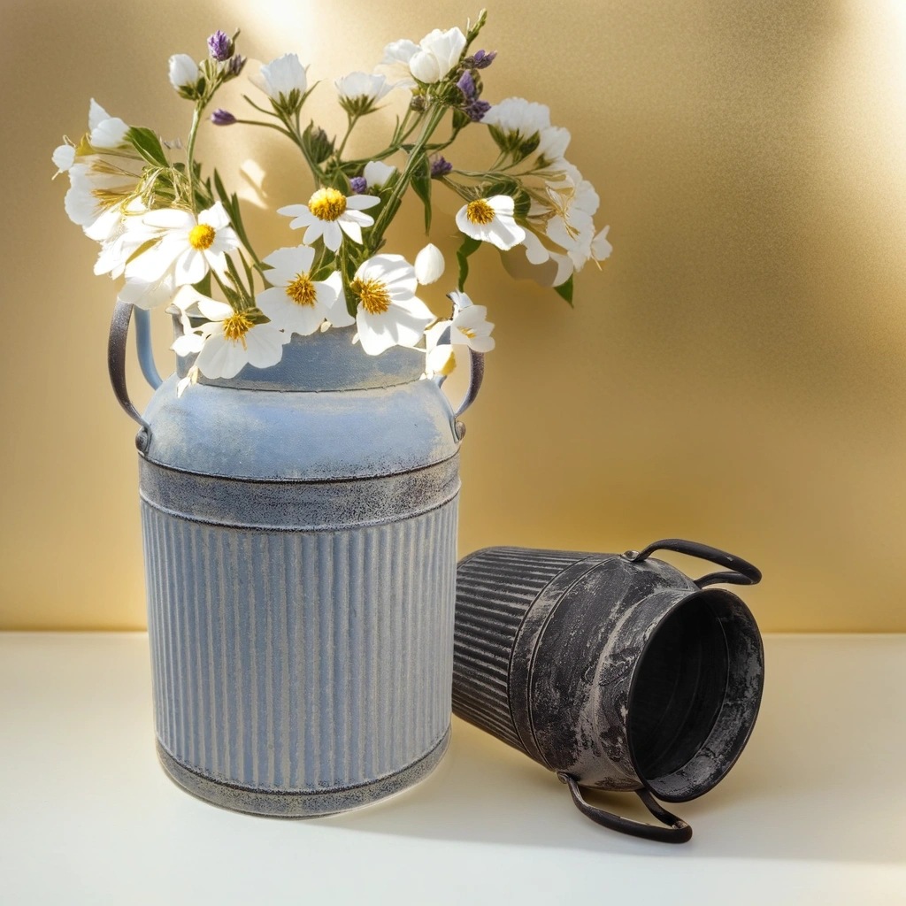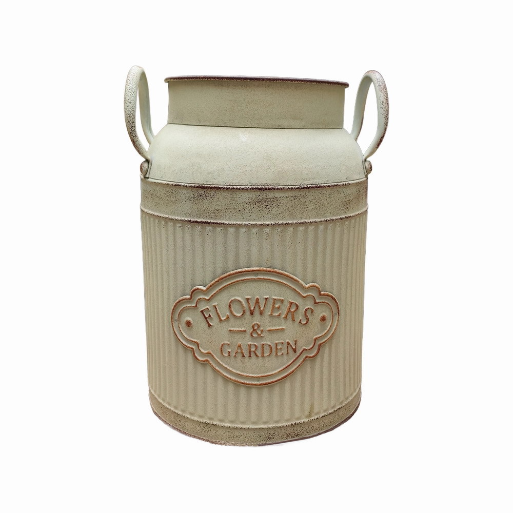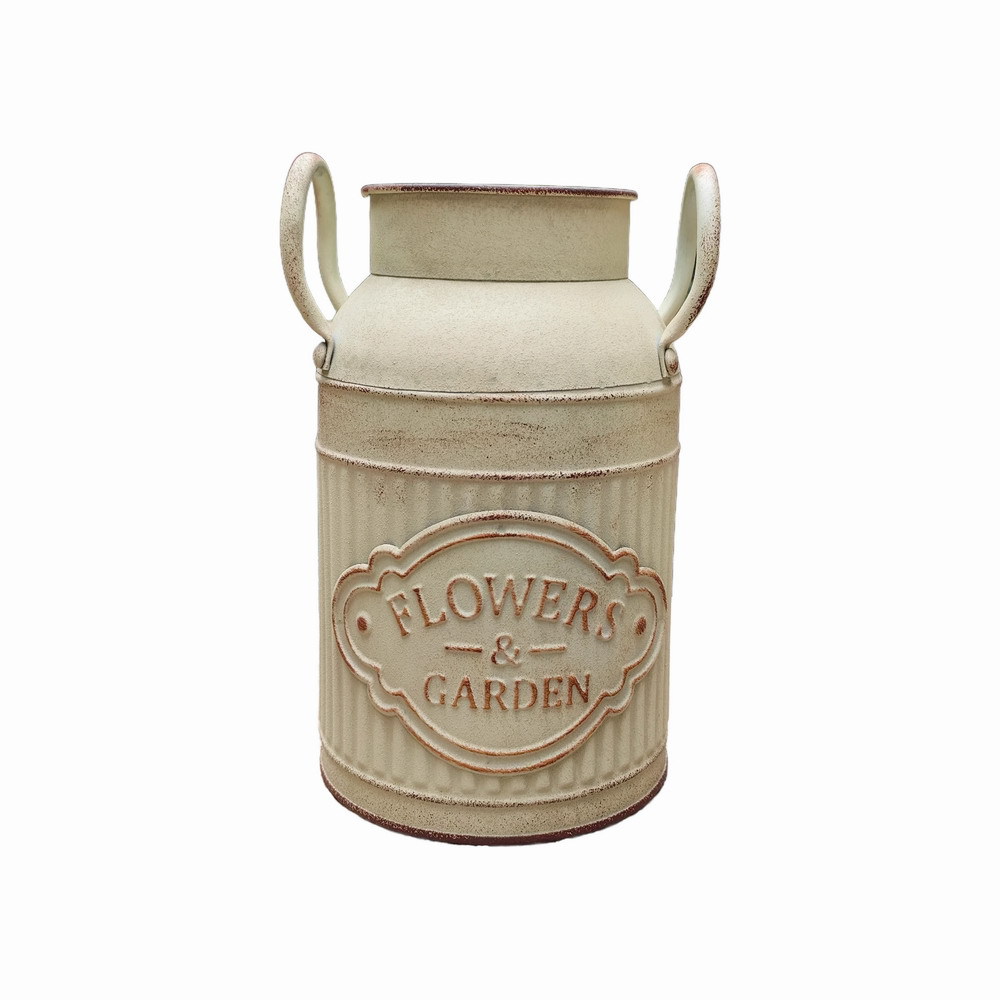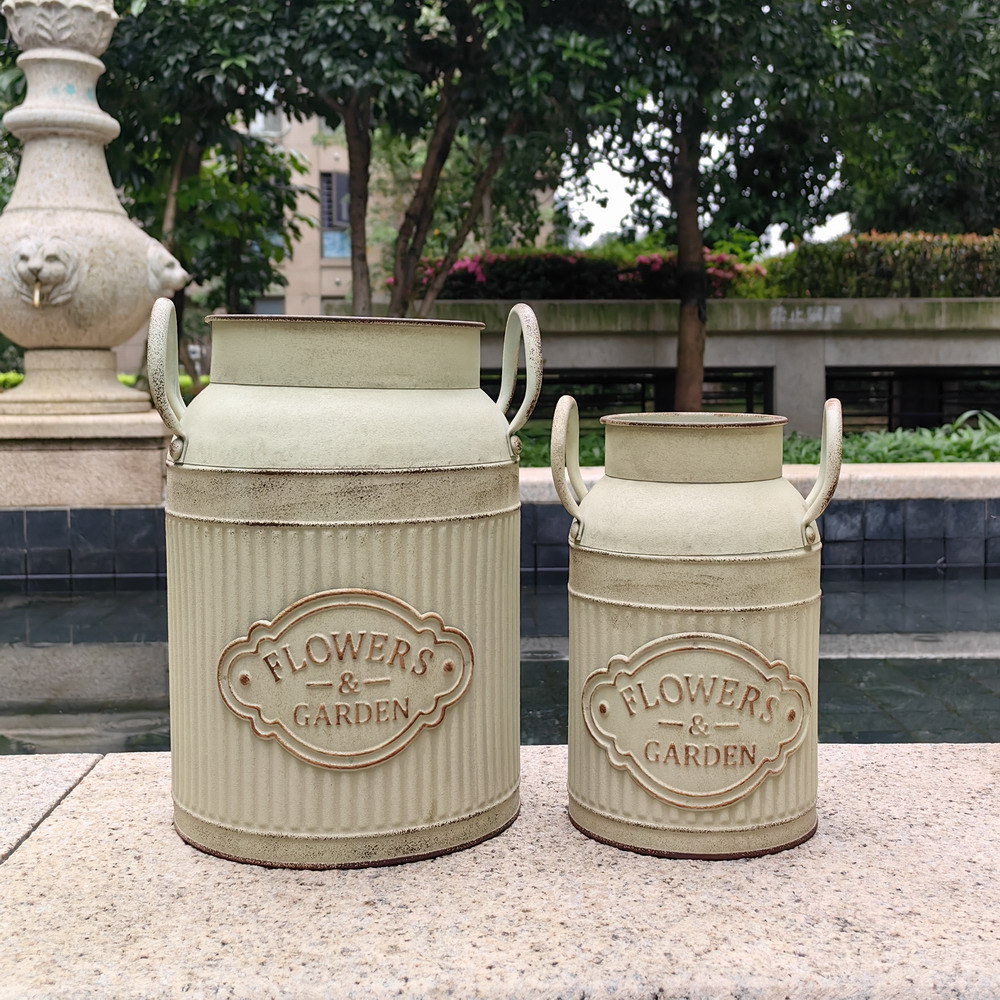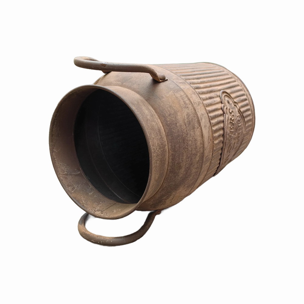 Youmei 복고풍 두꺼운 표면 웨이브 모양의 철 파이프 핸들 우유 말린 꽃 꽃꽂이 꽃 튜브 꽃 철 데스크탑 장식