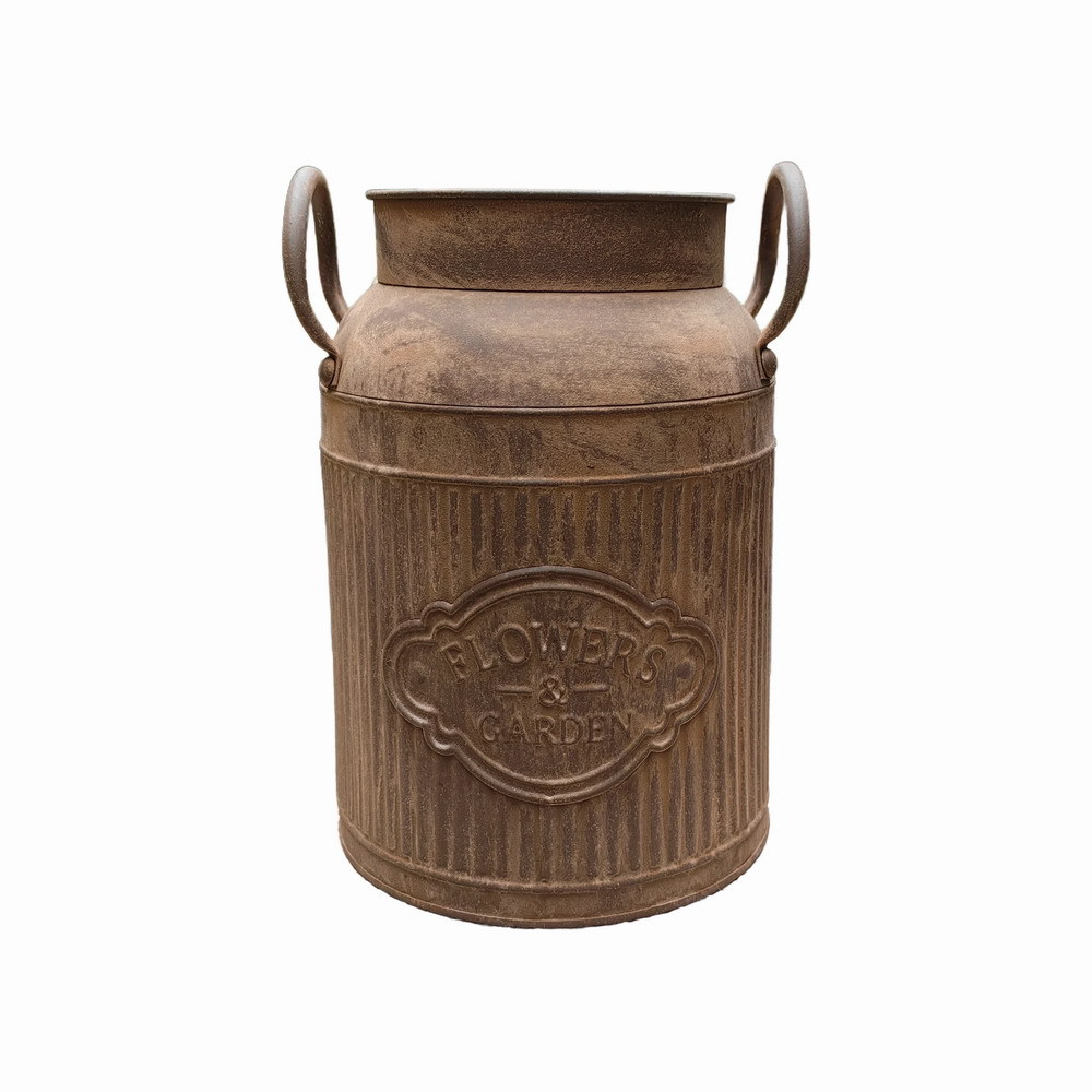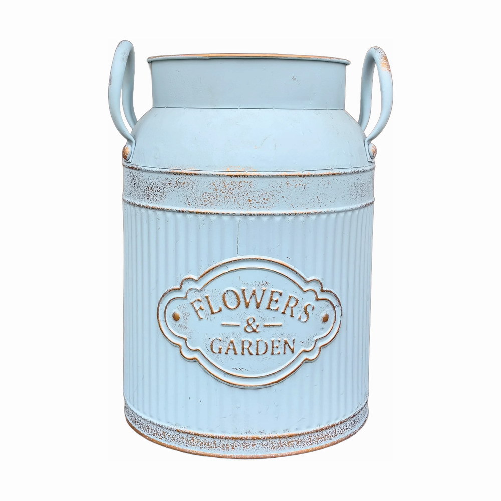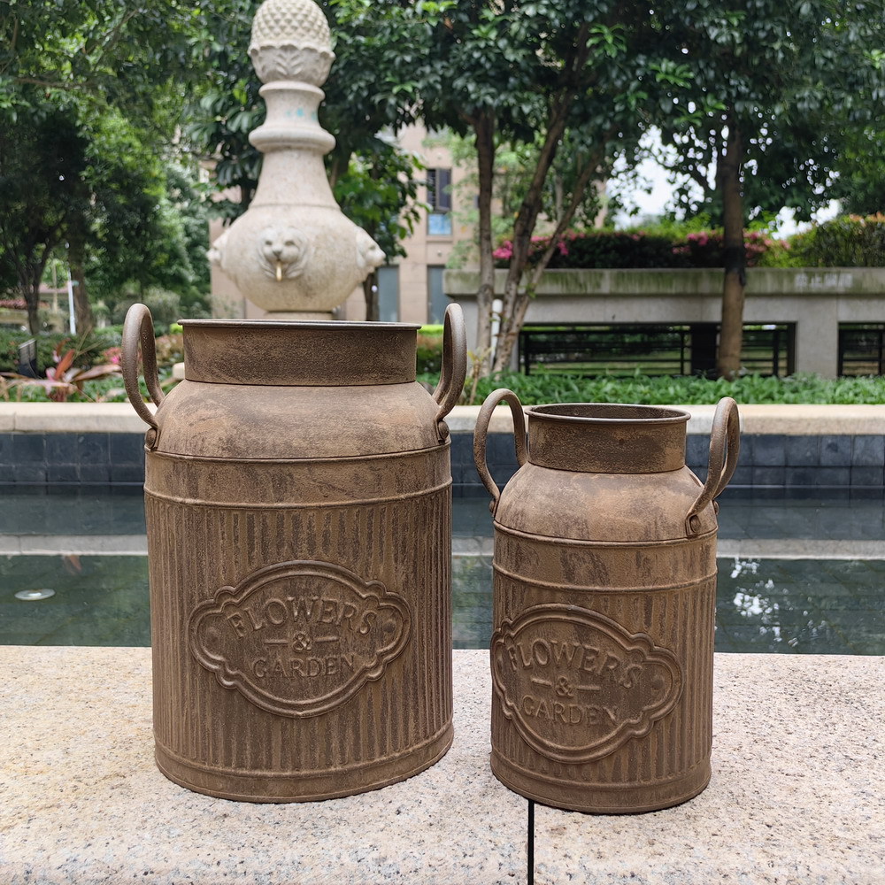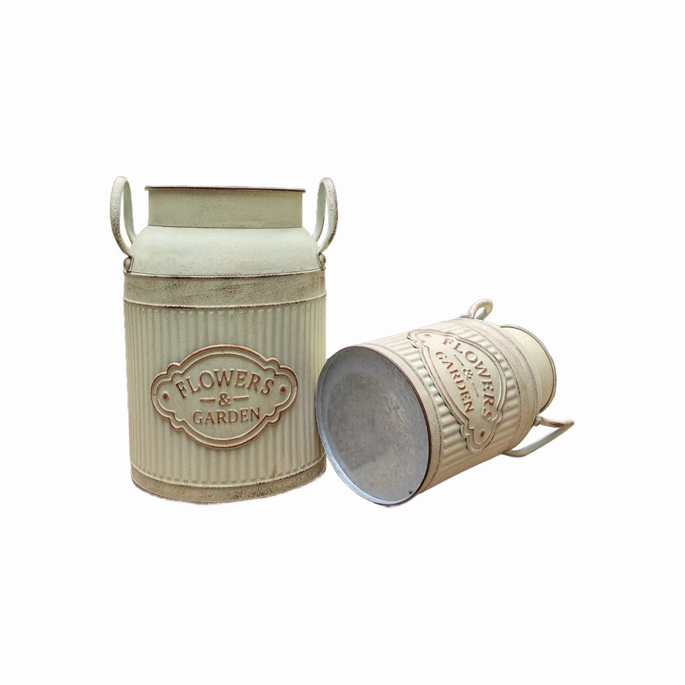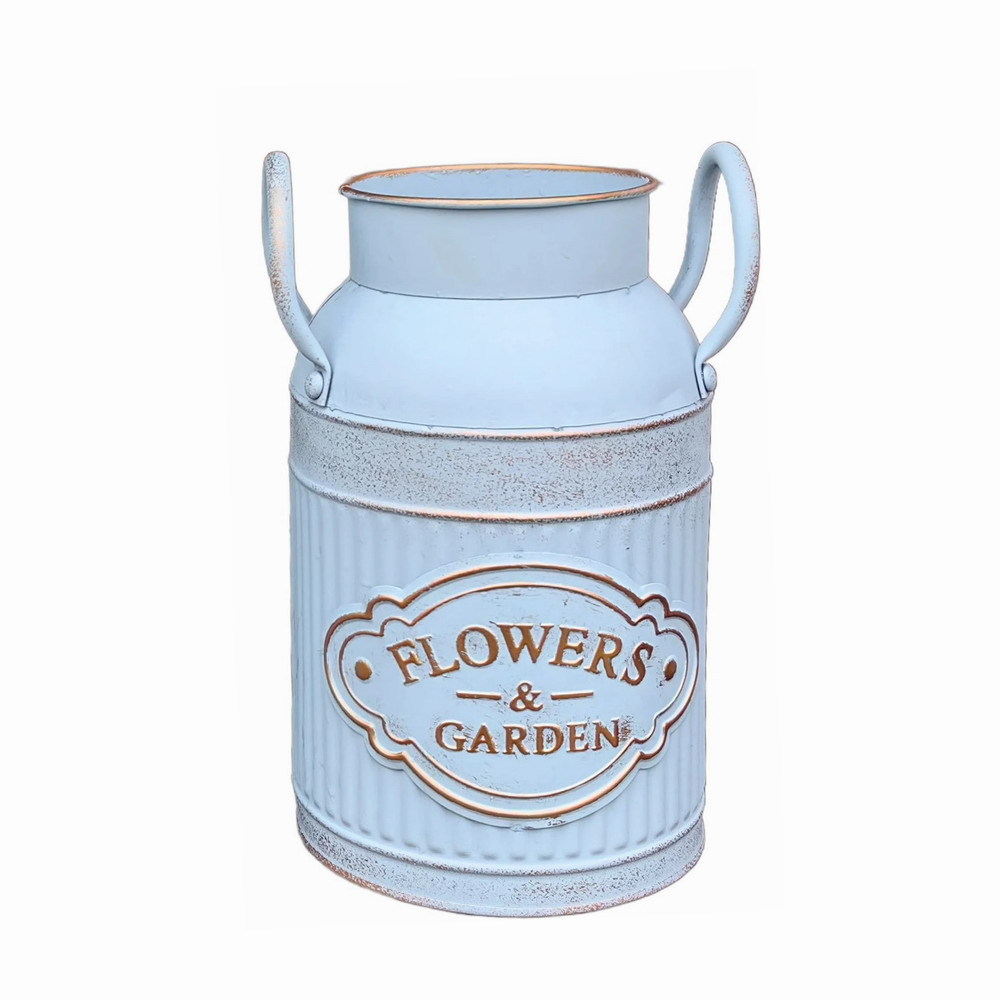 Youmei 복고풍 두꺼운 표면 웨이브 모양의 철 파이프 핸들 우유 말린 꽃 꽃꽂이 꽃 튜브 꽃 철 데스크탑 장식