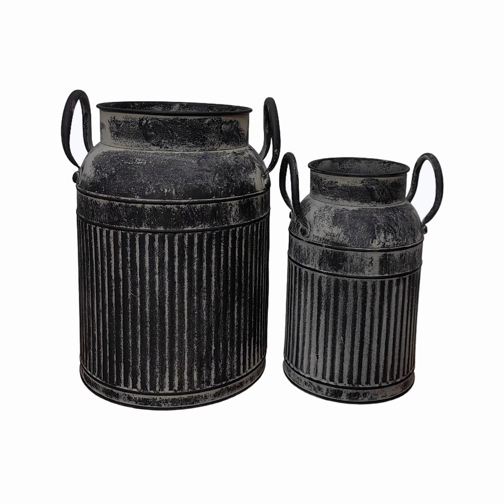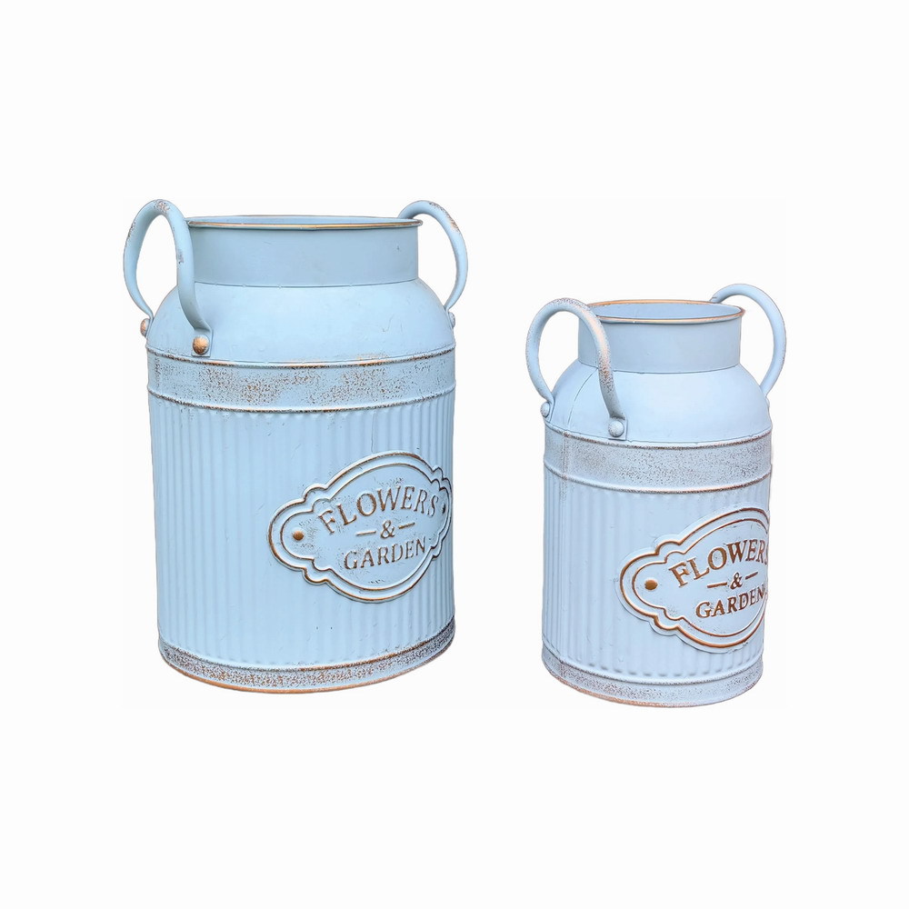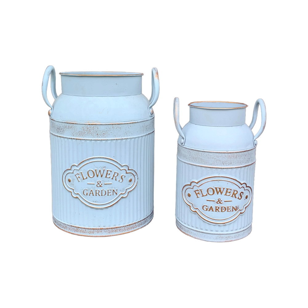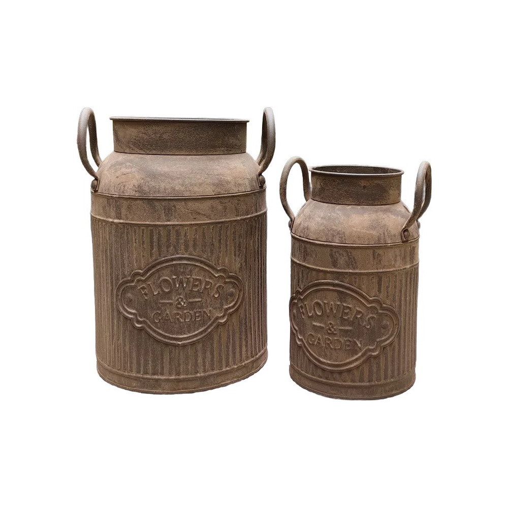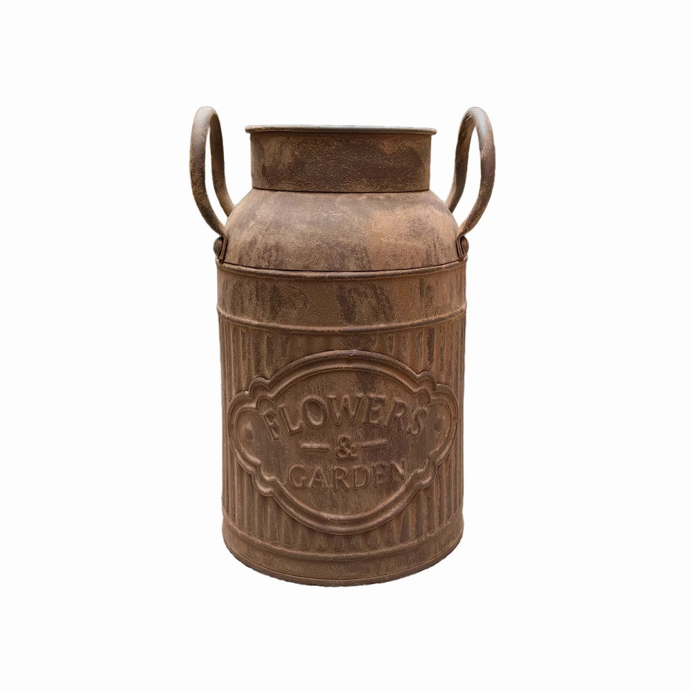 Youmei 복고풍 두꺼운 표면 웨이브 모양의 철 파이프 핸들 우유 말린 꽃 꽃꽂이 꽃 튜브 꽃 철 데스크탑 장식