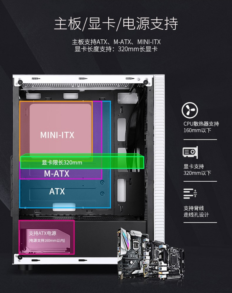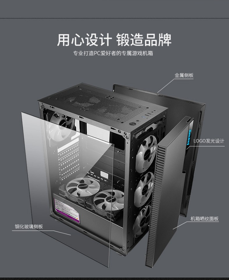 Hangjia GS450C 단일 섀시 데스크탑 강화 유리 측면 투명 방진 수냉식 ATX 기계