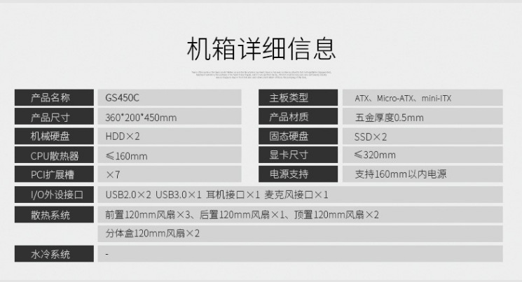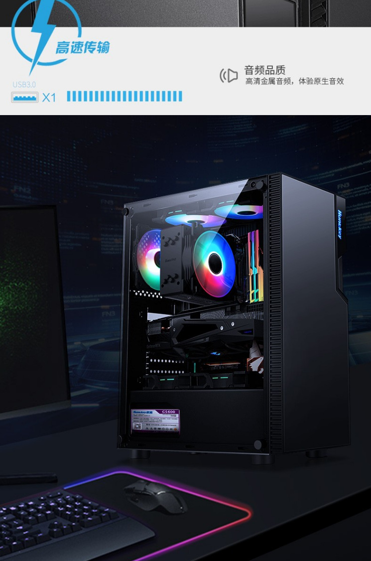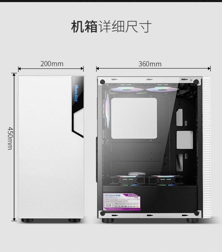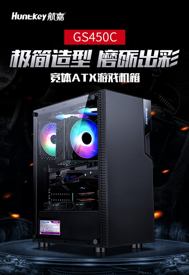 Hangjia GS450C 단일 섀시 데스크탑 강화 유리 측면 투명 방진 수냉식 ATX 기계스토어 가기