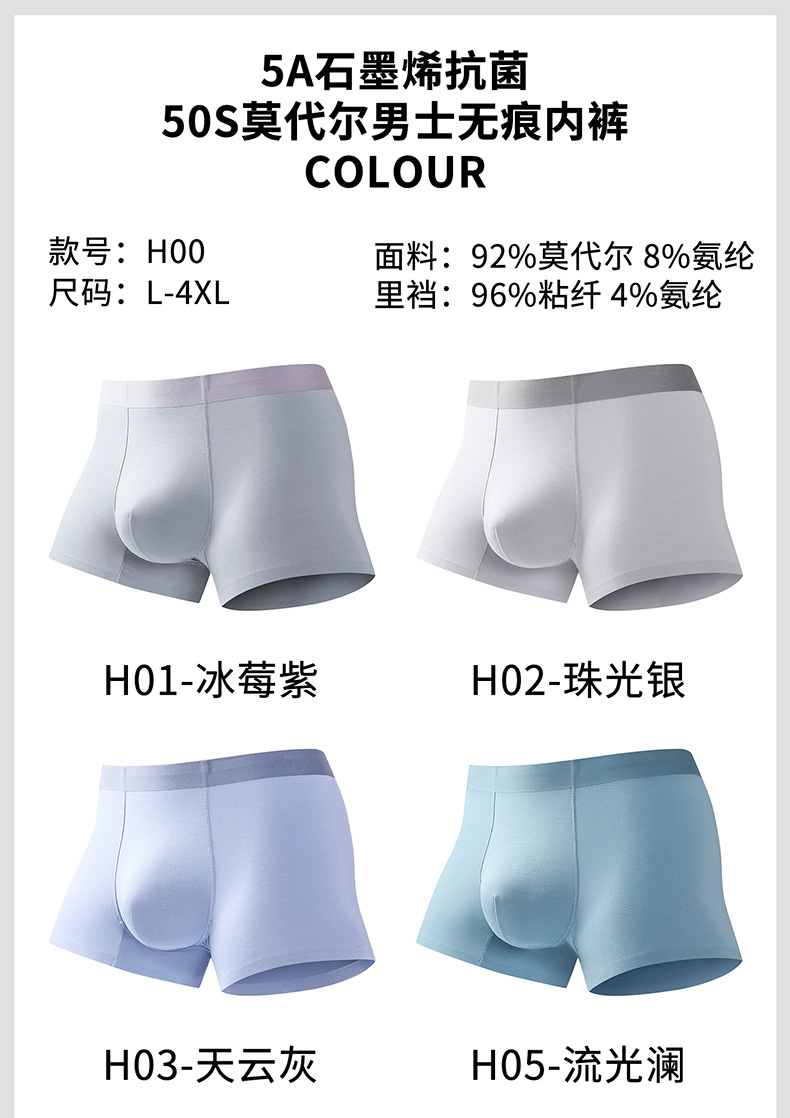 50S 모달 남성용 무봉제 속옷 편안한 단색 중간 허리 사각팬티 개성 있는 통기성 사각팬츠 신상품스토어 가기