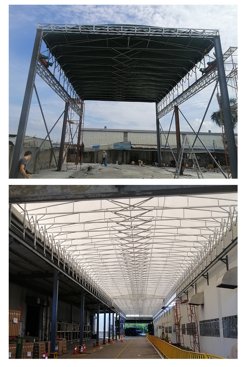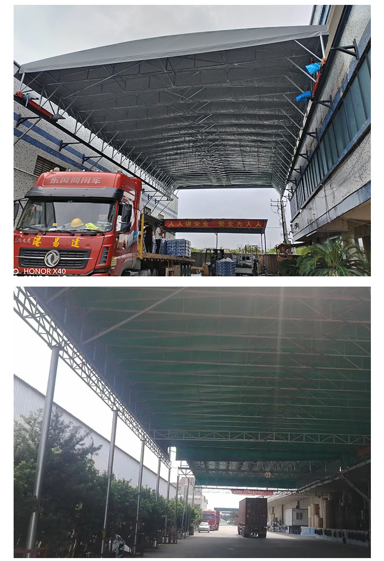 厂家供应工地伸缩雨蓬物流棚活动大型篮球场蓬推拉棚膜车棚结构