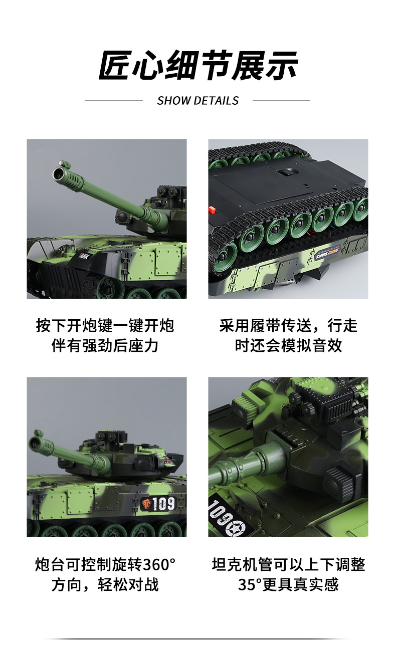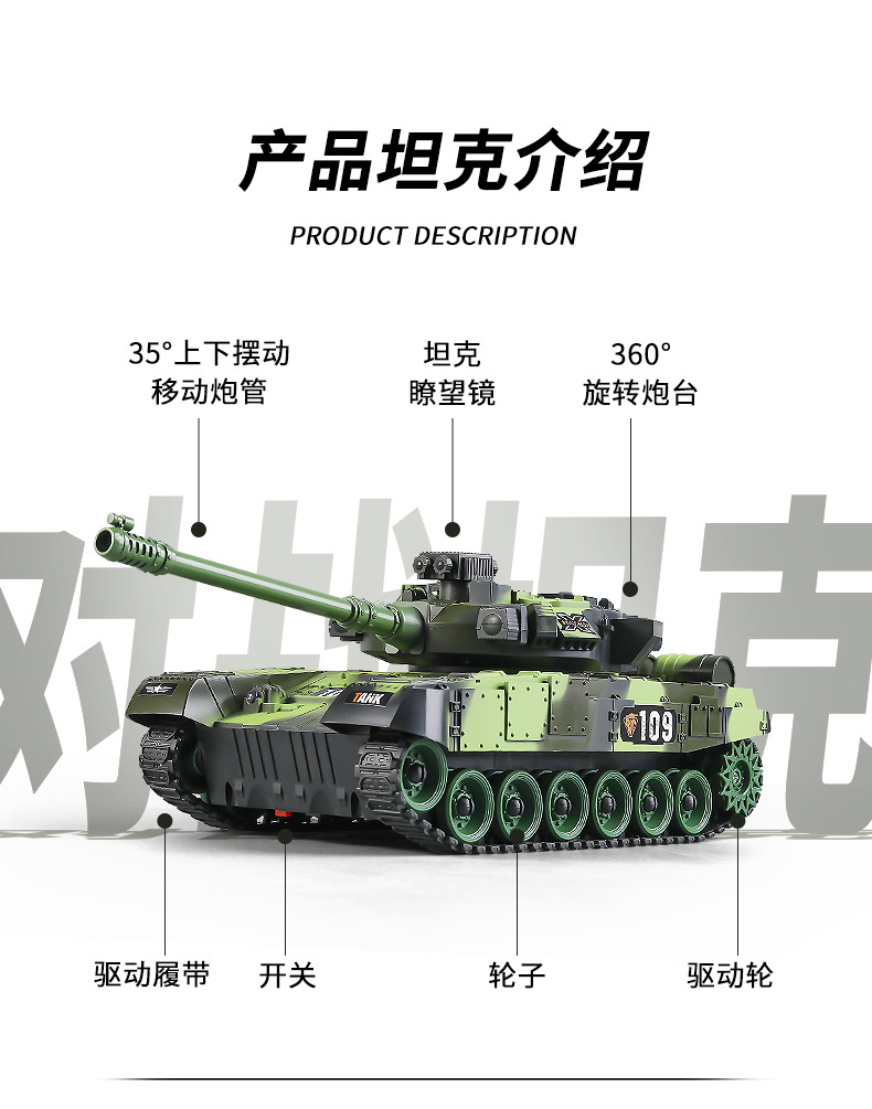 원격 제어 탱크 대포 시뮬레이션 전투 호랑이 기갑 차량 추적 모델 어린이 소년 국경 장난감