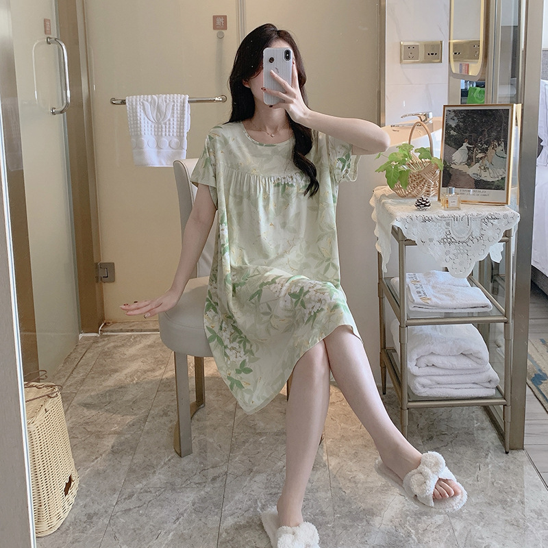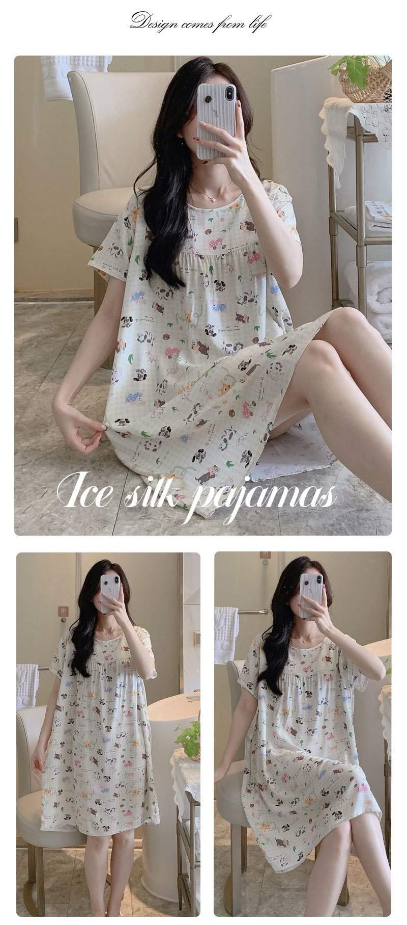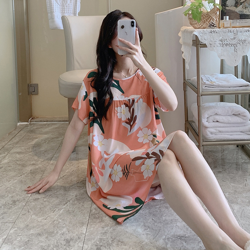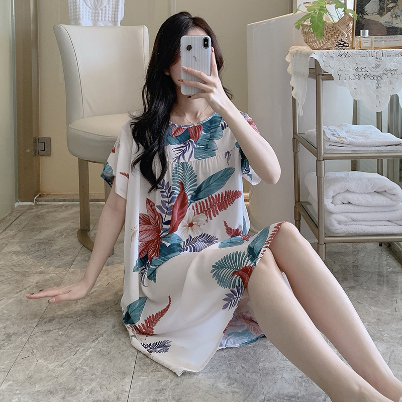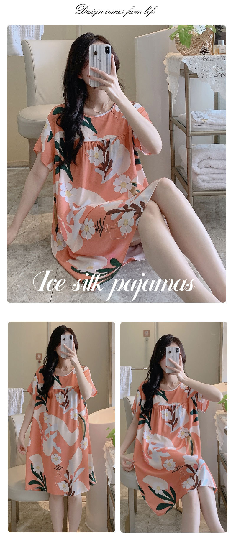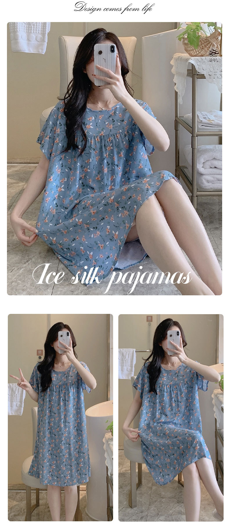 면 실크 잠옷 여성 봄 가을 여름 얇은 잠옷 한국 달콤한 소녀 온라인 축하 라이브 폭발 홈 아웃웨어 스커트스토어 가기