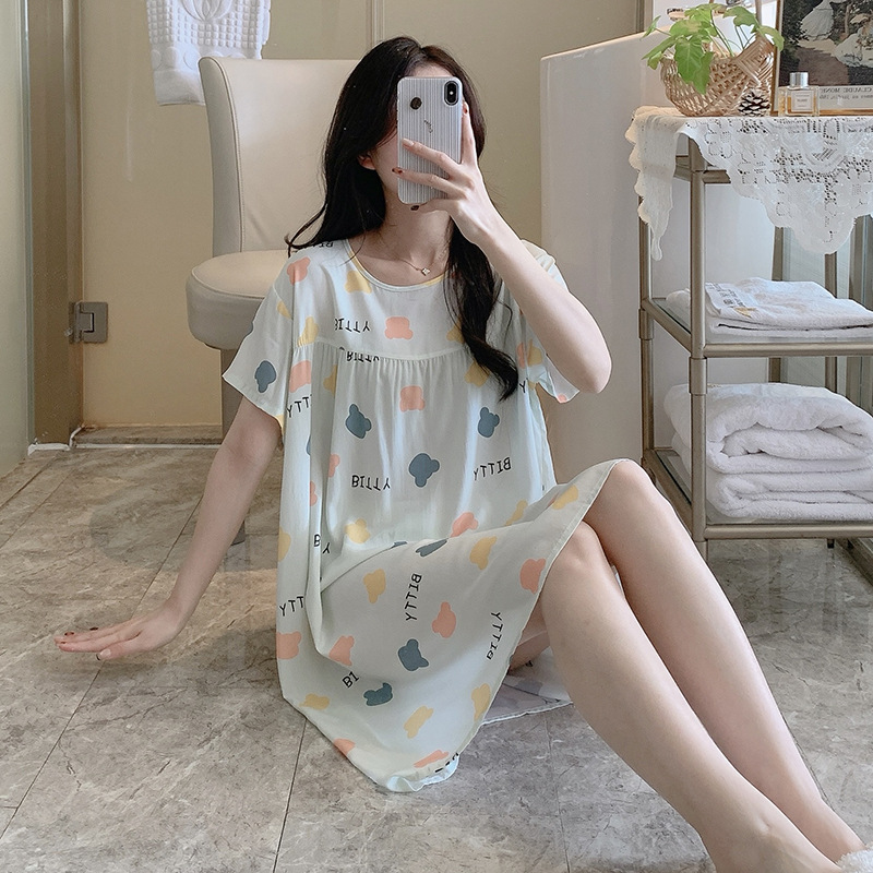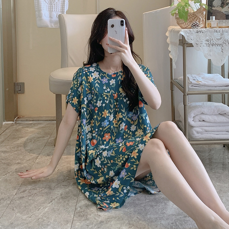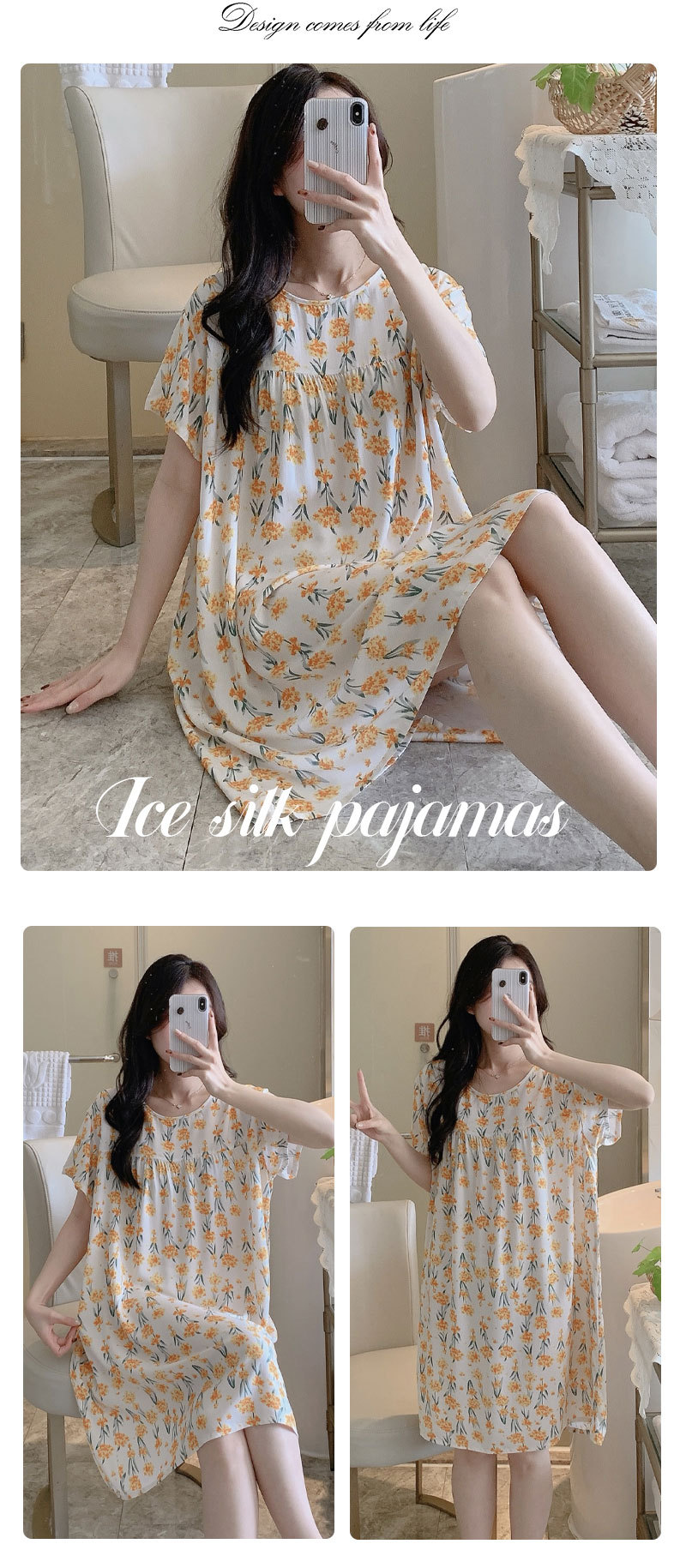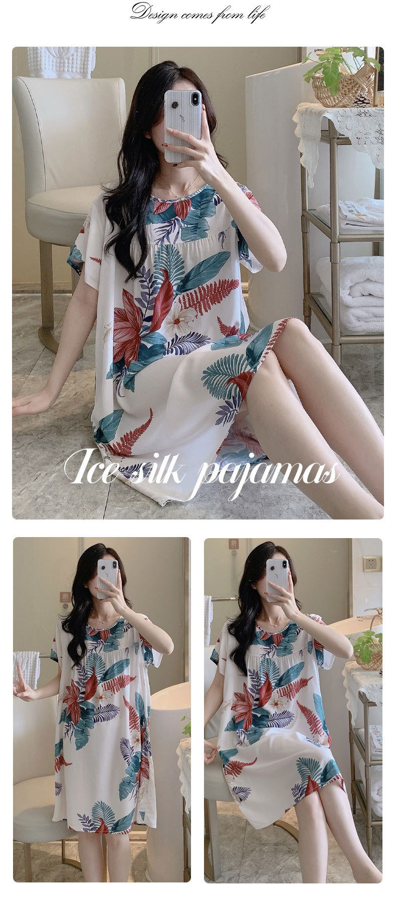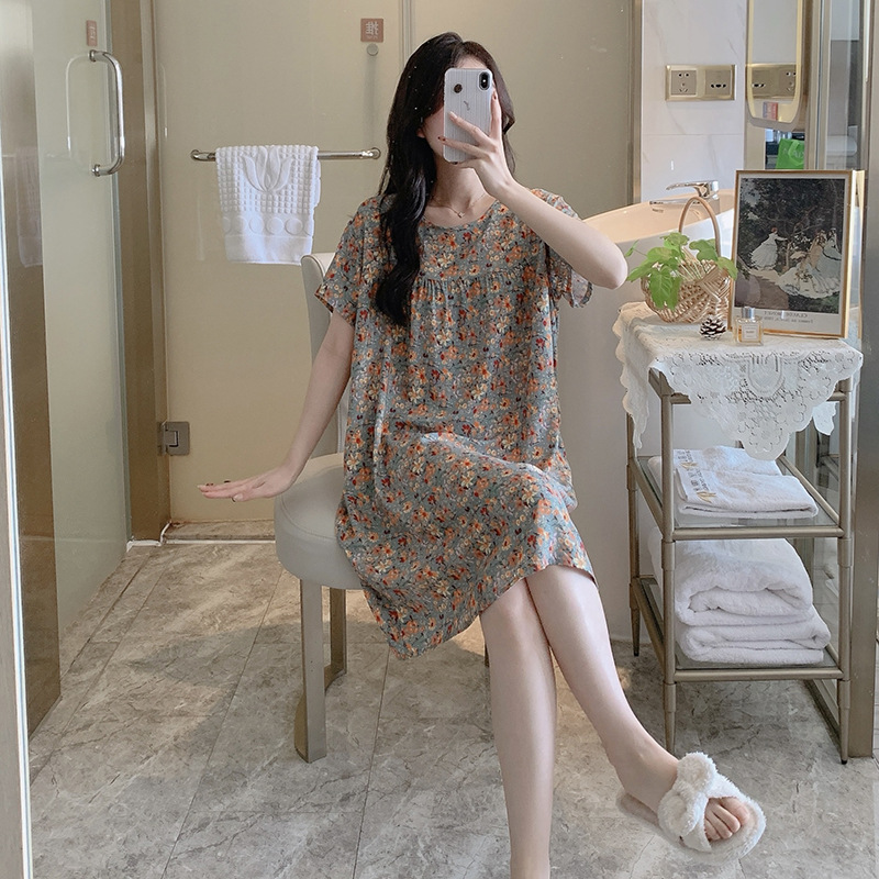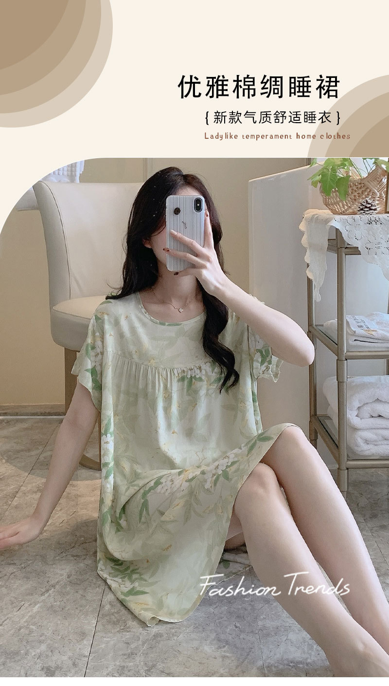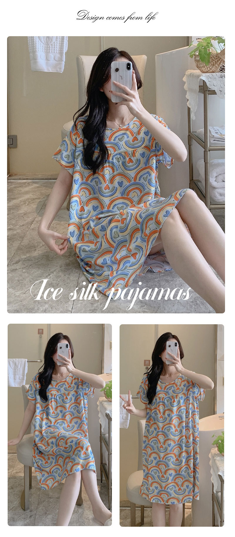 면 실크 잠옷 여성 봄 가을 여름 얇은 잠옷 한국 달콤한 소녀 온라인 축하 라이브 폭발 홈 아웃웨어 스커트스토어 가기