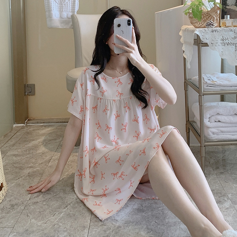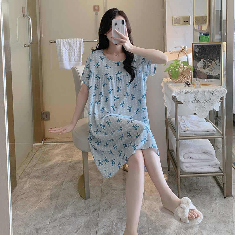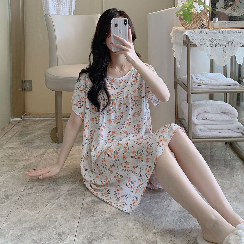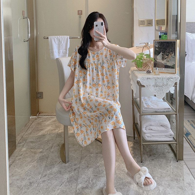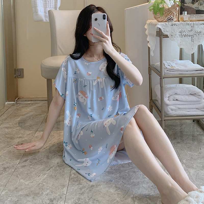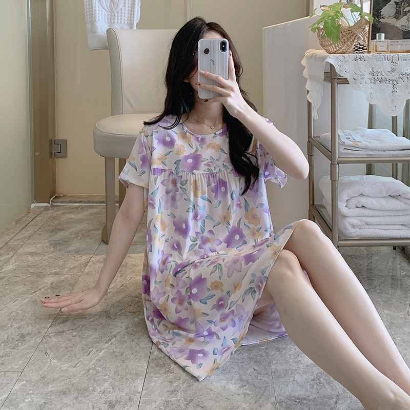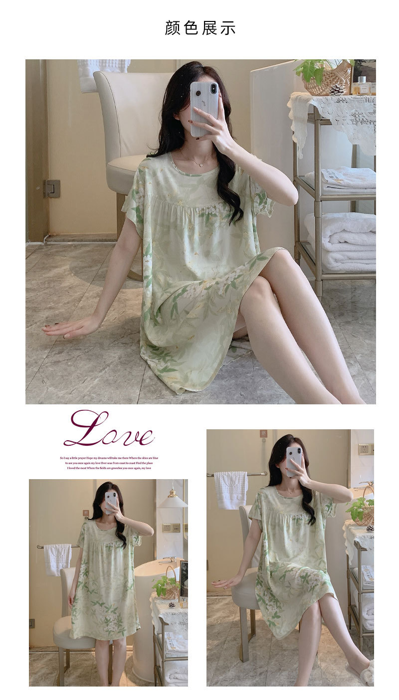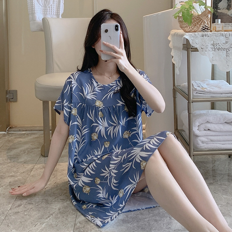 면 실크 잠옷 여성 봄 가을 여름 얇은 잠옷 한국 달콤한 소녀 온라인 축하 라이브 폭발 홈 아웃웨어 스커트스토어 가기