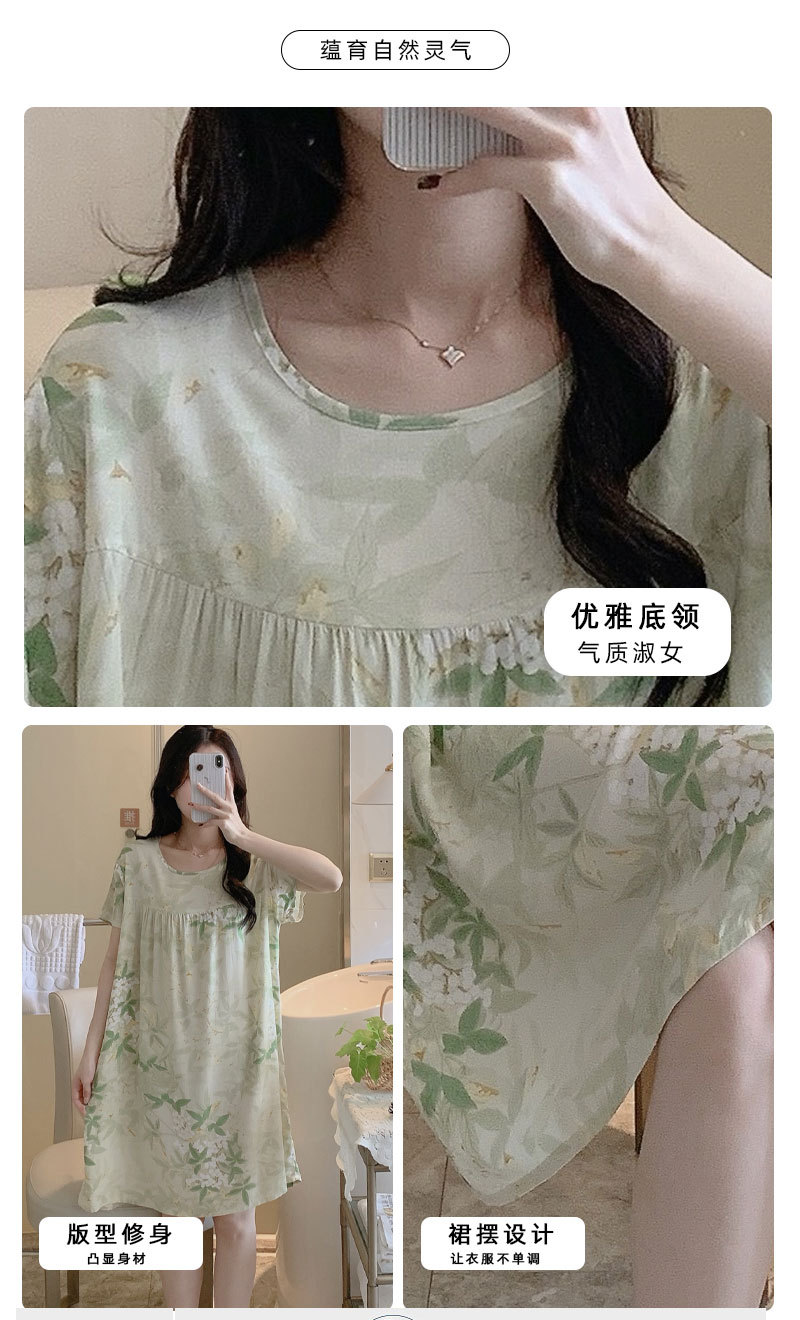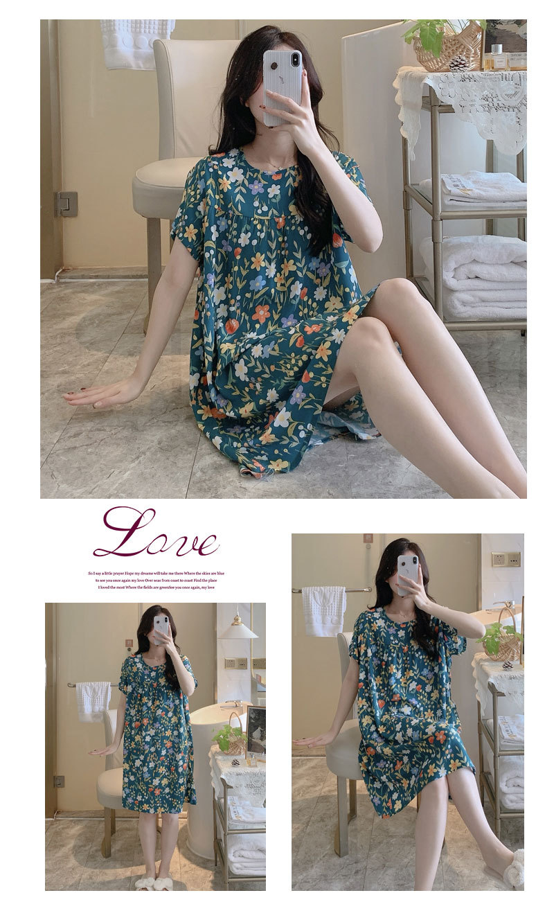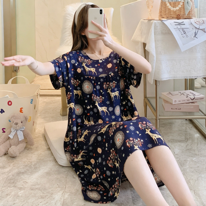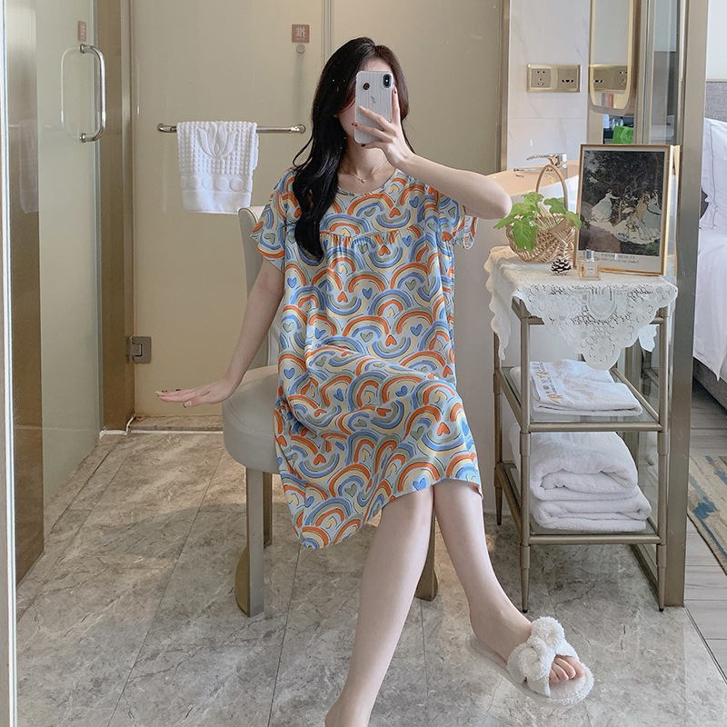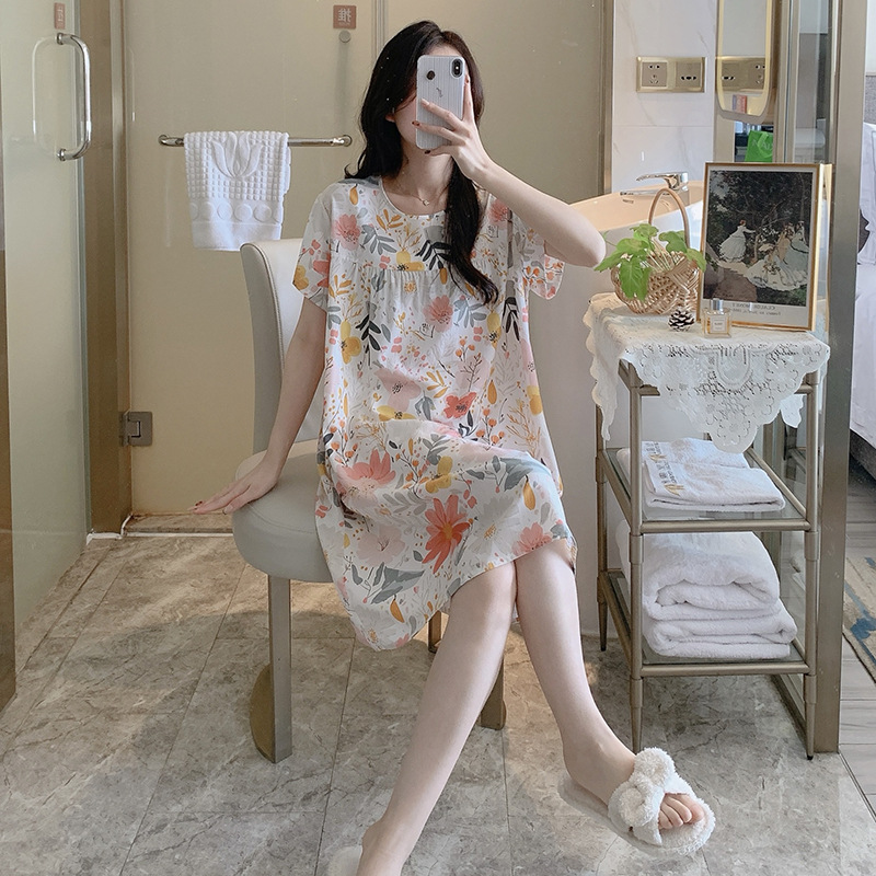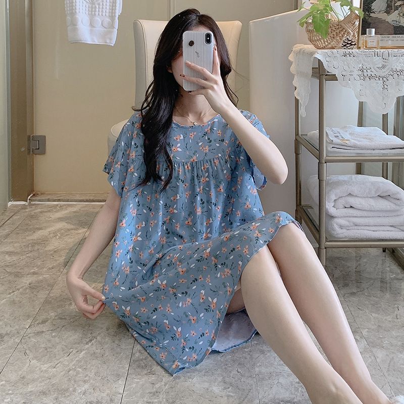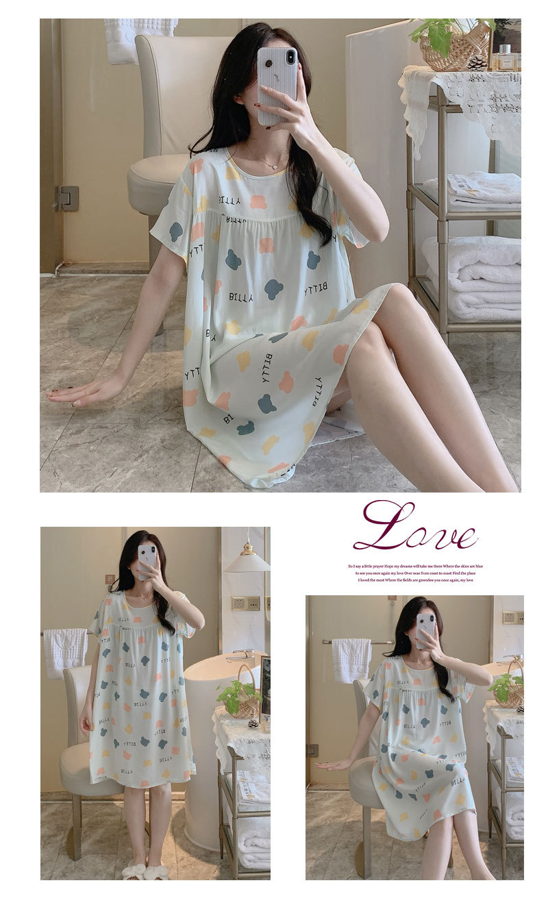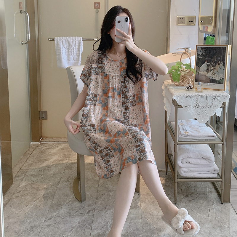 면 실크 잠옷 여성 봄 가을 여름 얇은 잠옷 한국 달콤한 소녀 온라인 축하 라이브 폭발 홈 아웃웨어 스커트스토어 가기
