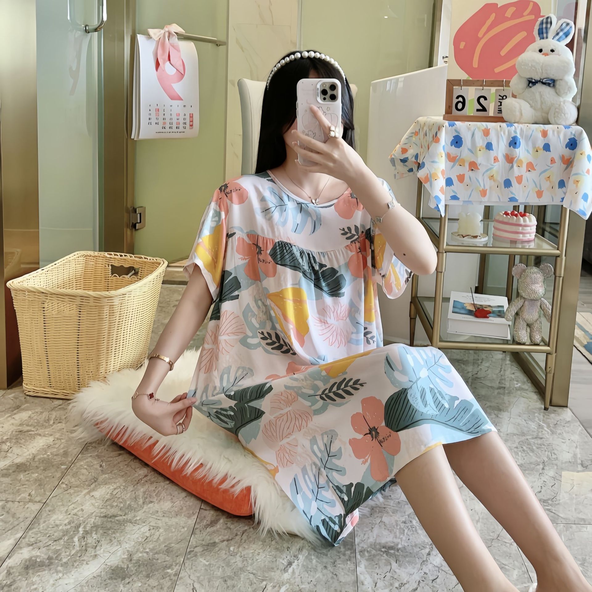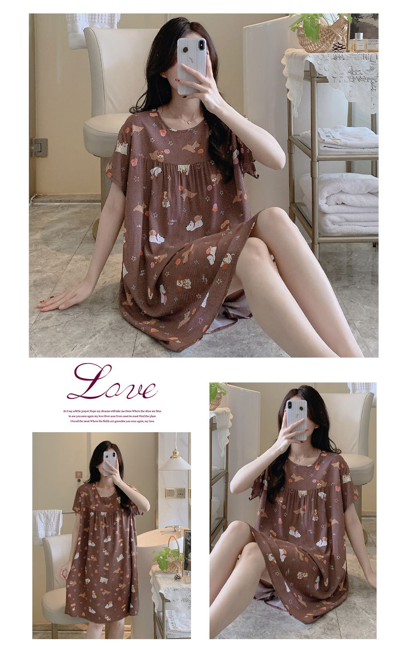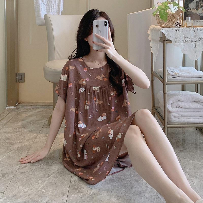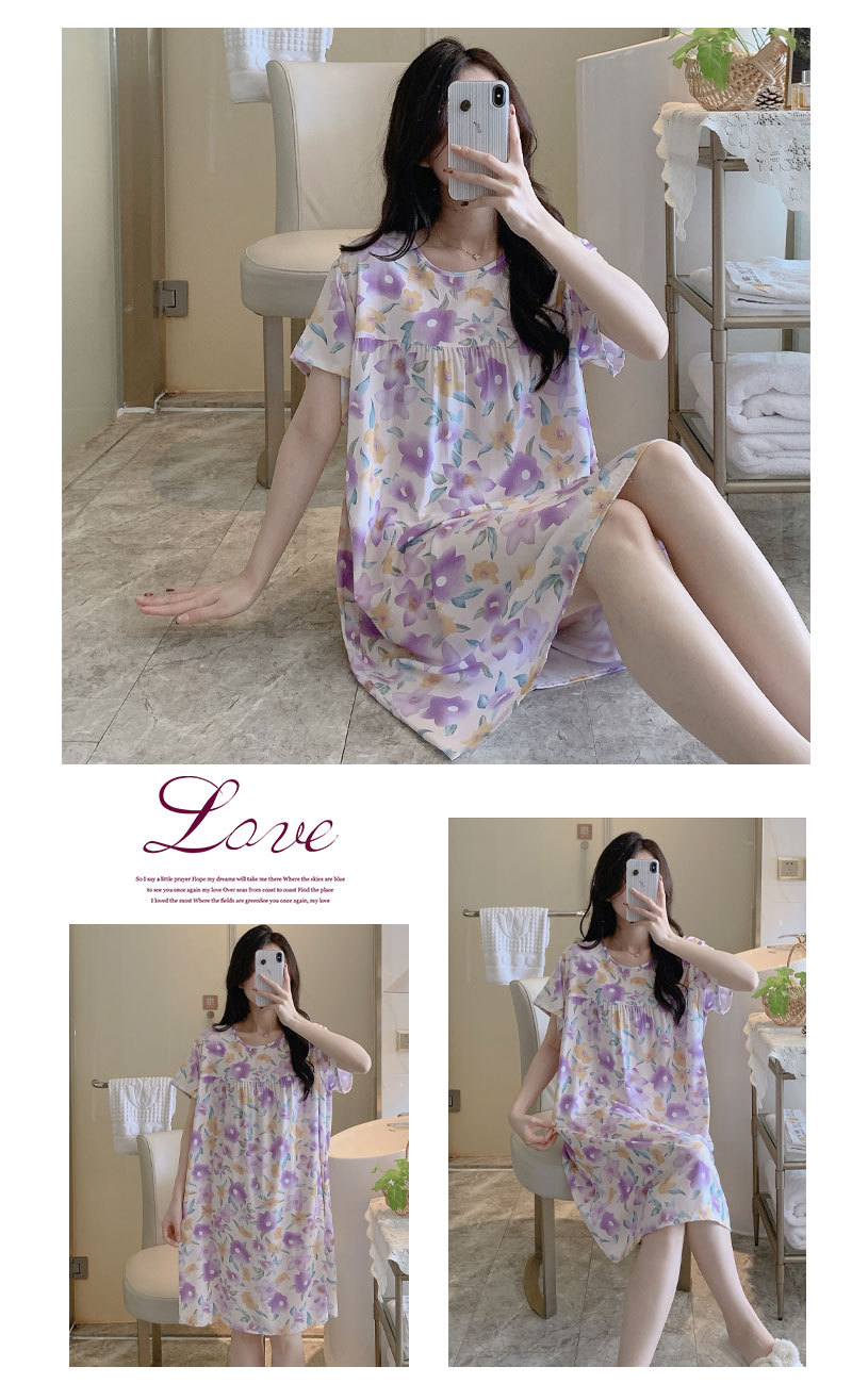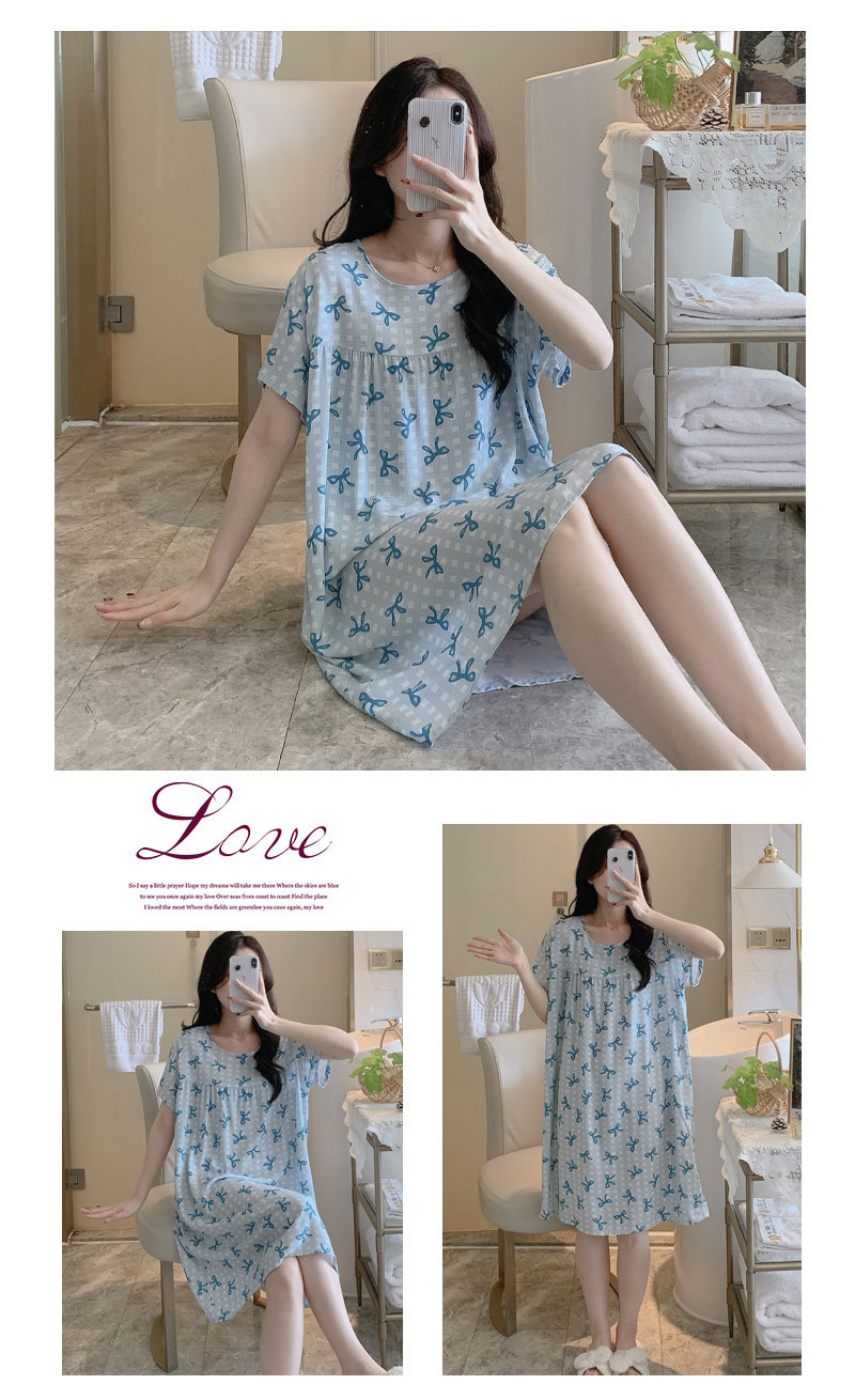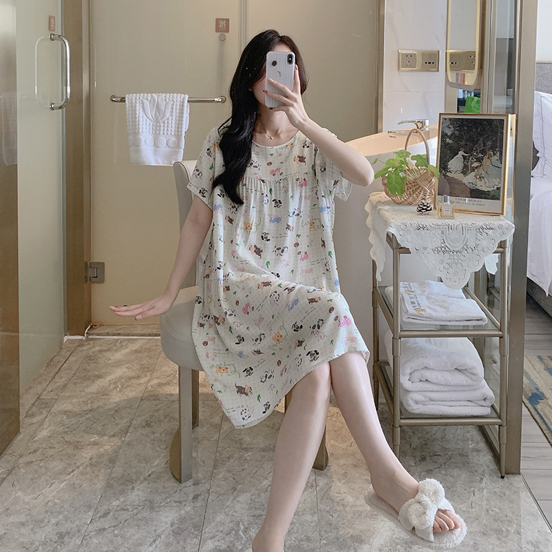 면 실크 잠옷 여성 봄 가을 여름 얇은 잠옷 한국 달콤한 소녀 온라인 축하 라이브 폭발 홈 아웃웨어 스커트스토어 가기