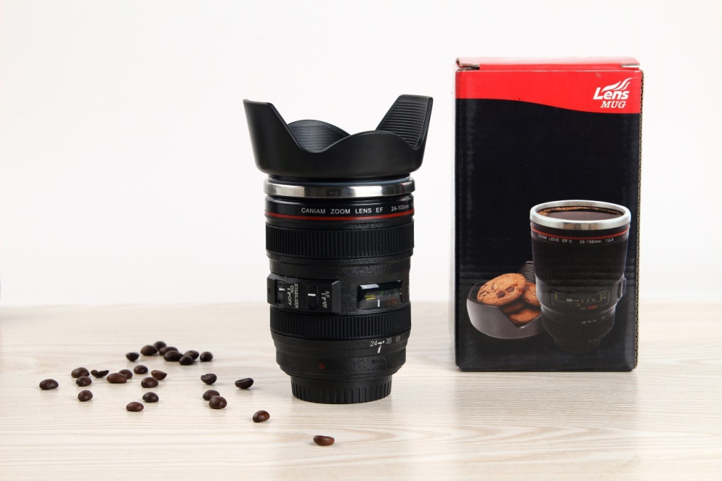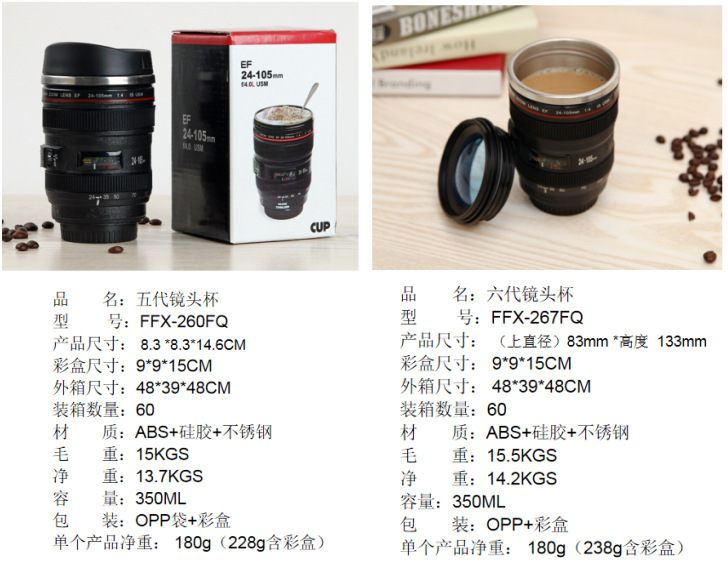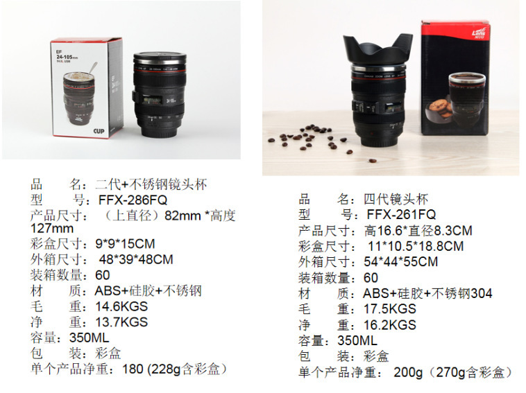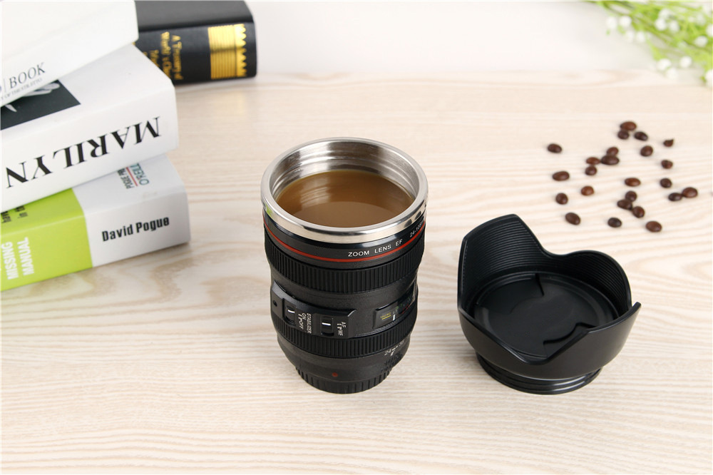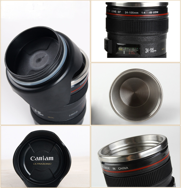 공장 도매 창조적 인 물 컵 SLR 4 세대 스테인레스 스틸 렌즈 컵 비즈니스 선물 인쇄 로고 스톨 용품
