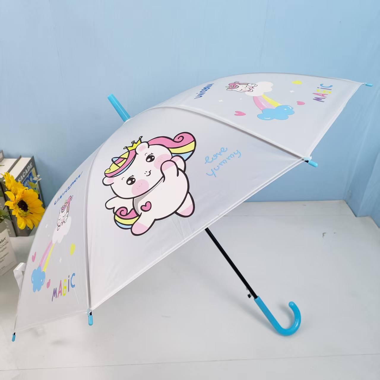 공장 도매 신선한 서리 투명 우산 어린이 만화 학생 우산 강화 긴 손잡이 자동 투명 우산 확대