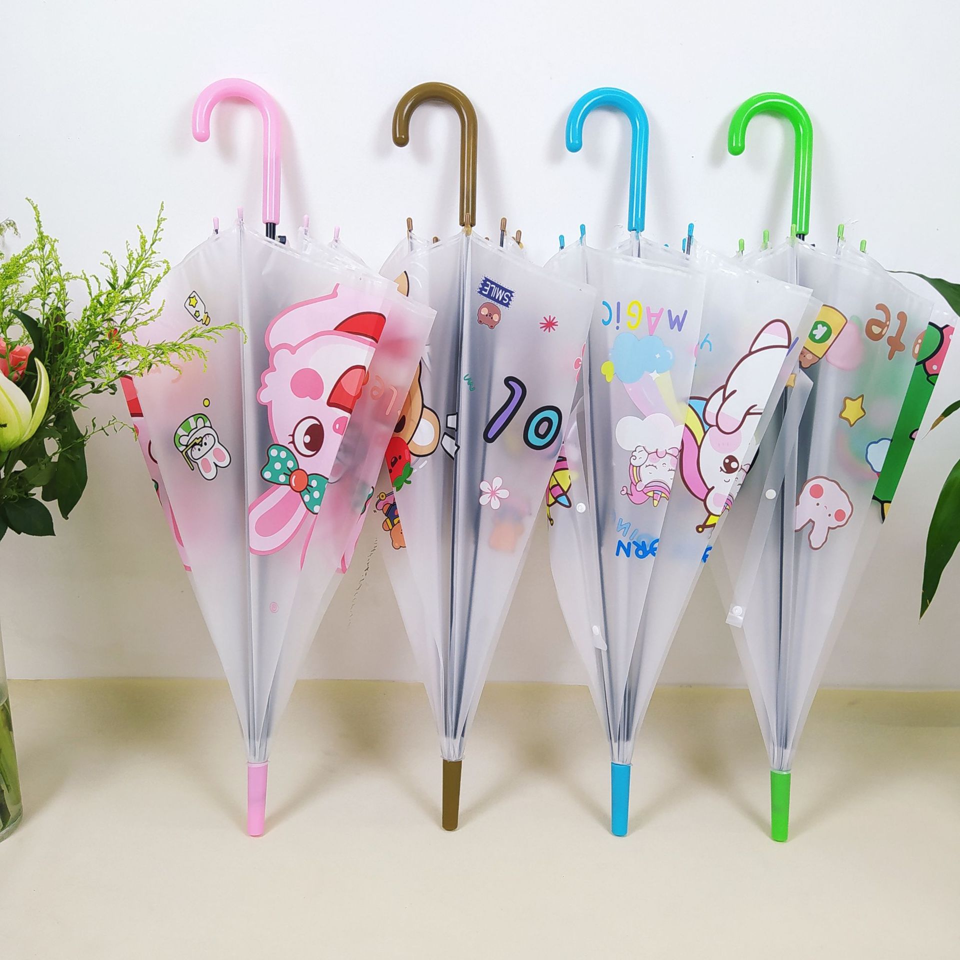 공장 도매 신선한 서리 투명 우산 어린이 만화 학생 우산 강화 긴 손잡이 자동 투명 우산 확대스토어 가기