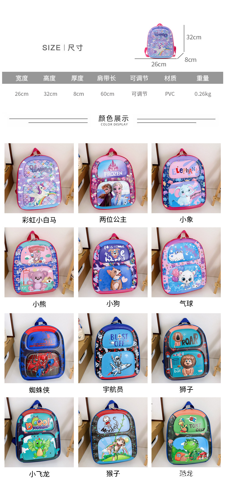 2023 새로운 만화 어린이 소년 소녀 배낭 배낭 초등학교 학생 달걀 껍질 유치원 아기 사자 책가방스토어 가기