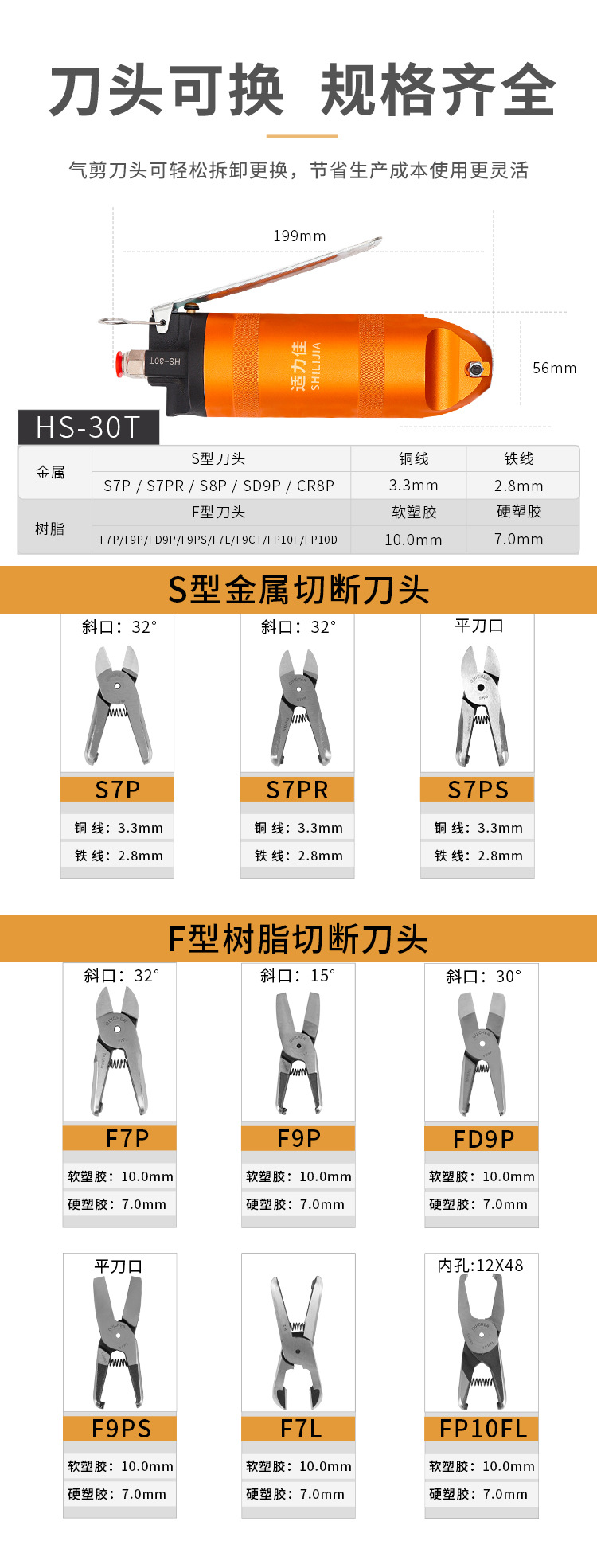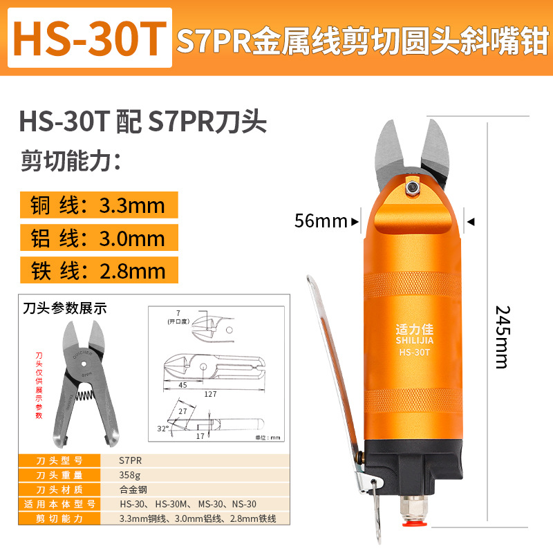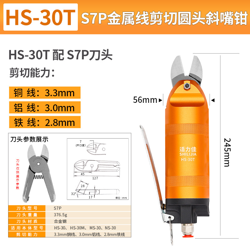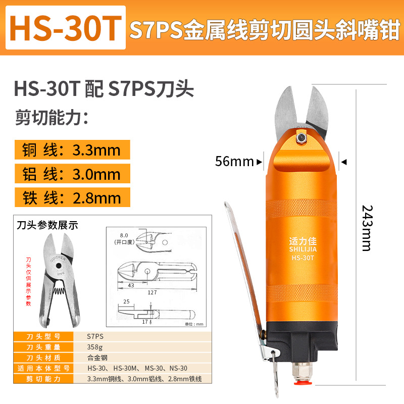 Shilijia 공압 가위 산업 등급 HS-30 플라스틱 물 출구 구리 알루미늄 철 와이어 S7PFD9P 증기 퀵 테이크 커터 헤드