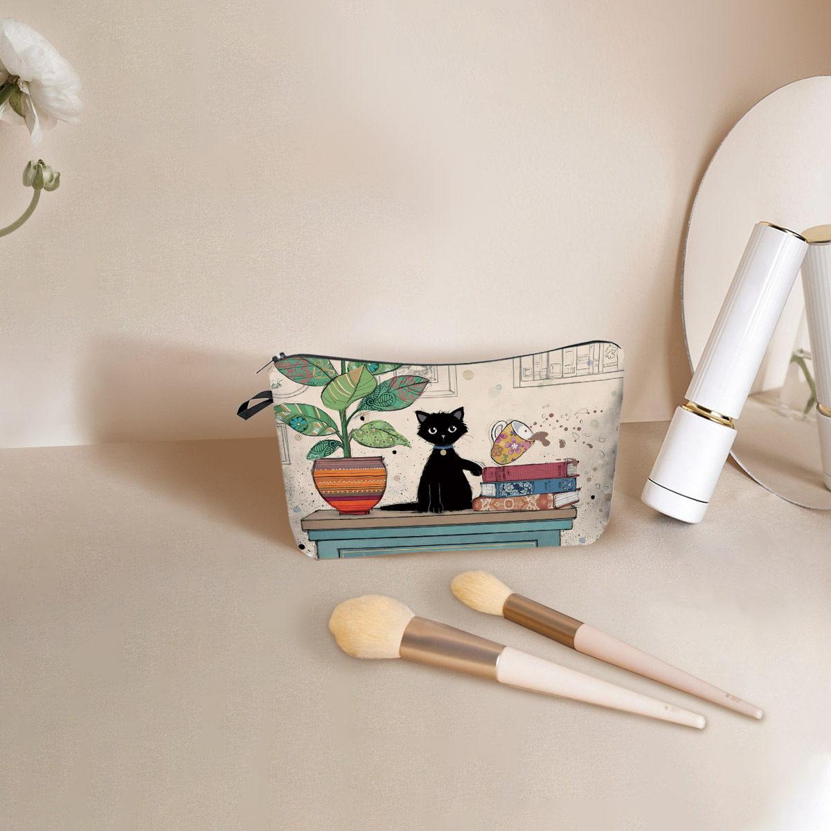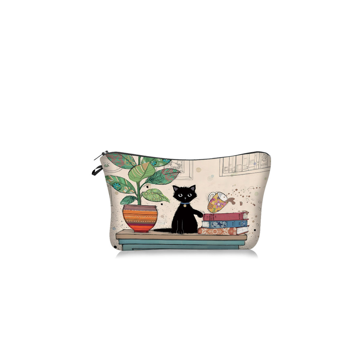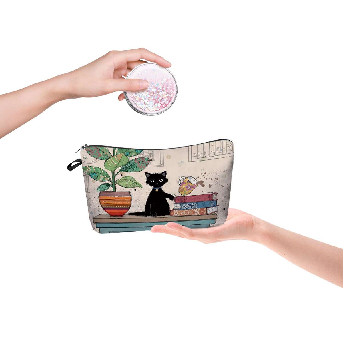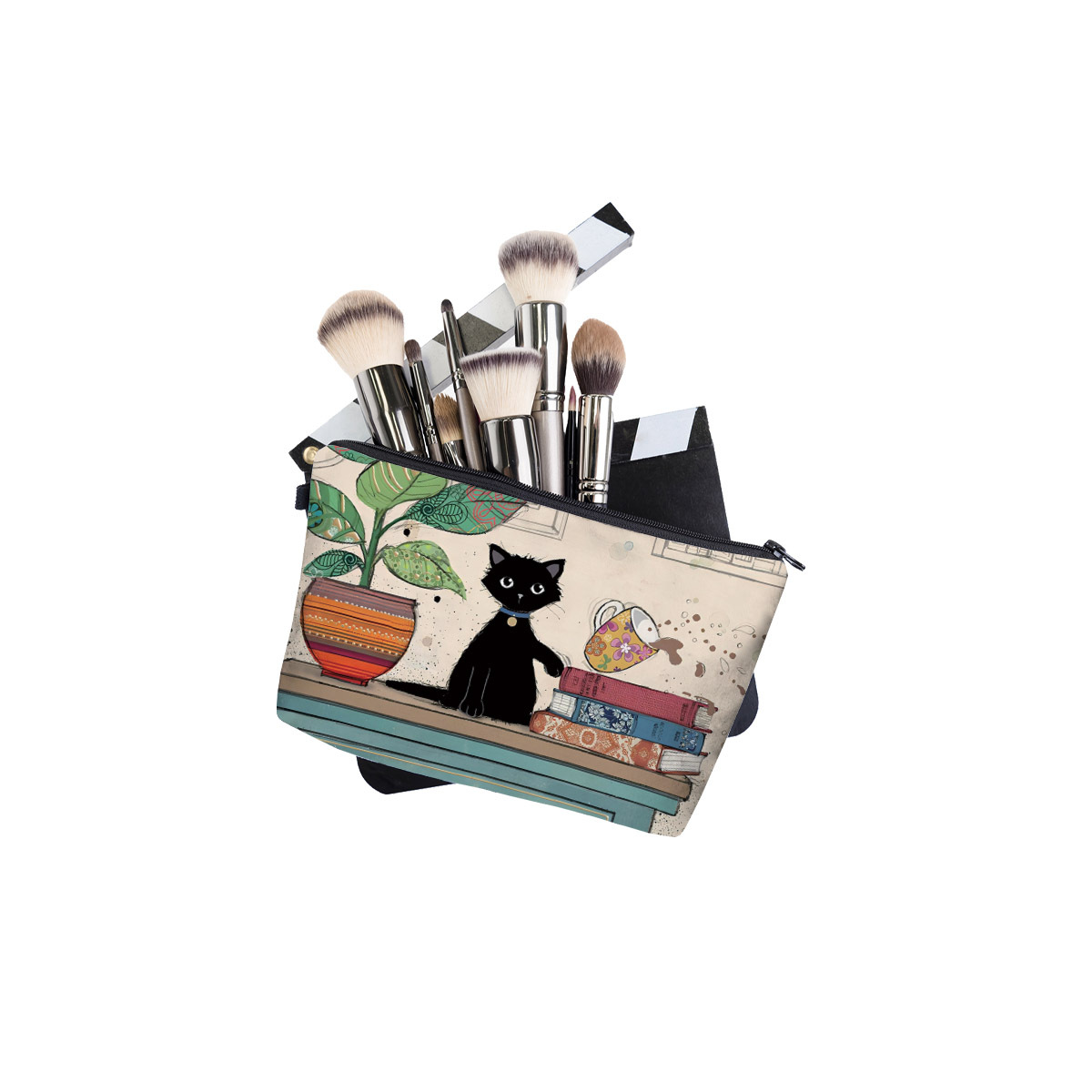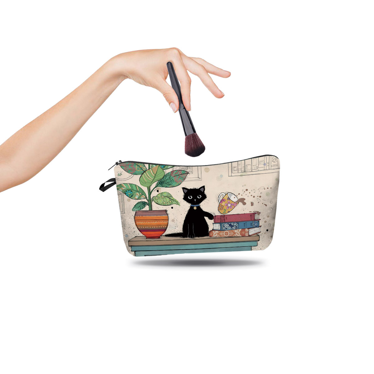 국경 새로운 검은 고양이 만화 인쇄 화장품 가방 손 저장 게으른 휴대용 여행 가방 세탁 가방