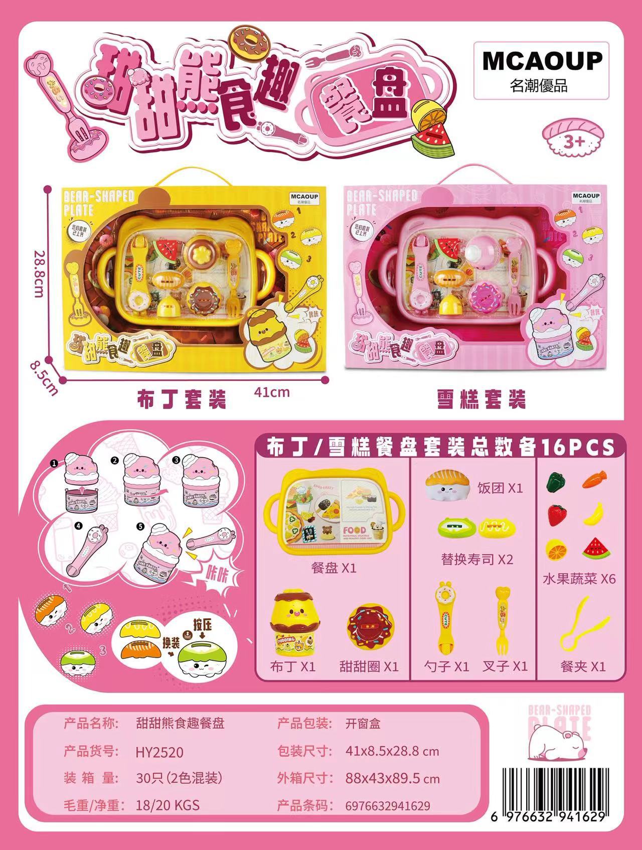 • 달콤한 곰 식사 재미있는 접시 HY2520