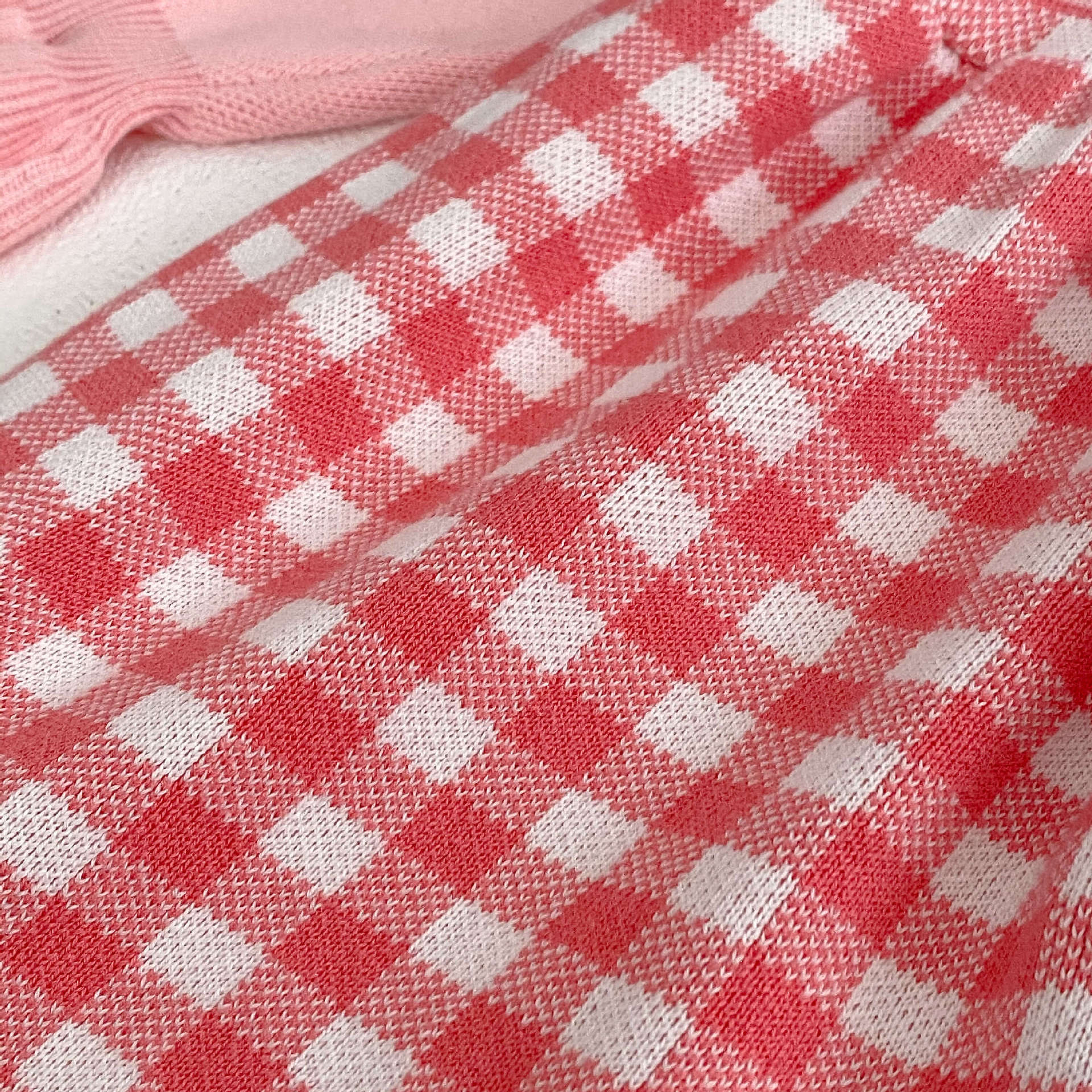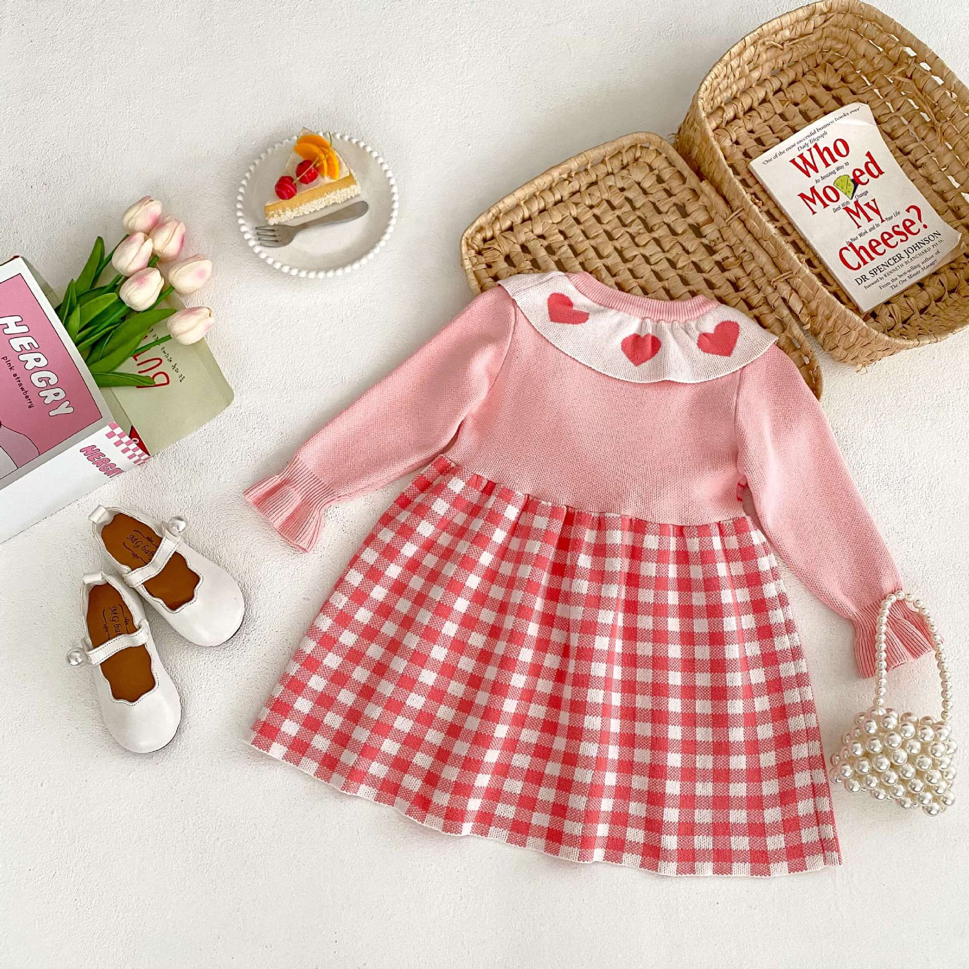 달콤한 멜로디 핑크 스웨터 원피스 소녀 가을과 겨울 원피스 어린 소녀 만화 긴 소매 체크 무늬 니트 스커트