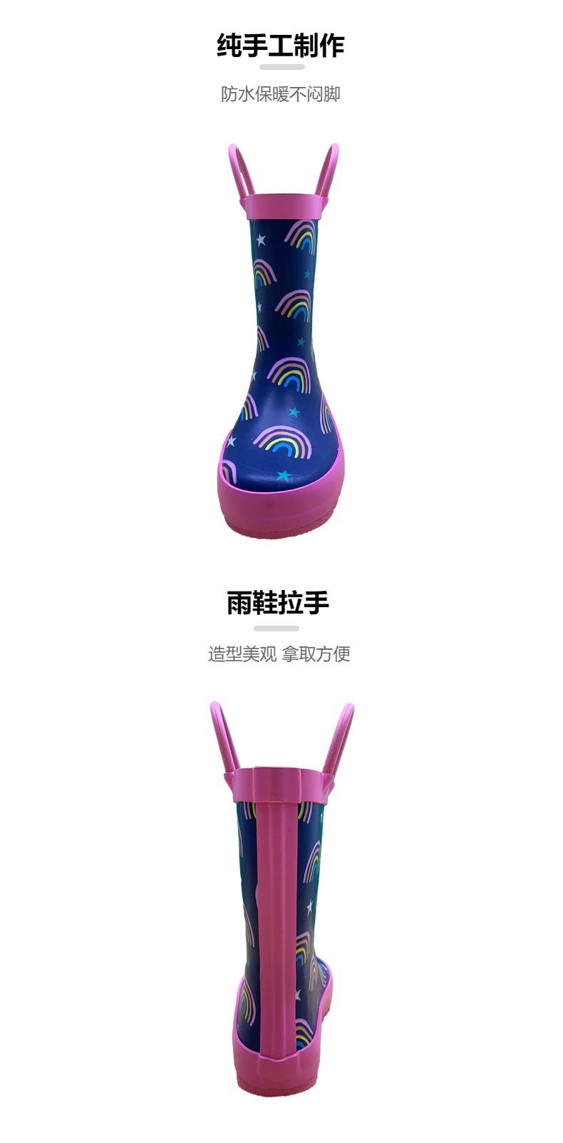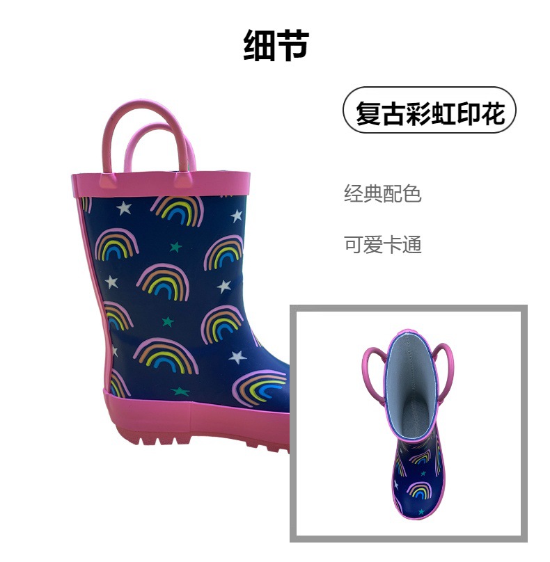 어린이 장화, 아기 장화, 만화 어린이 학생 비옷, 야외 방수, 미끄럼 방지, 세련된 남성 및 여성 손잡이 워터 슈즈