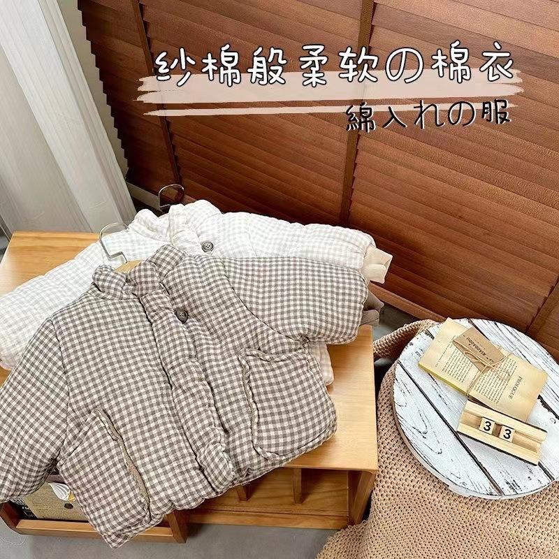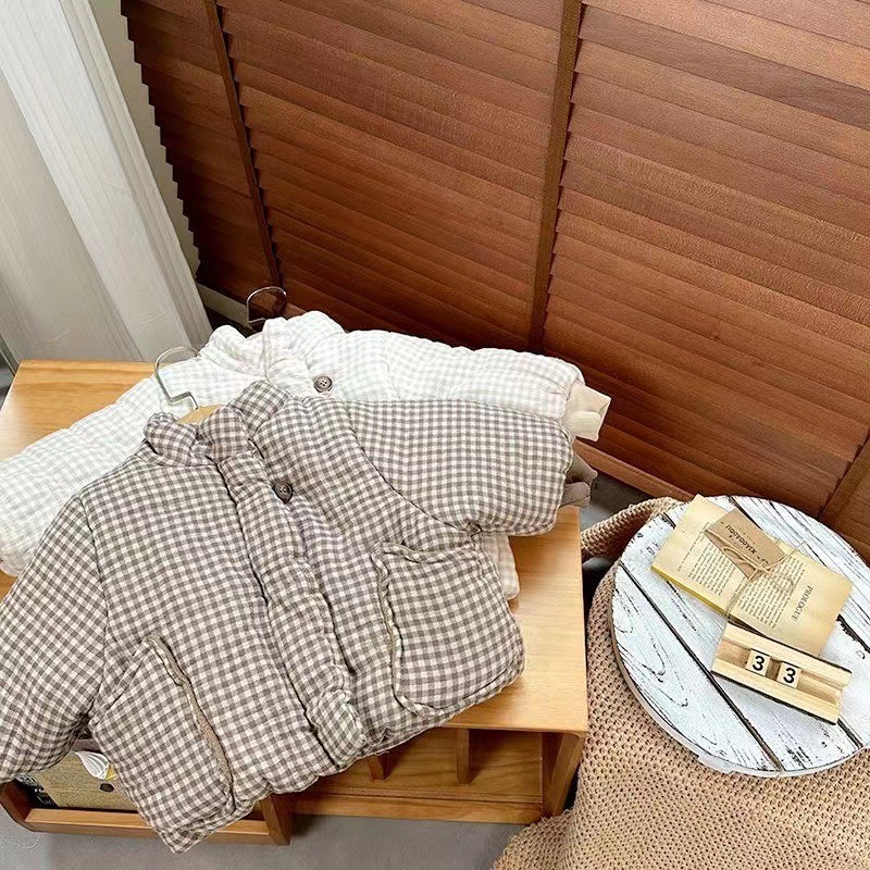 아동복 아동용 고급 체크 무늬 면 패딩 코트스토어 가기