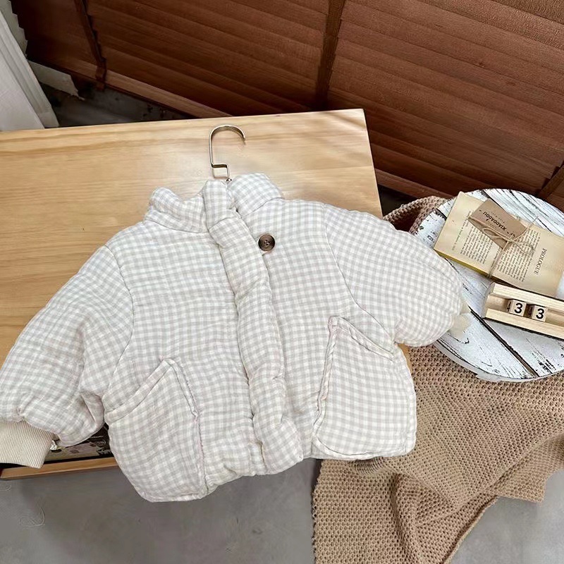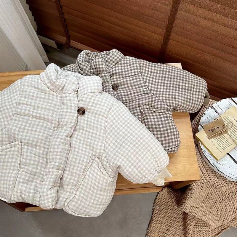 아동복 아동용 고급 체크 무늬 면 패딩 코트