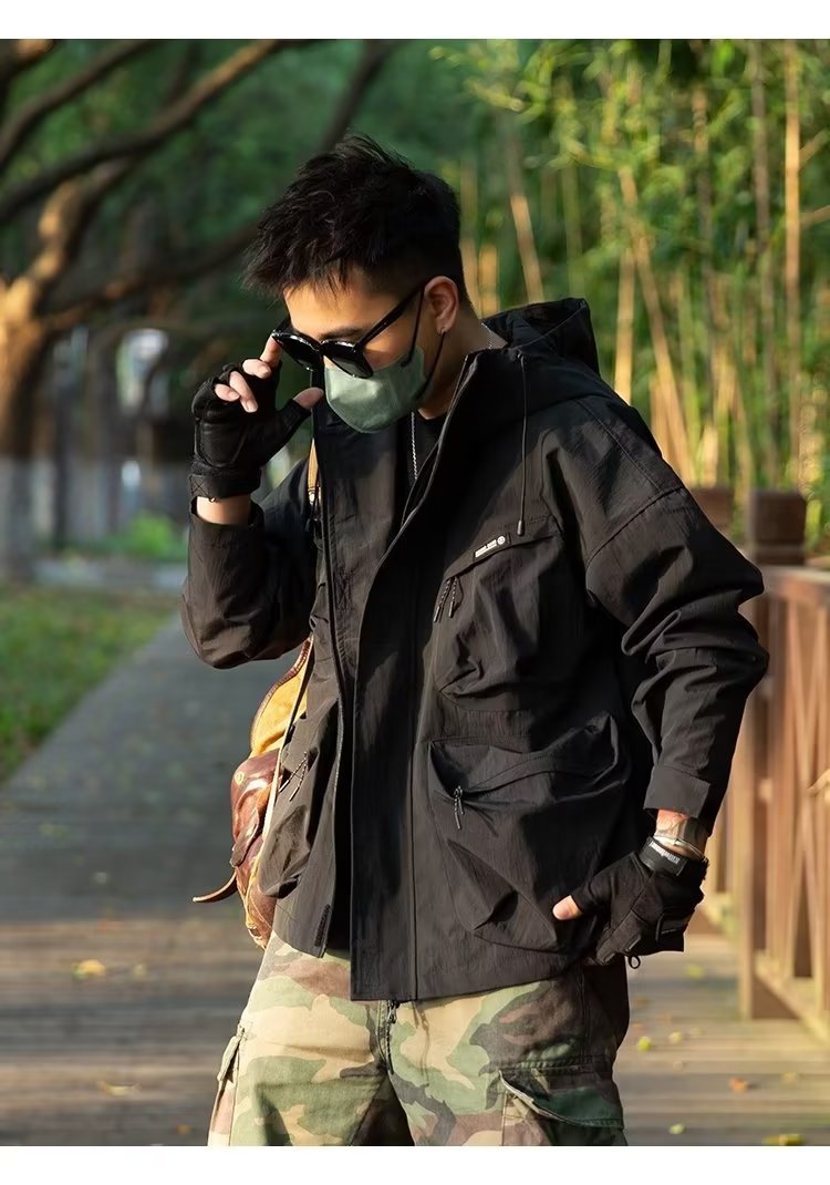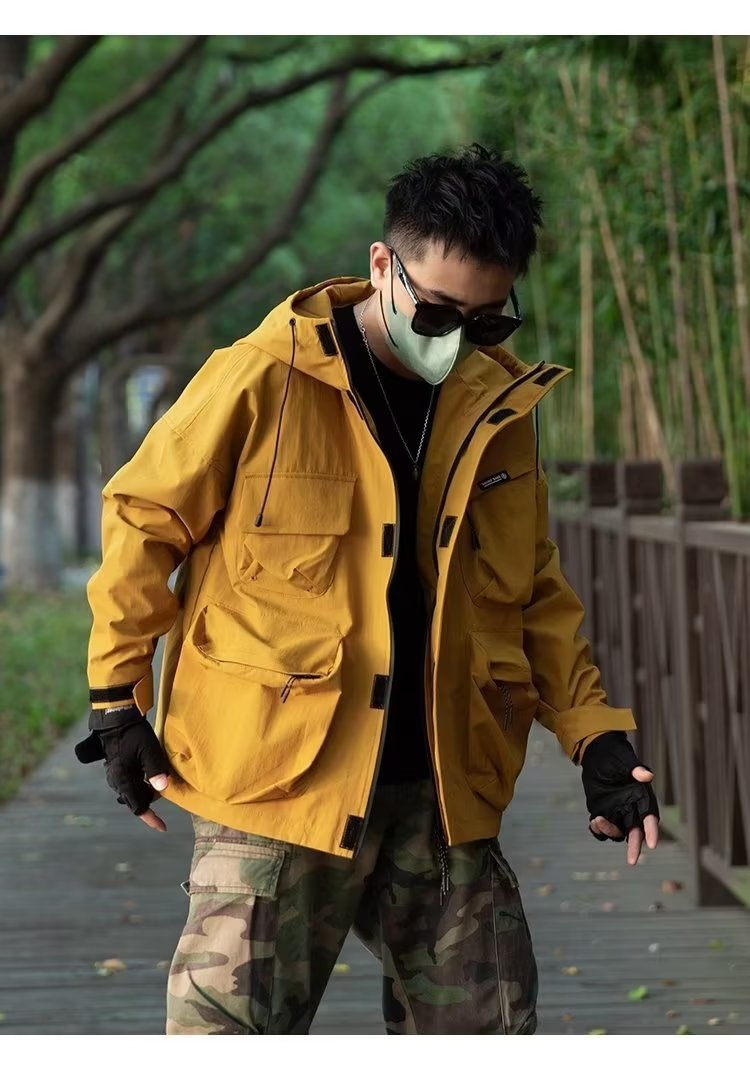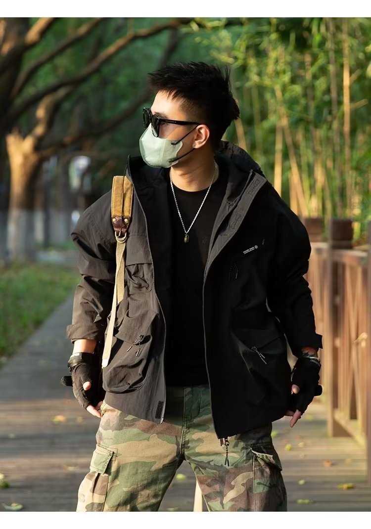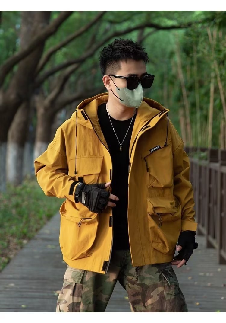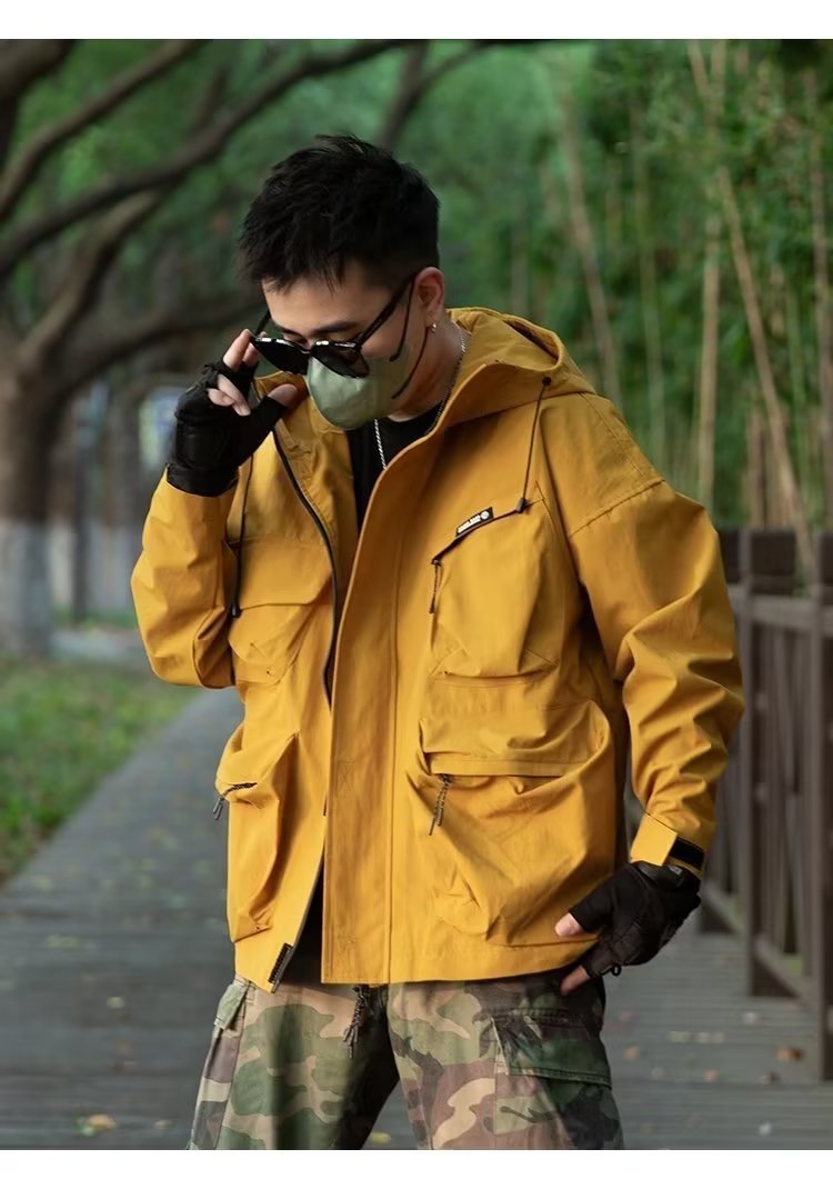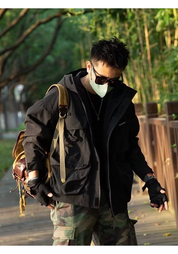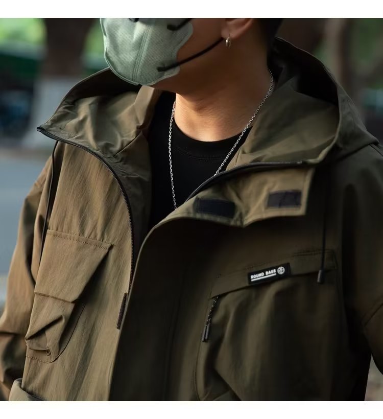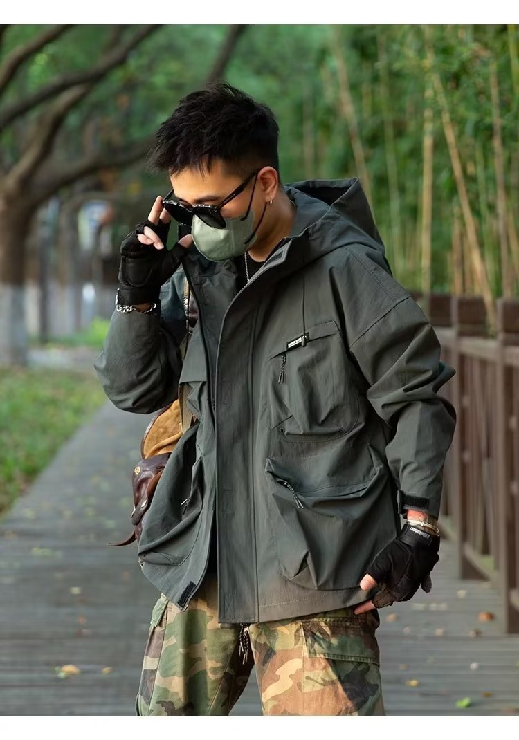 멀티 포켓 후드 재킷 재킷 빈티지 파일럿 작업복 Ruan Handsome 남성 야외 등산 방수 패션