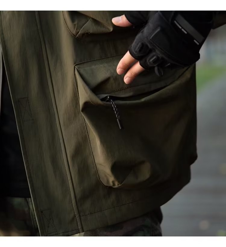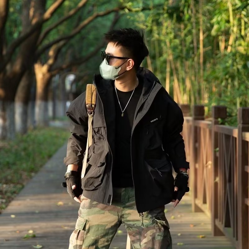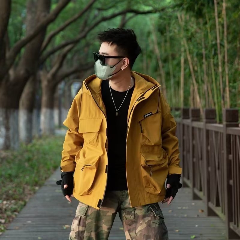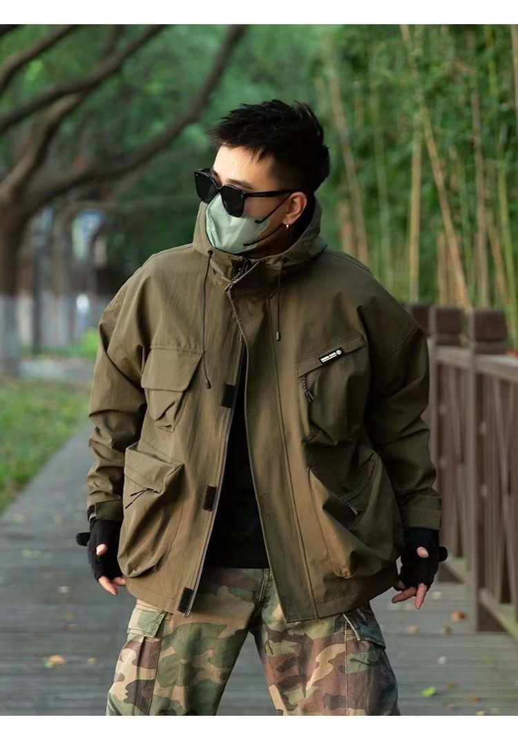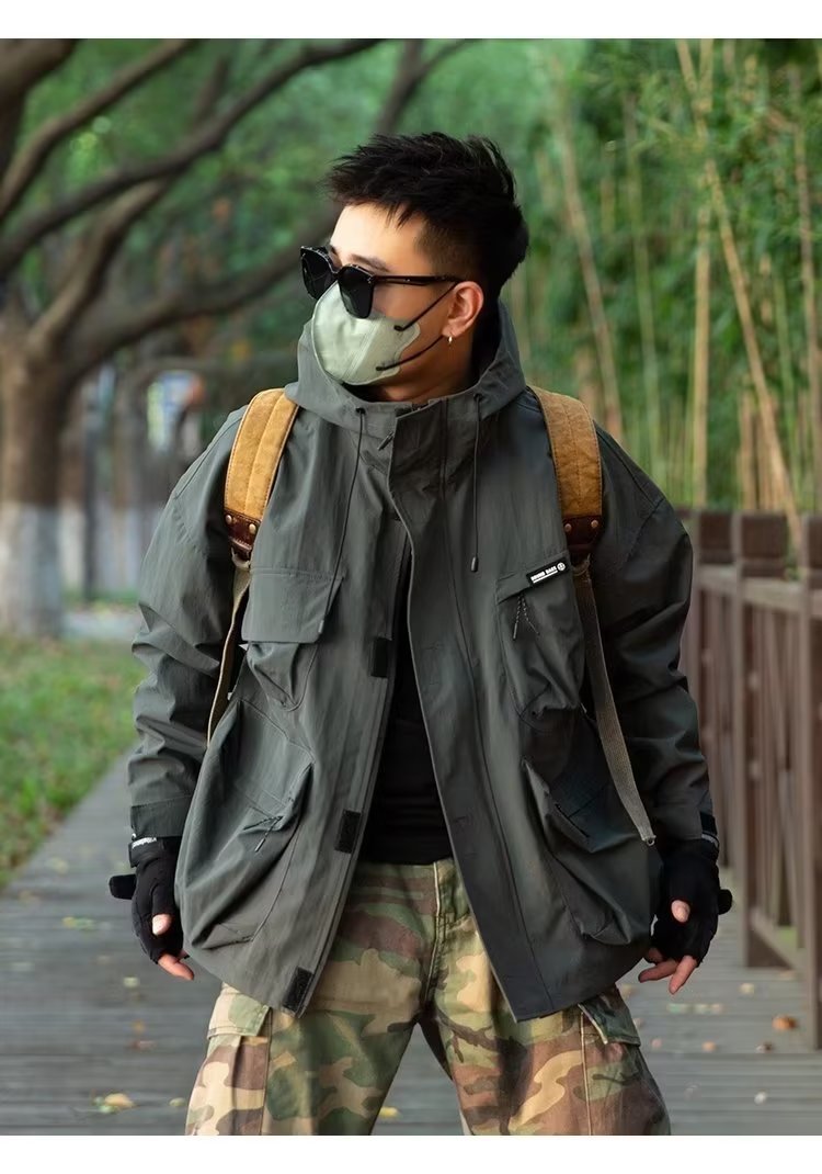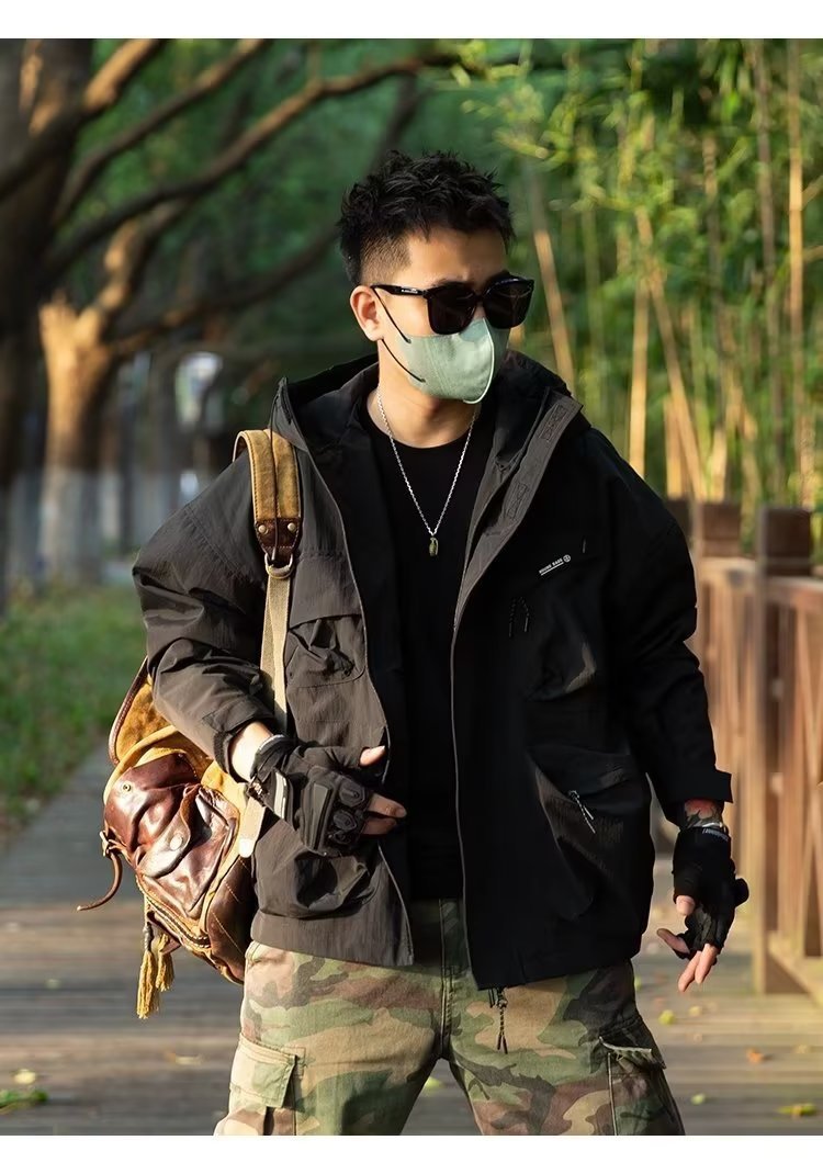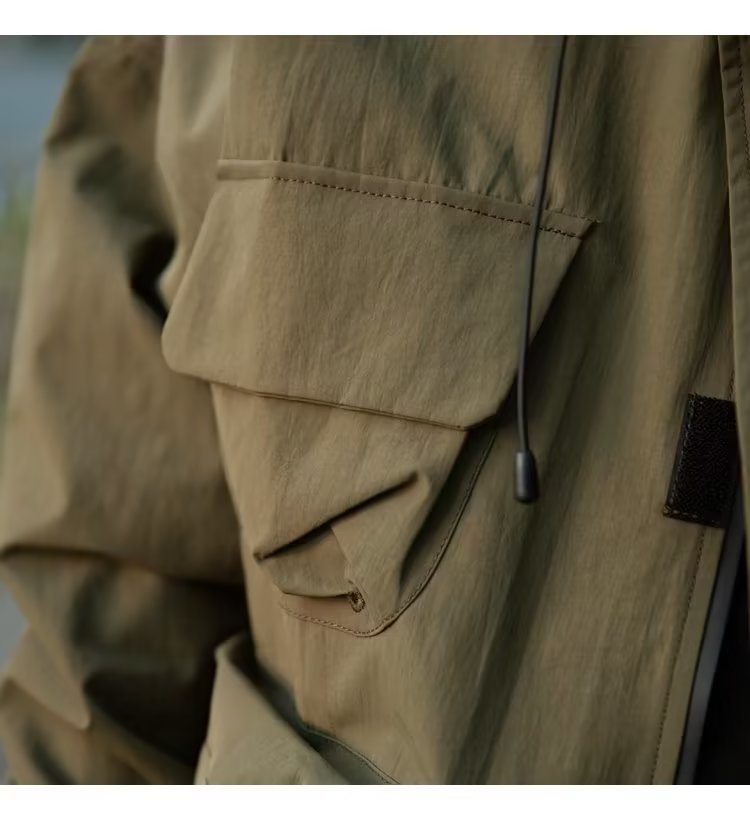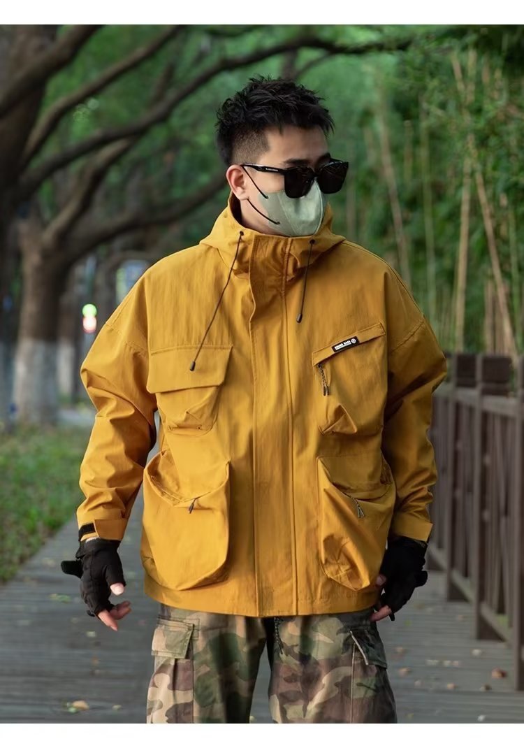 멀티 포켓 후드 재킷 재킷 빈티지 파일럿 작업복 Ruan Handsome 남성 야외 등산 방수 패션