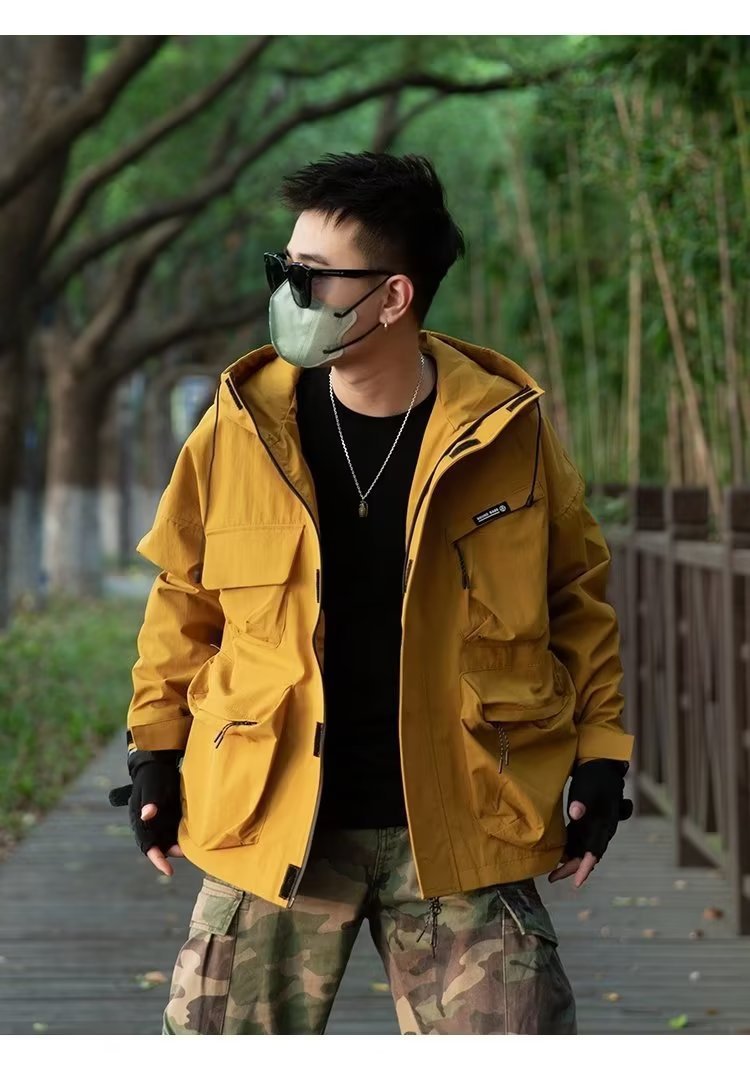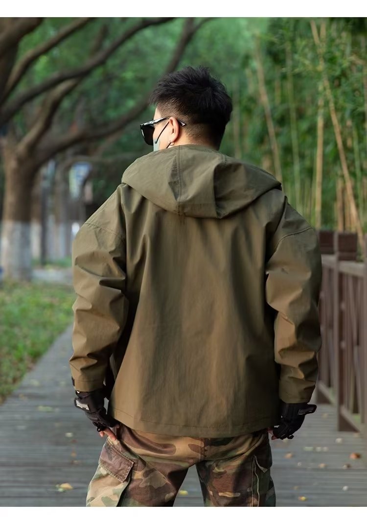 멀티 포켓 후드 재킷 재킷 빈티지 파일럿 작업복 Ruan Handsome 남성 야외 등산 방수 패션스토어 가기