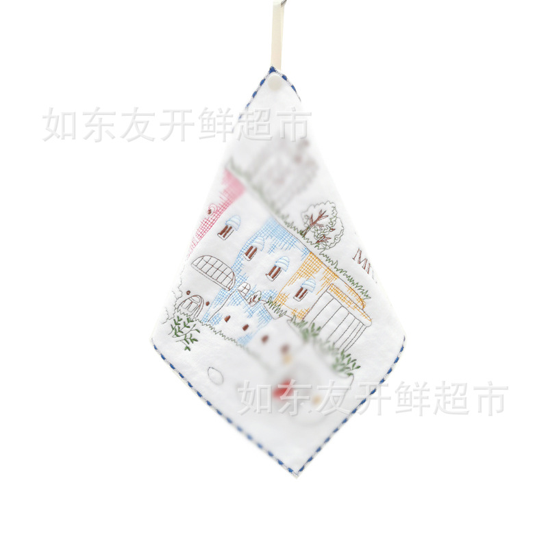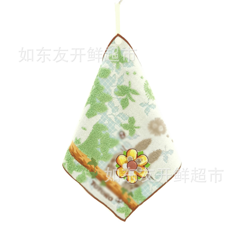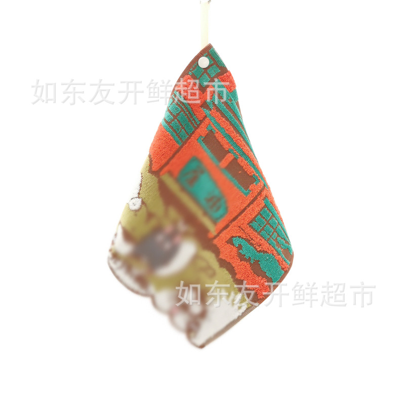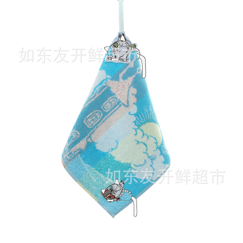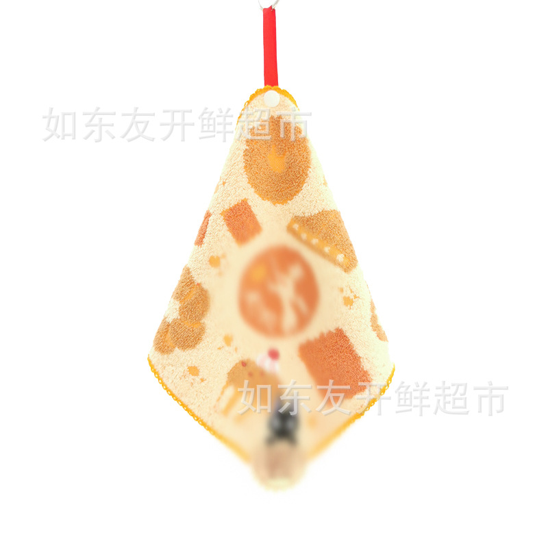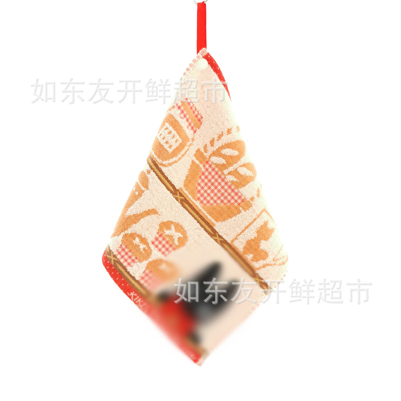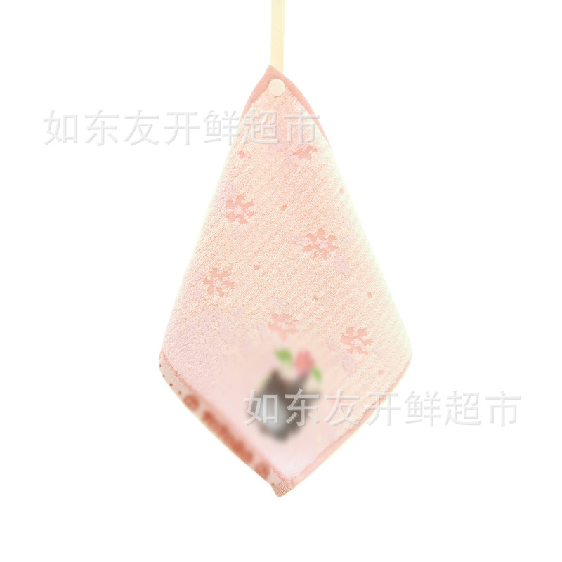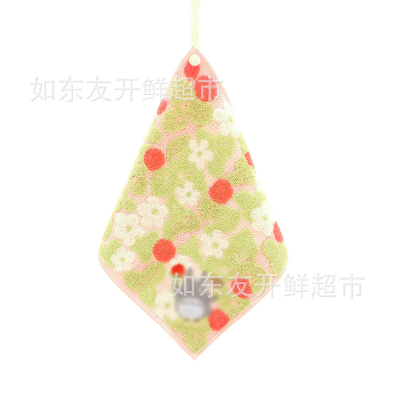 出口日本外贸日单毛巾批发棉刺绣卡通挂式挂绳擦手巾小方巾手帕