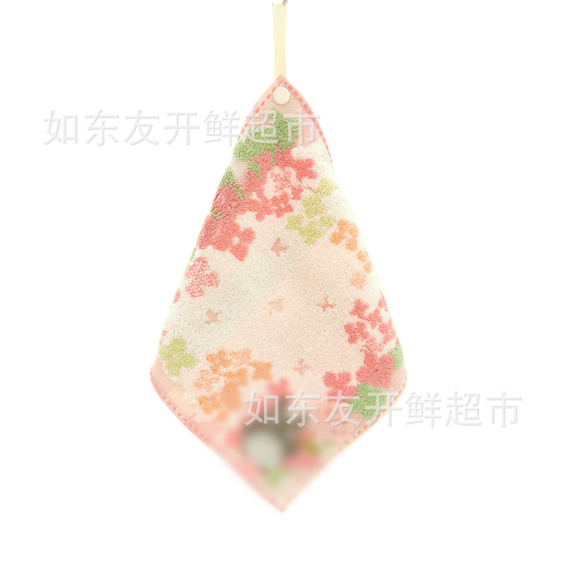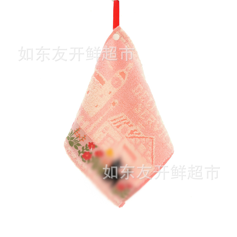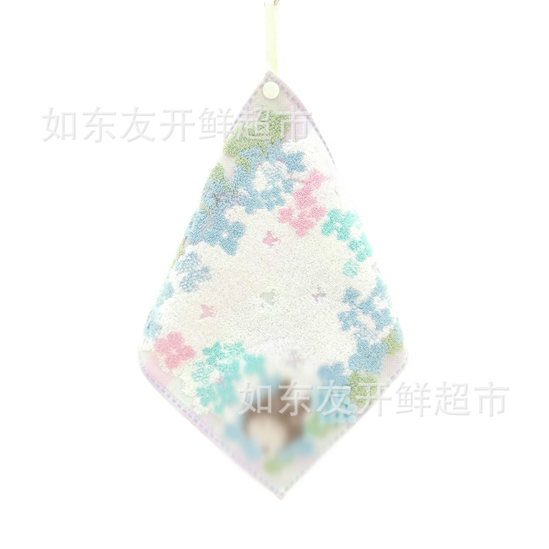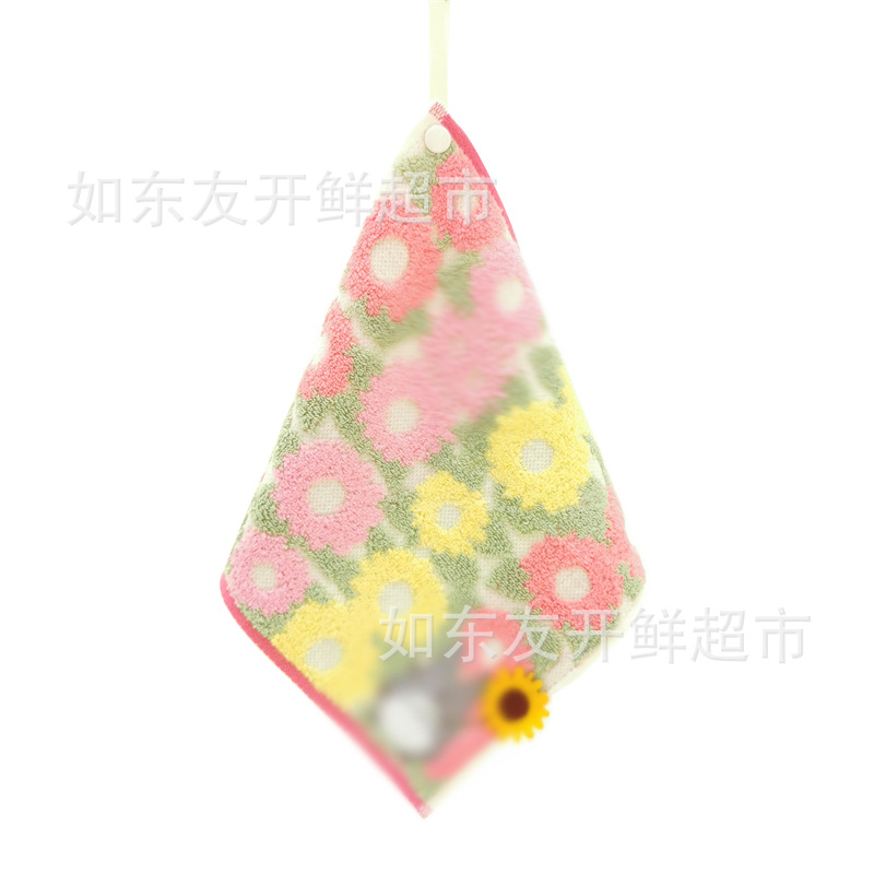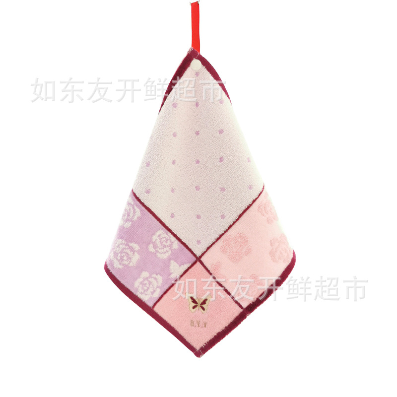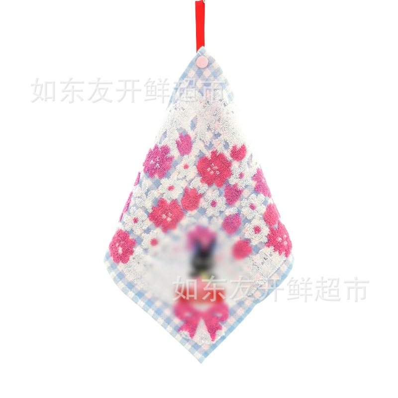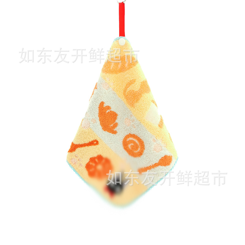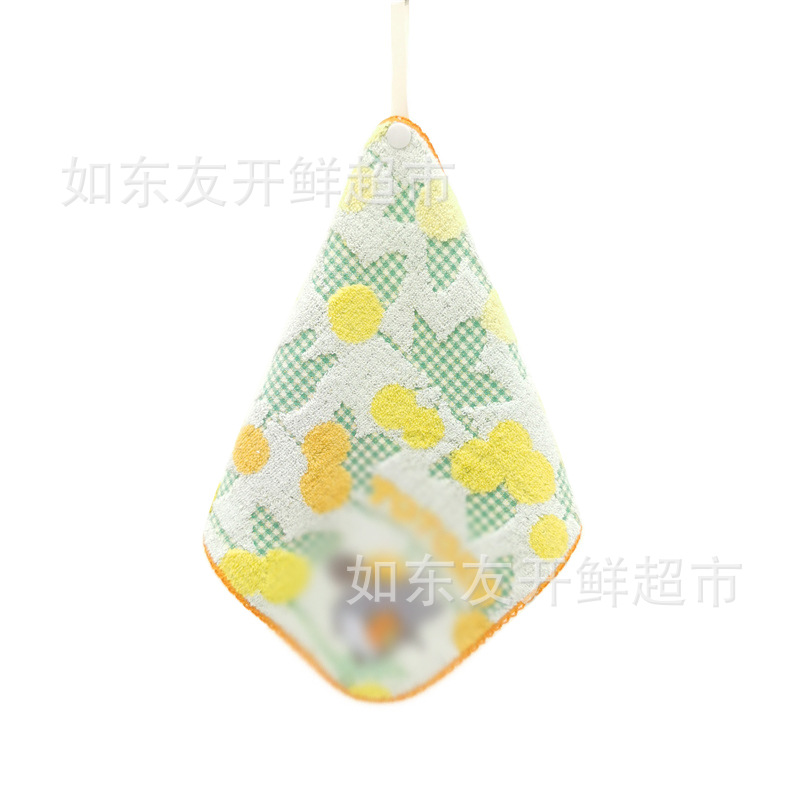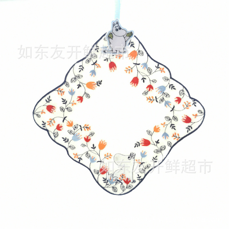出口日本外贸日单毛巾批发棉刺绣卡通挂式挂绳擦手巾小方巾手帕