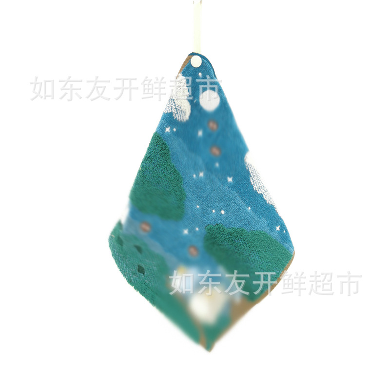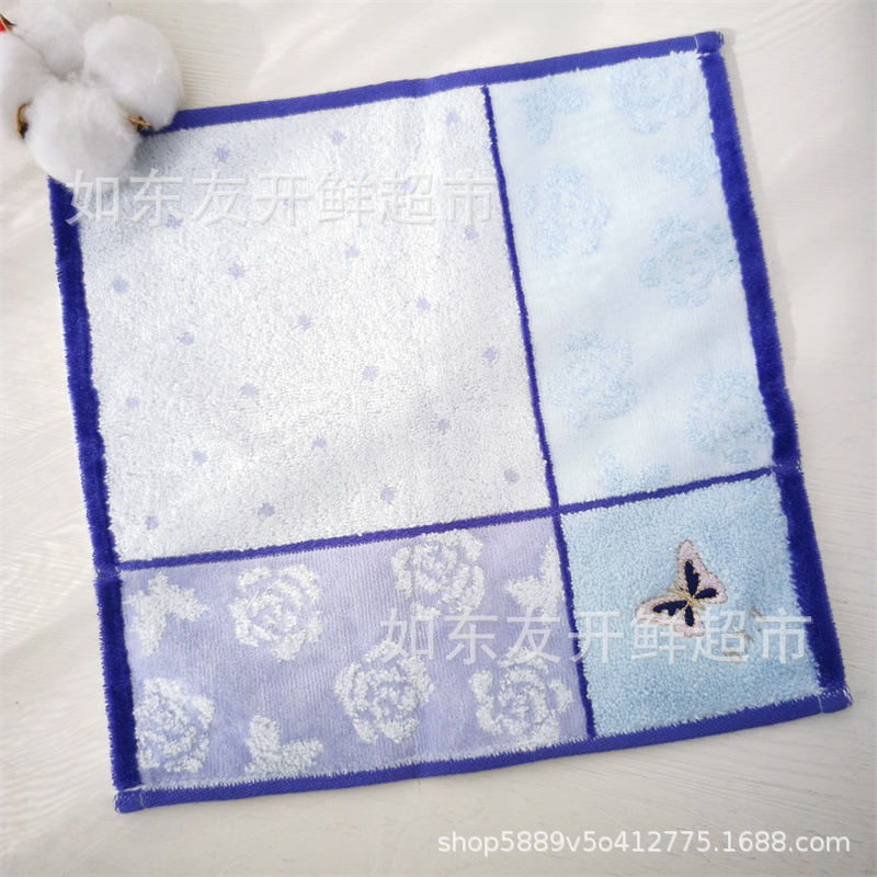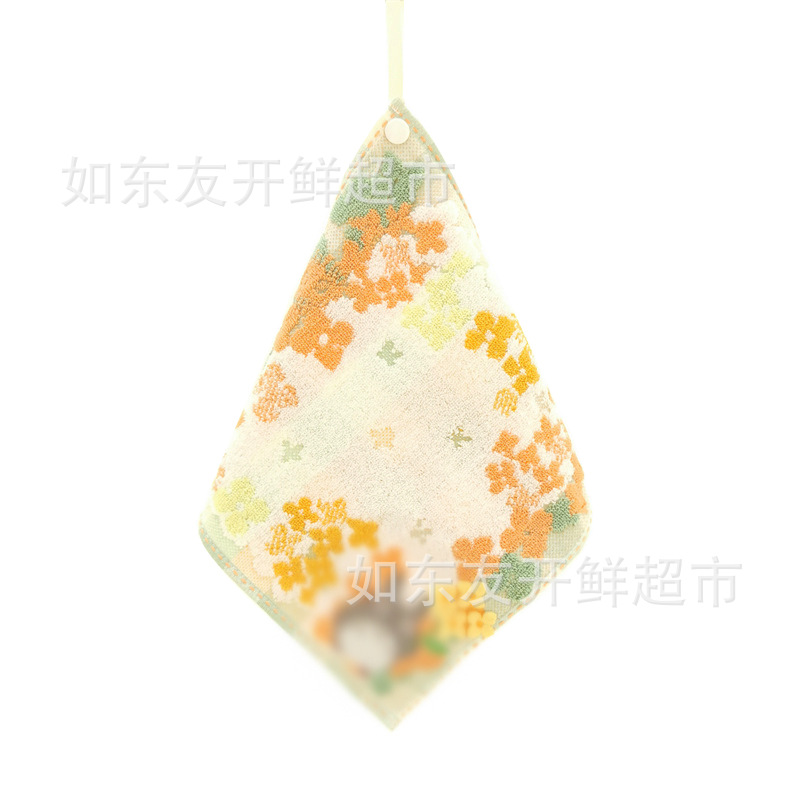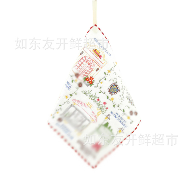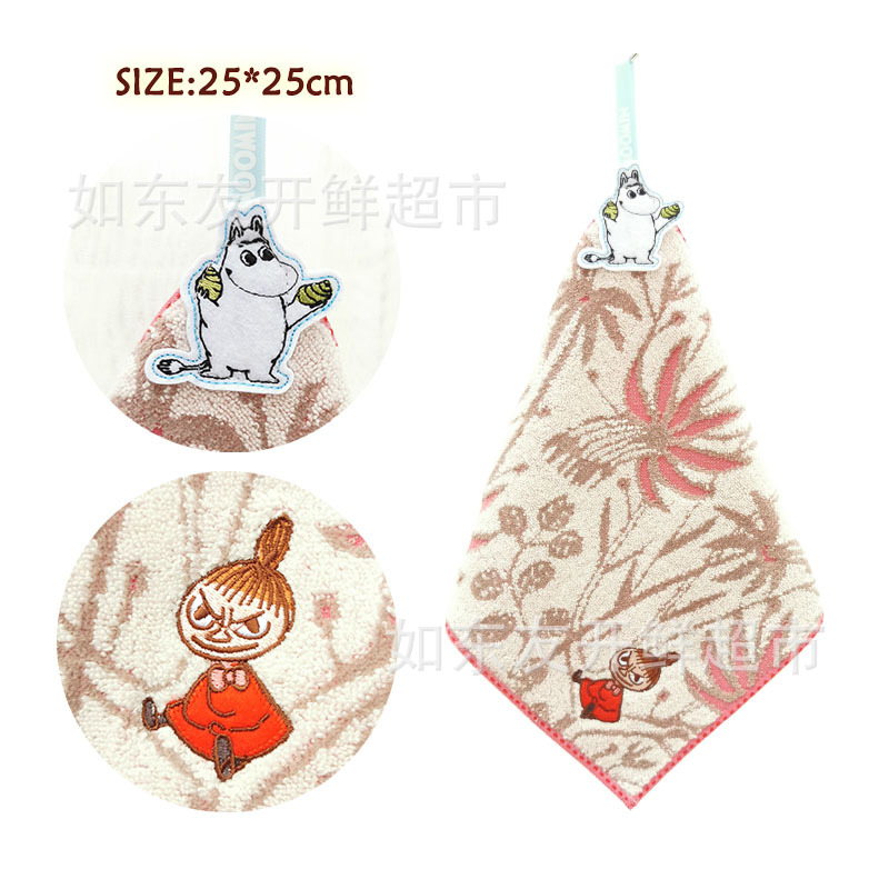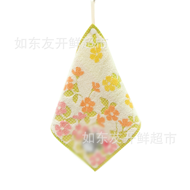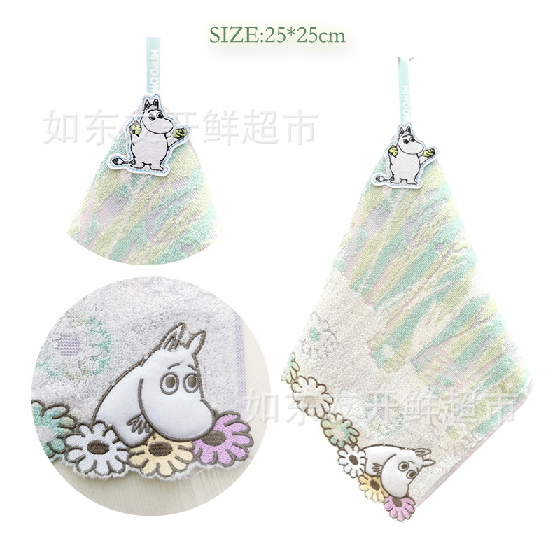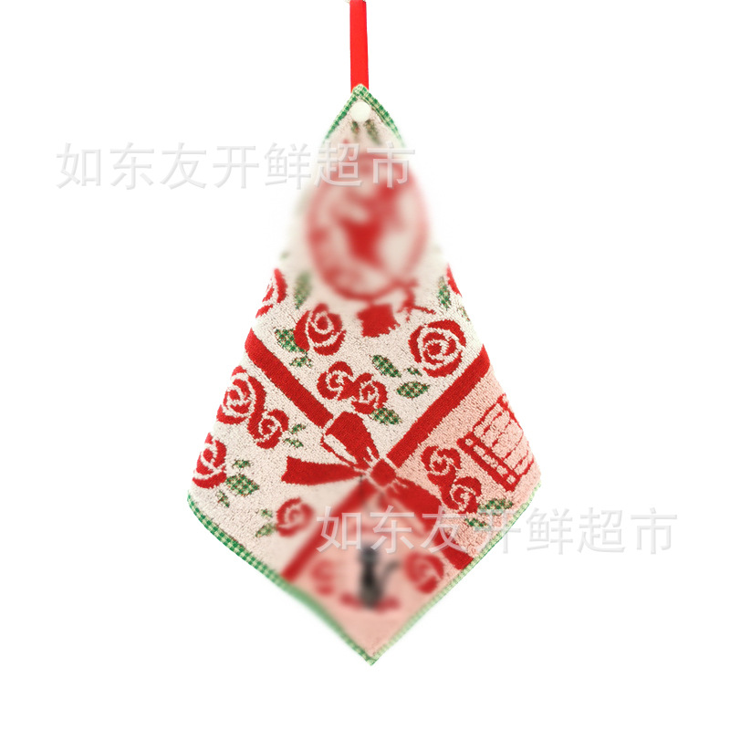 出口日本外贸日单毛巾批发棉刺绣卡通挂式挂绳擦手巾小方巾手帕